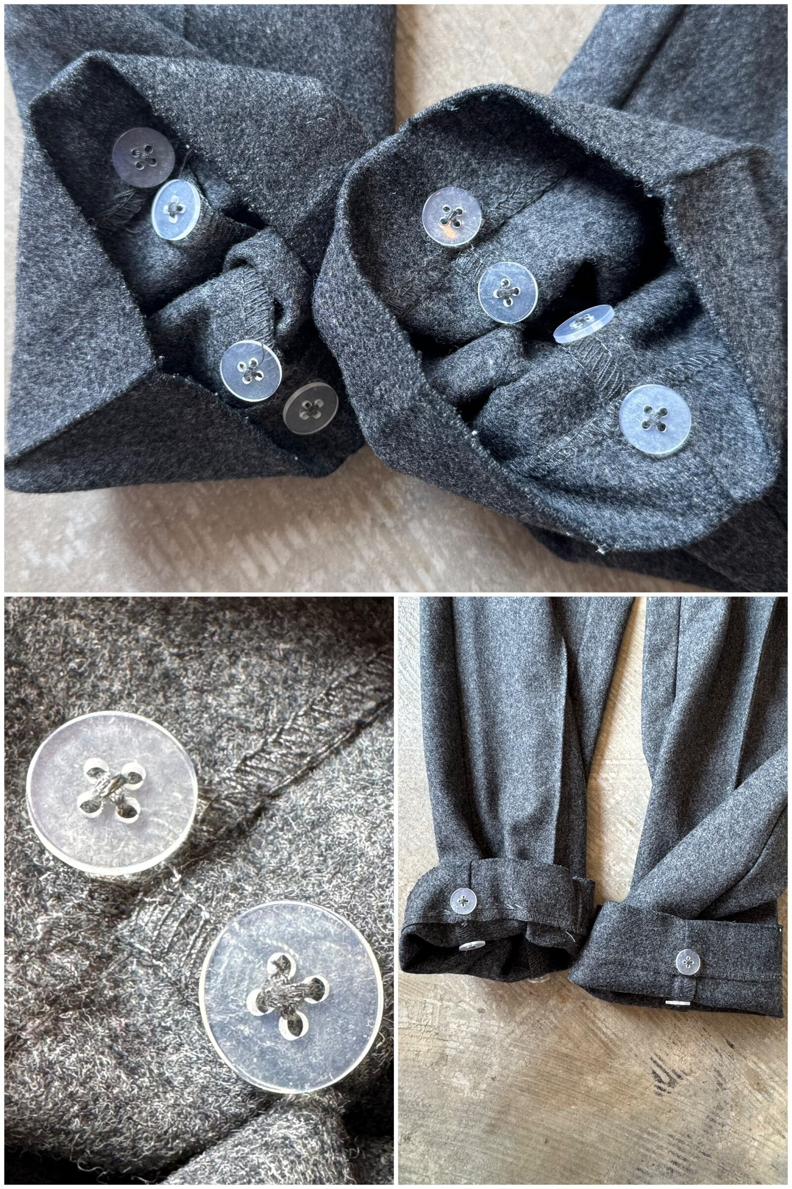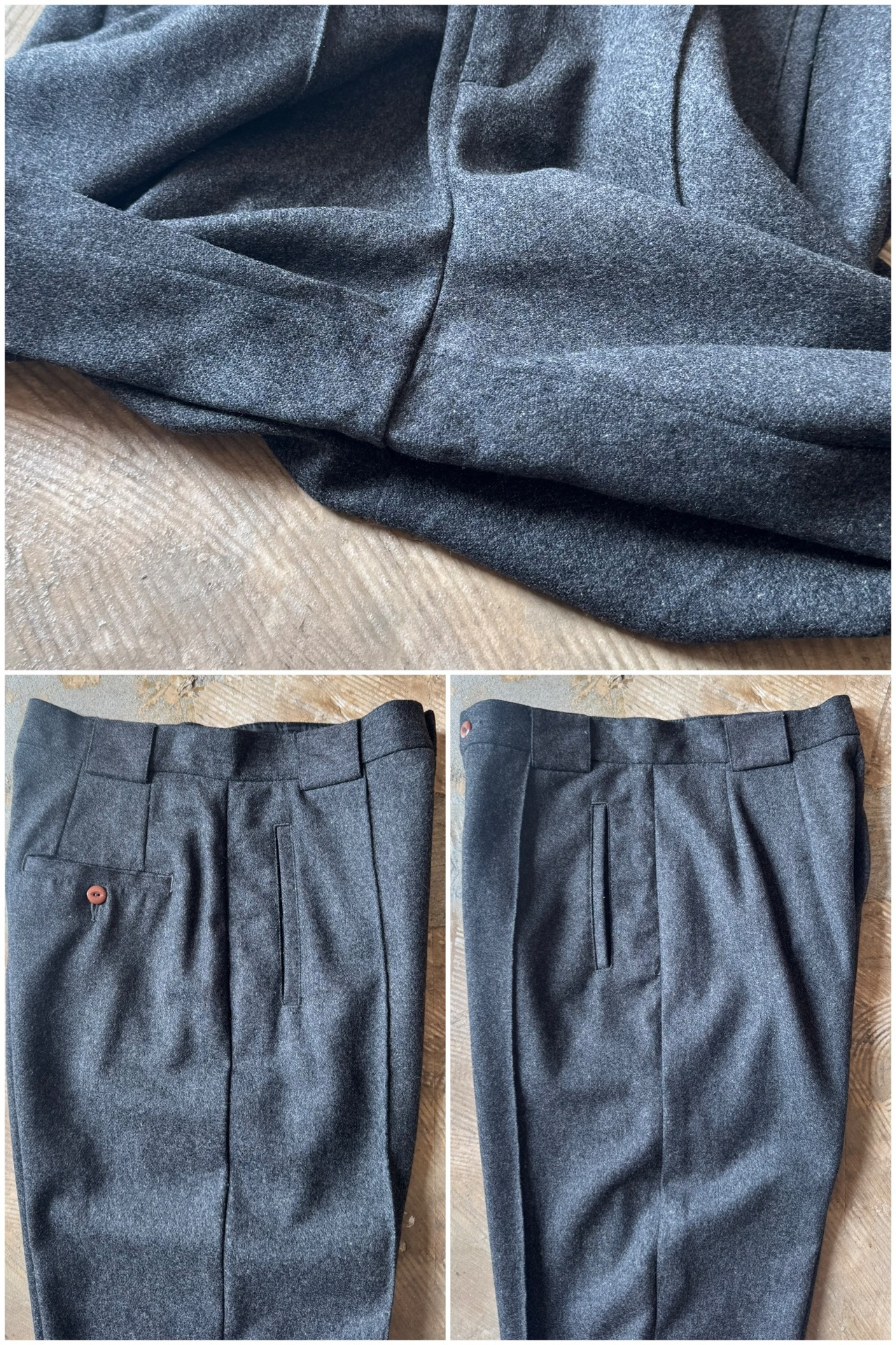 特に柄やデザインが入らないのでシンプルなスラックスパンツと思いきやフロントにはステッチによる綺麗なセンタープリーツ、綺麗なテーパードシルエット、履き回せるグレーカラー、トップボタンは雰囲気ある猫目ボタン、カシミア混、そしてエディバウアーのオールドの1本で滅茶苦茶雰囲気あるスラックスパンツ‼︎