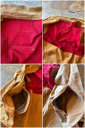 色褪せたコットン生地、大きめのフラップポケット、そしてインパクトのある背面のレッド‼︎