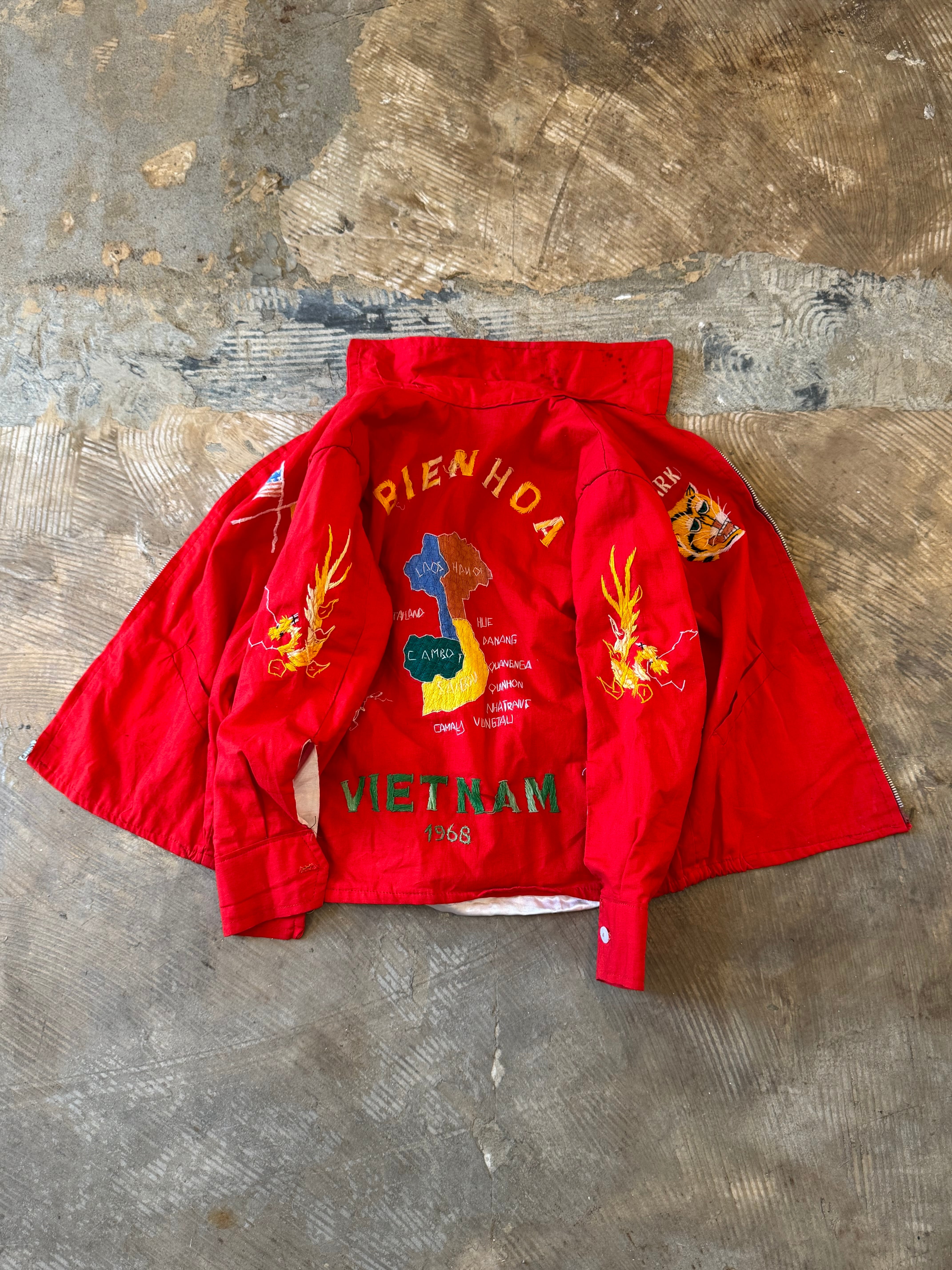 1968年の刺繍が入るベトナム戦争時のスーベニアジャケット、いわゆるベトジャン。