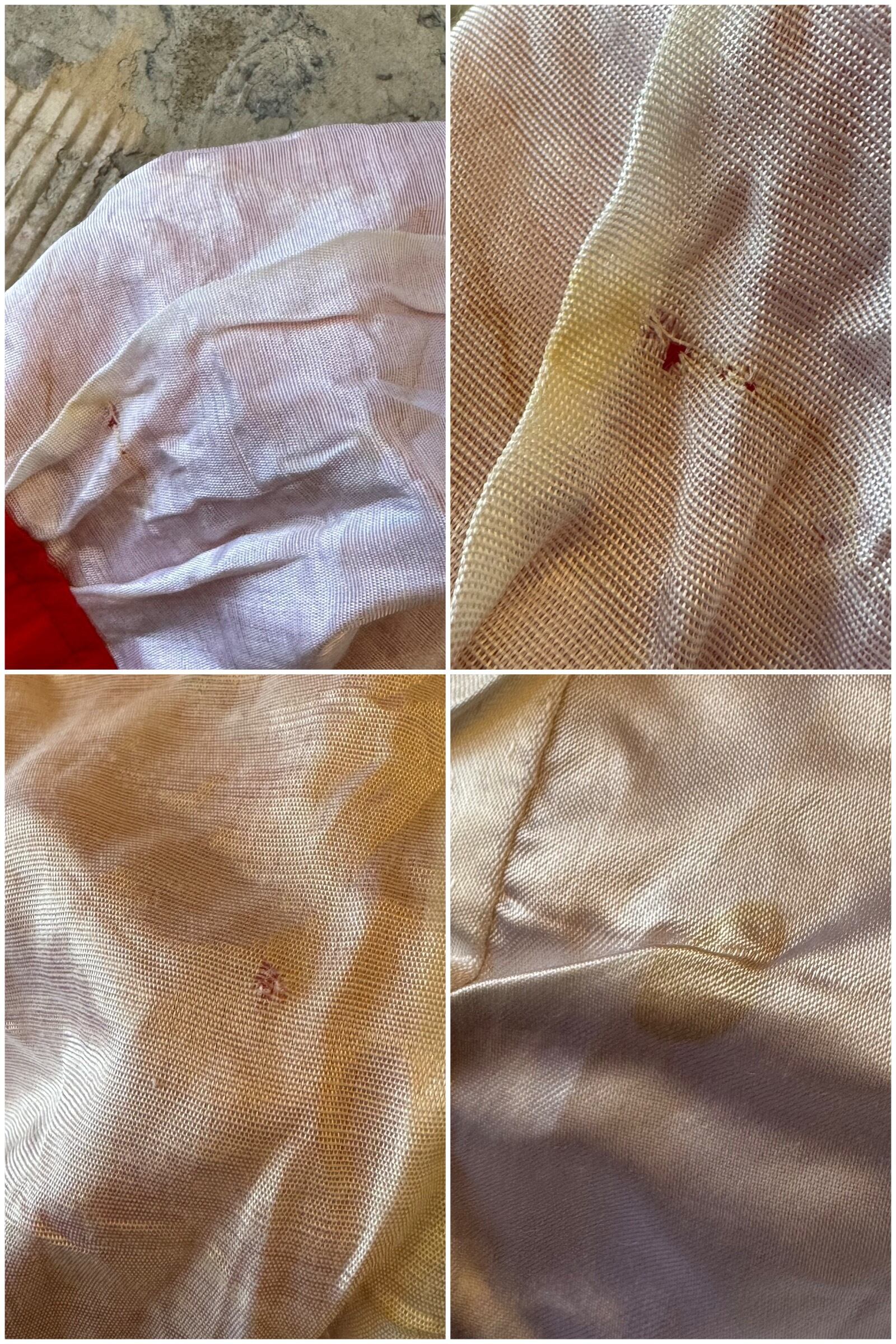 裏地のサテン側に薄い汚れ、スレ、小穴があります。