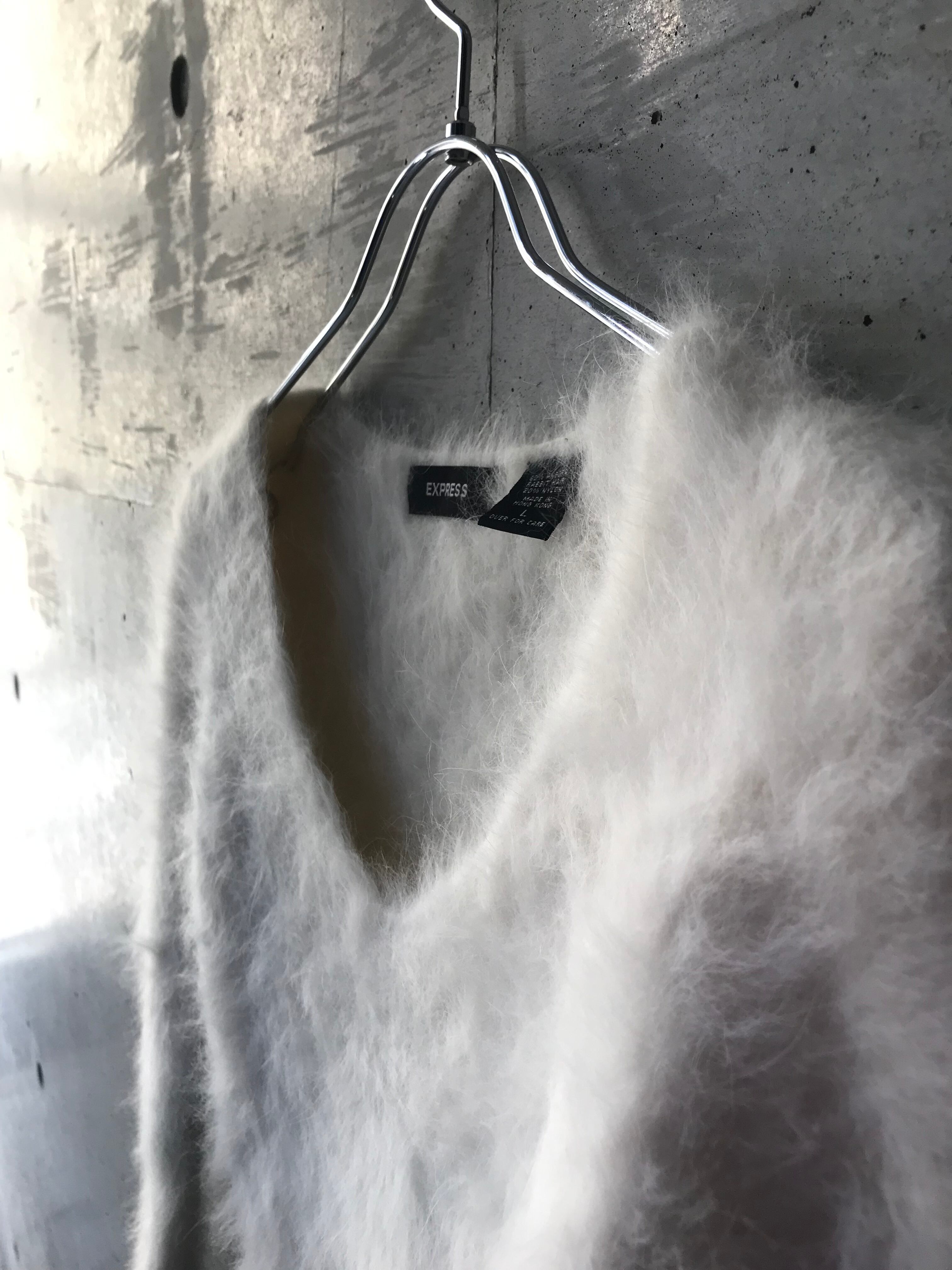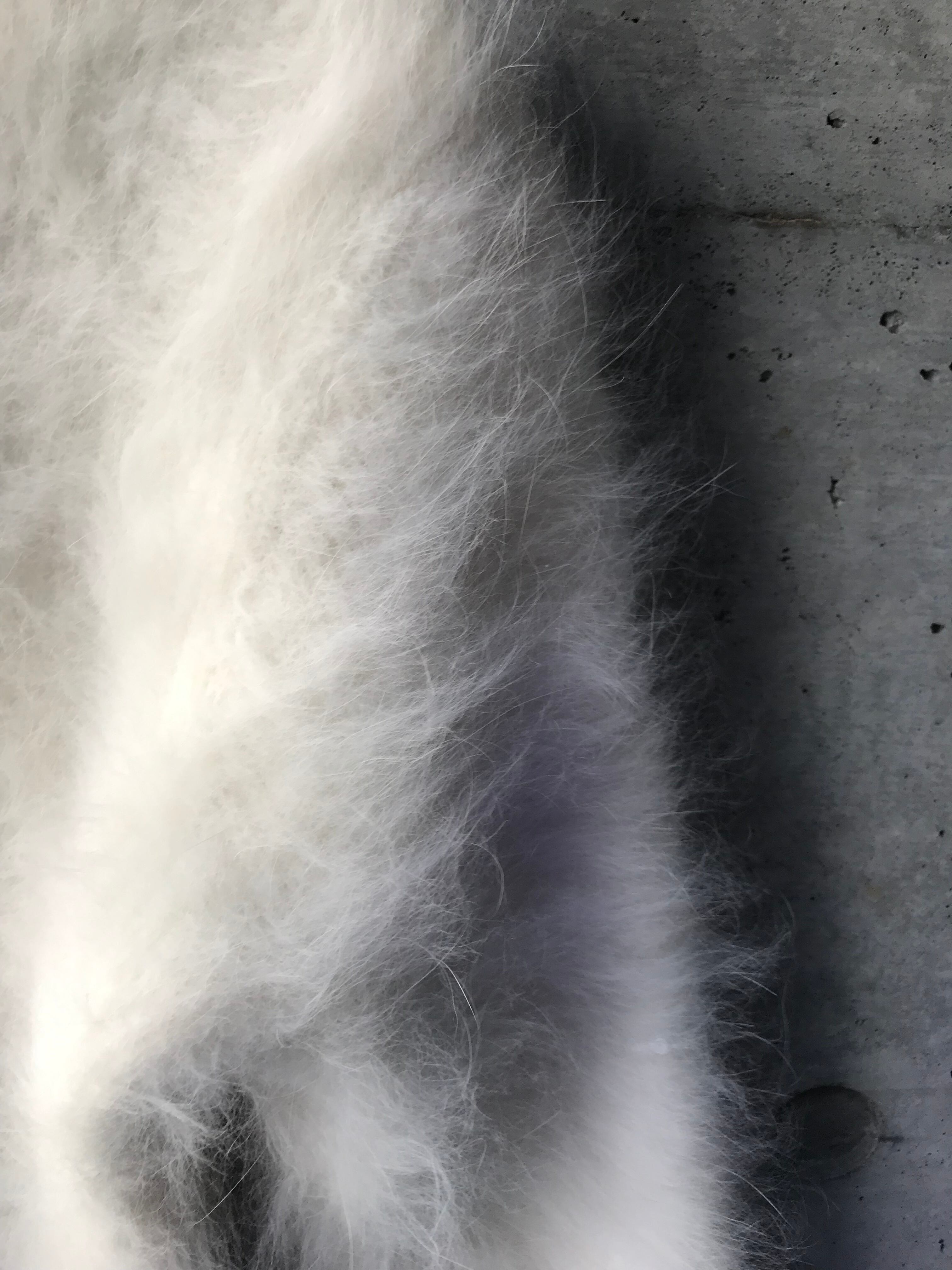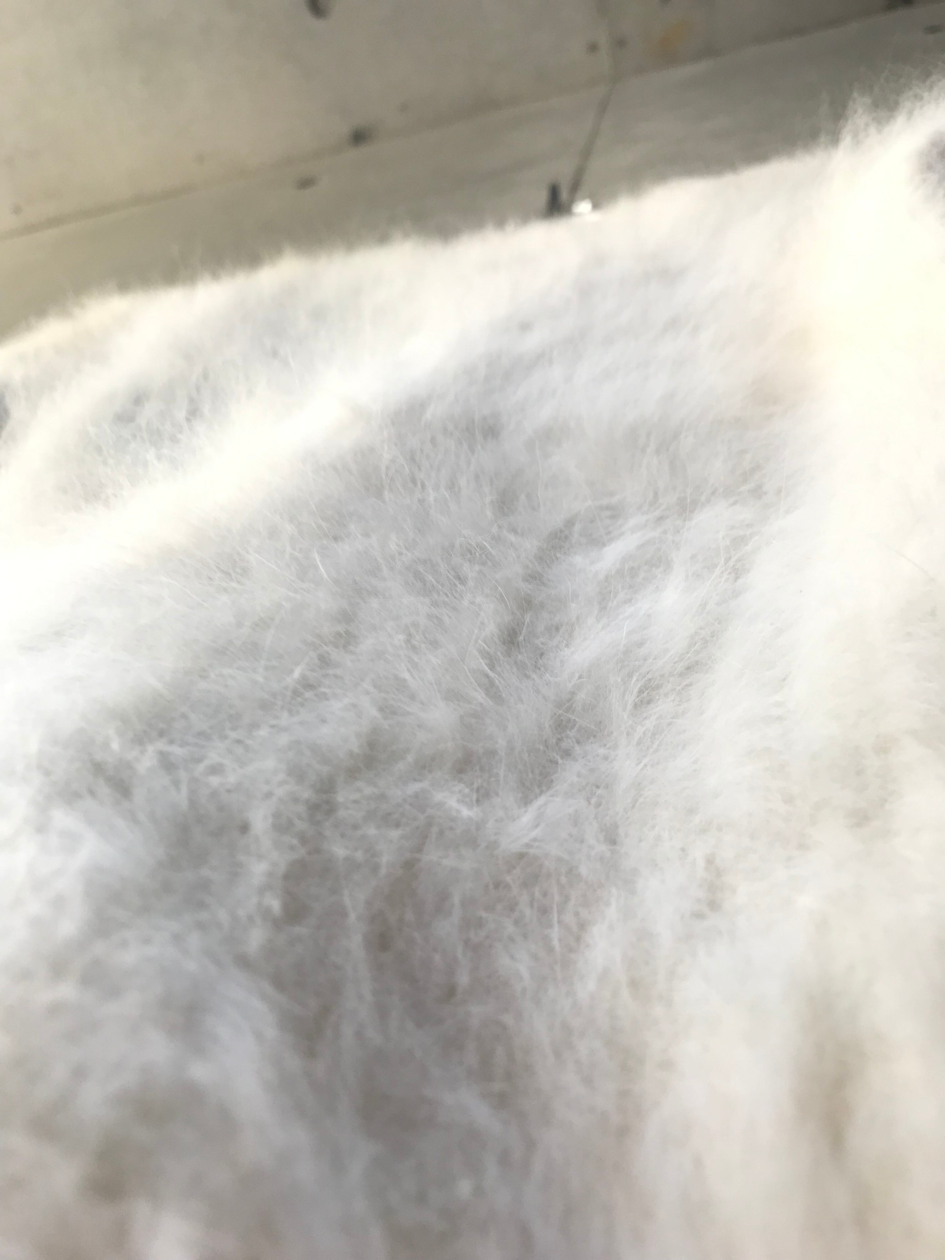 素材表記はアンゴララビットヘアー80、ナイロン20。