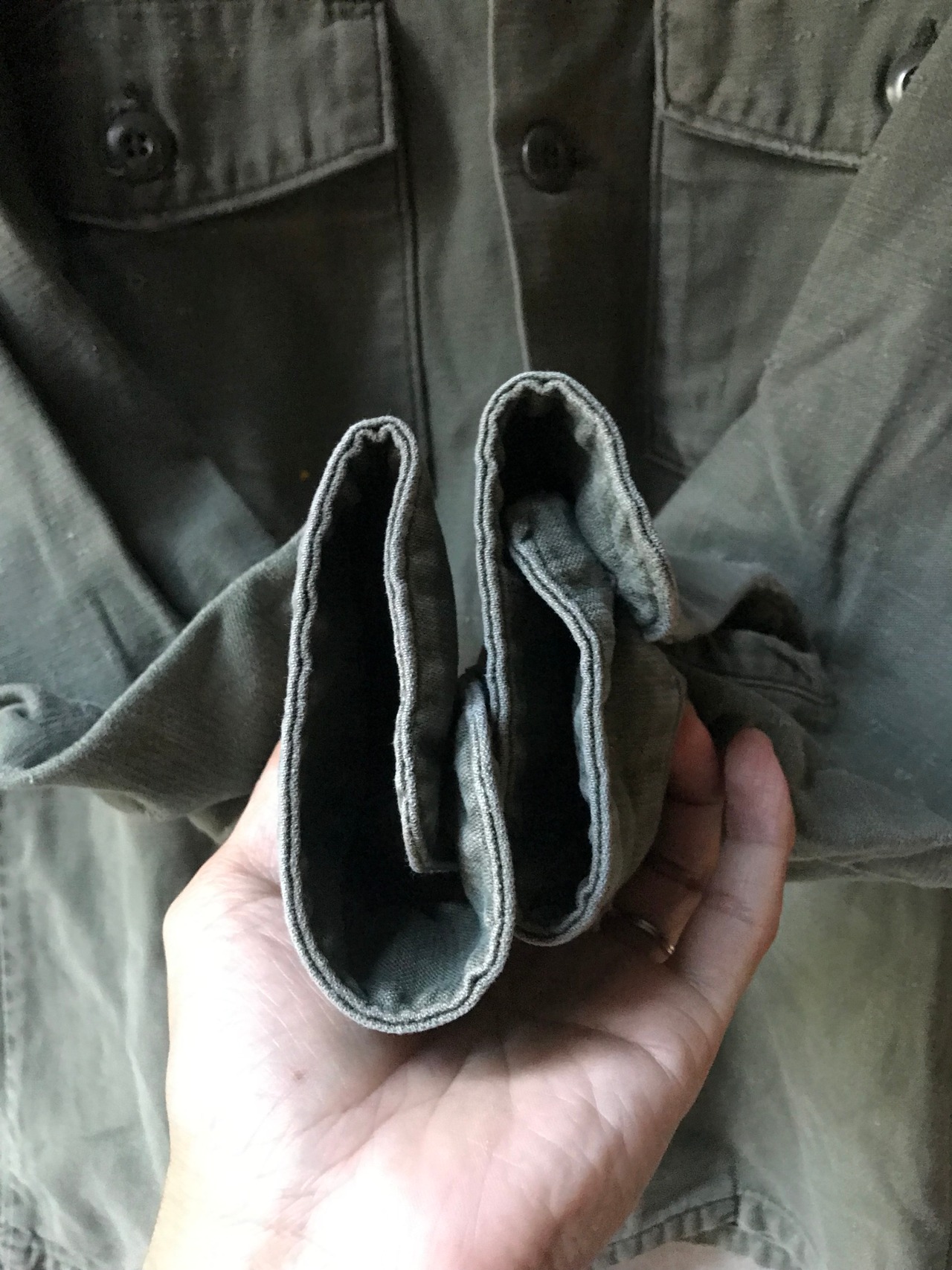 大きいサイズが多いミリタリーシャツですが今回の1枚はわりかし小さめなサイズ感。