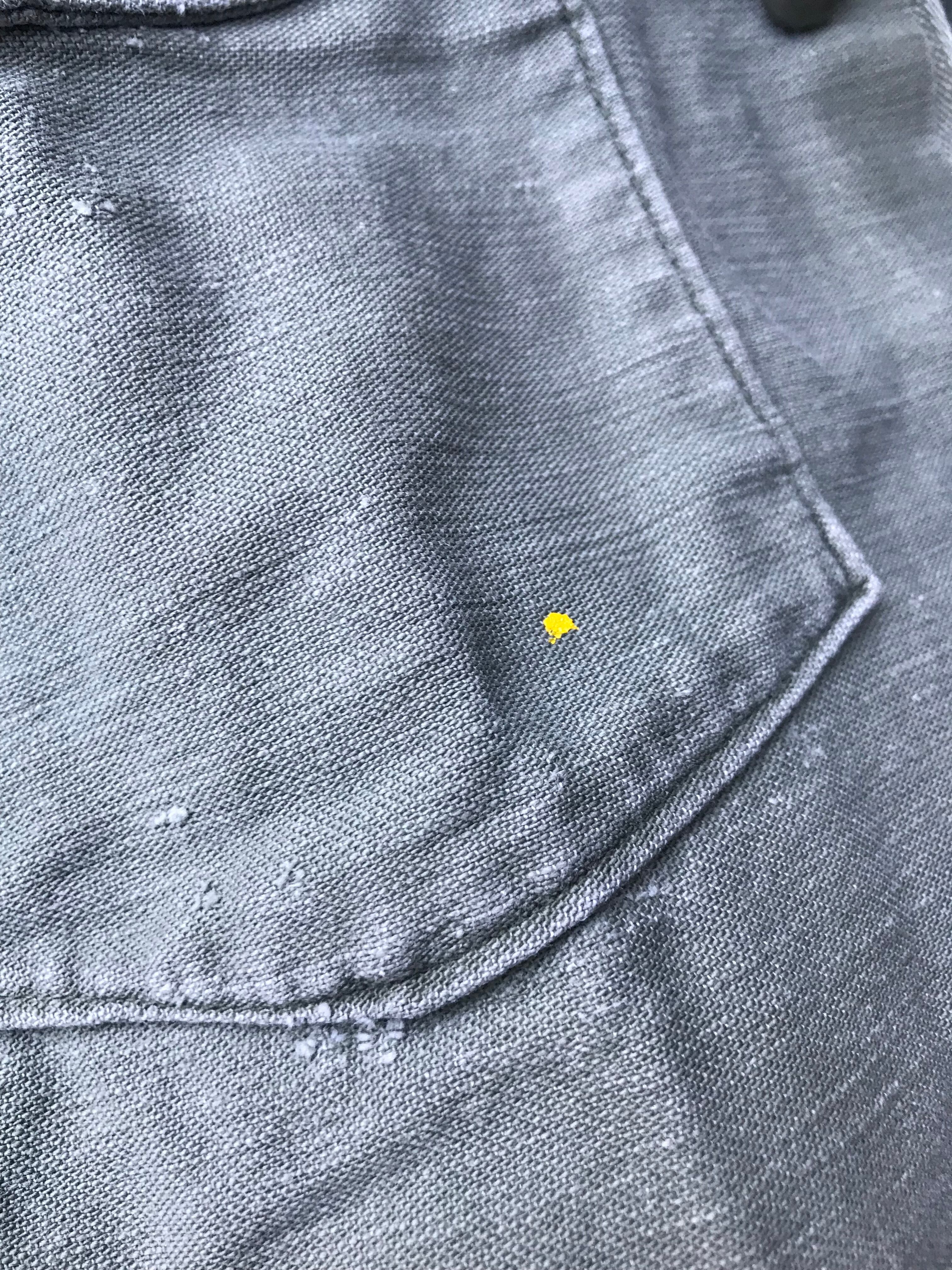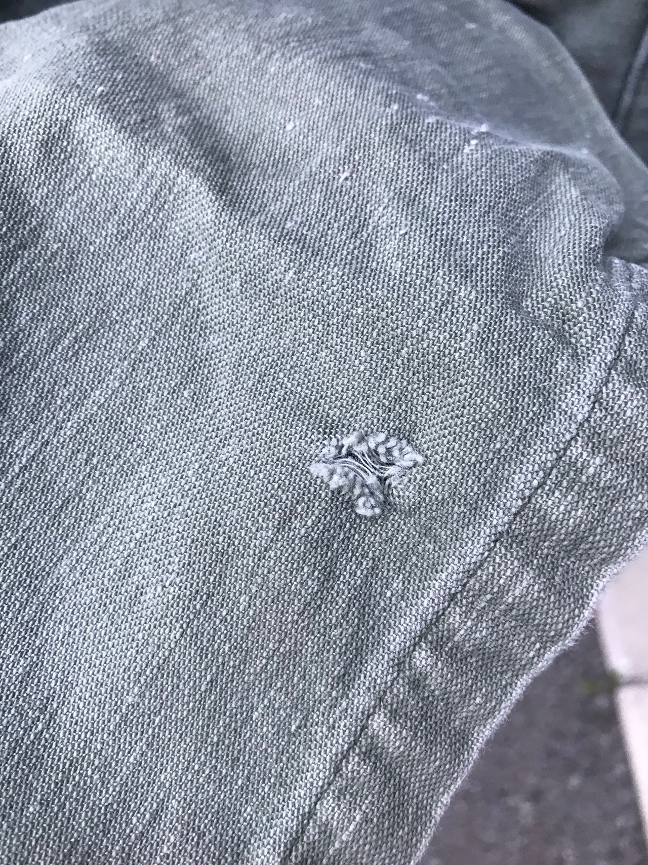 ユーズドで襟周りやボディ部分に小穴、キズが多々あります。全体的に色落ち、変色もあります。特に気になるダメージはありません。