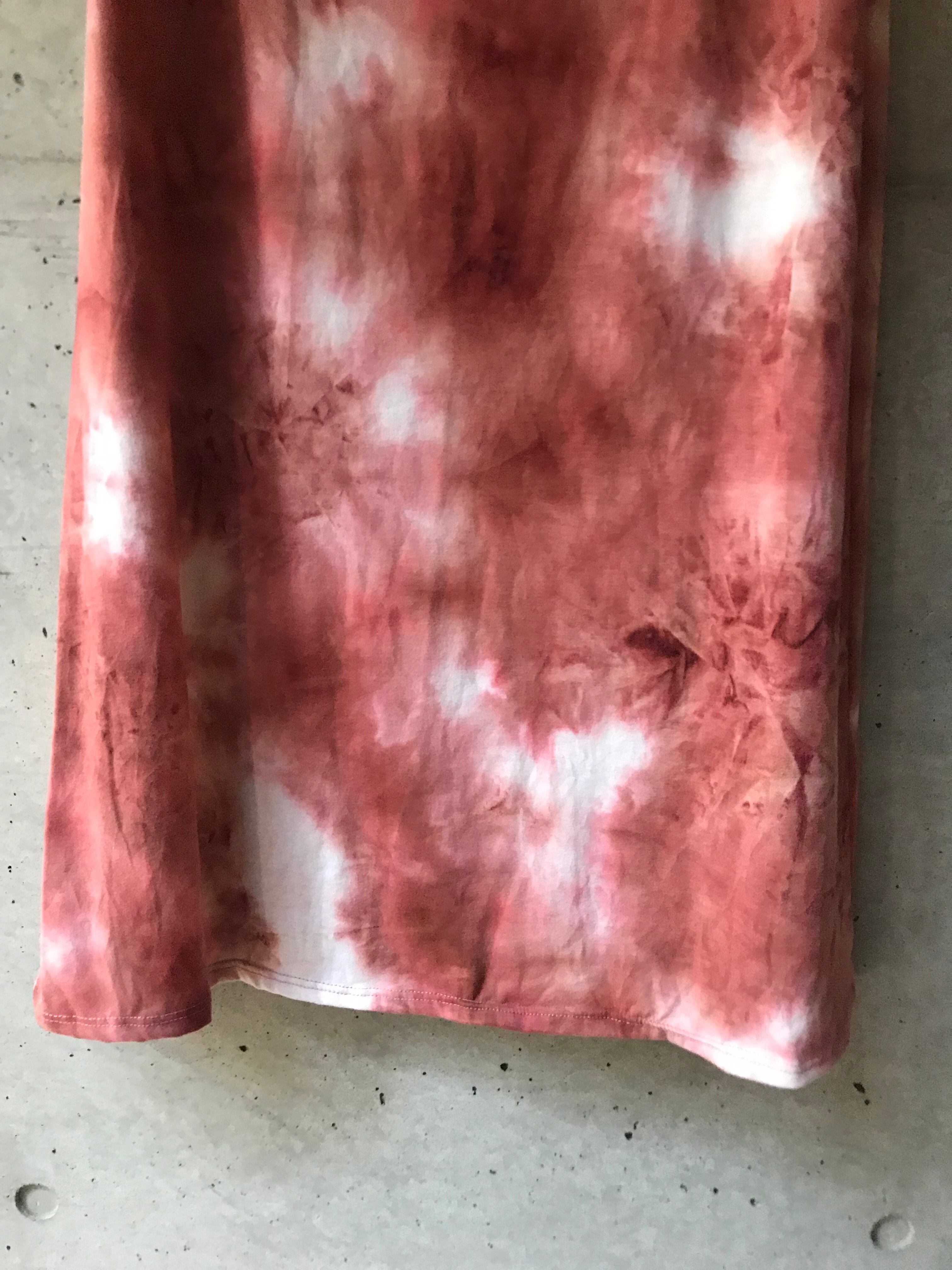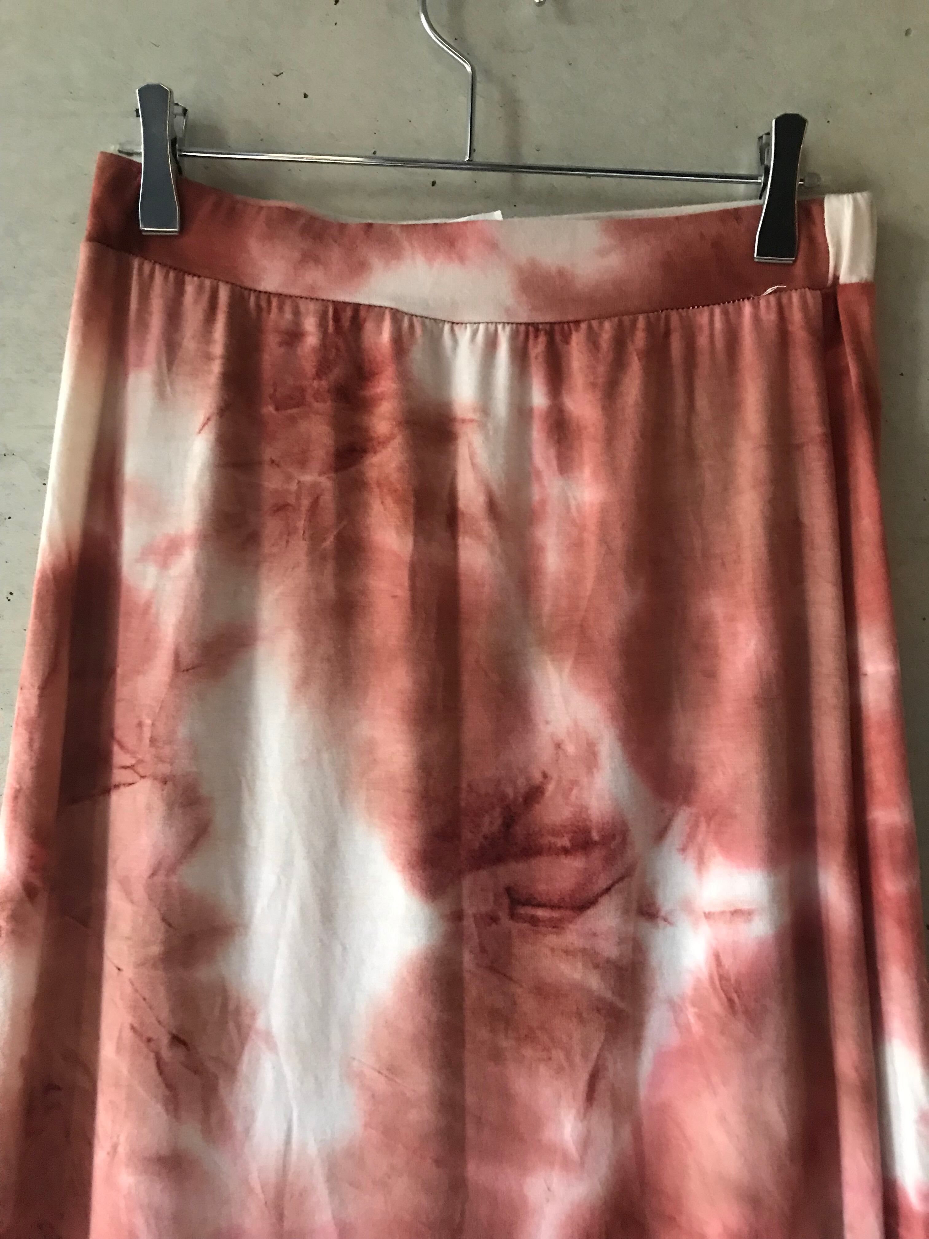 サイズ表記Lで実寸サイズはウエスト約68~82cm(ゴム入りなので伸びます)、丈約88cm、裾幅約66cmです。