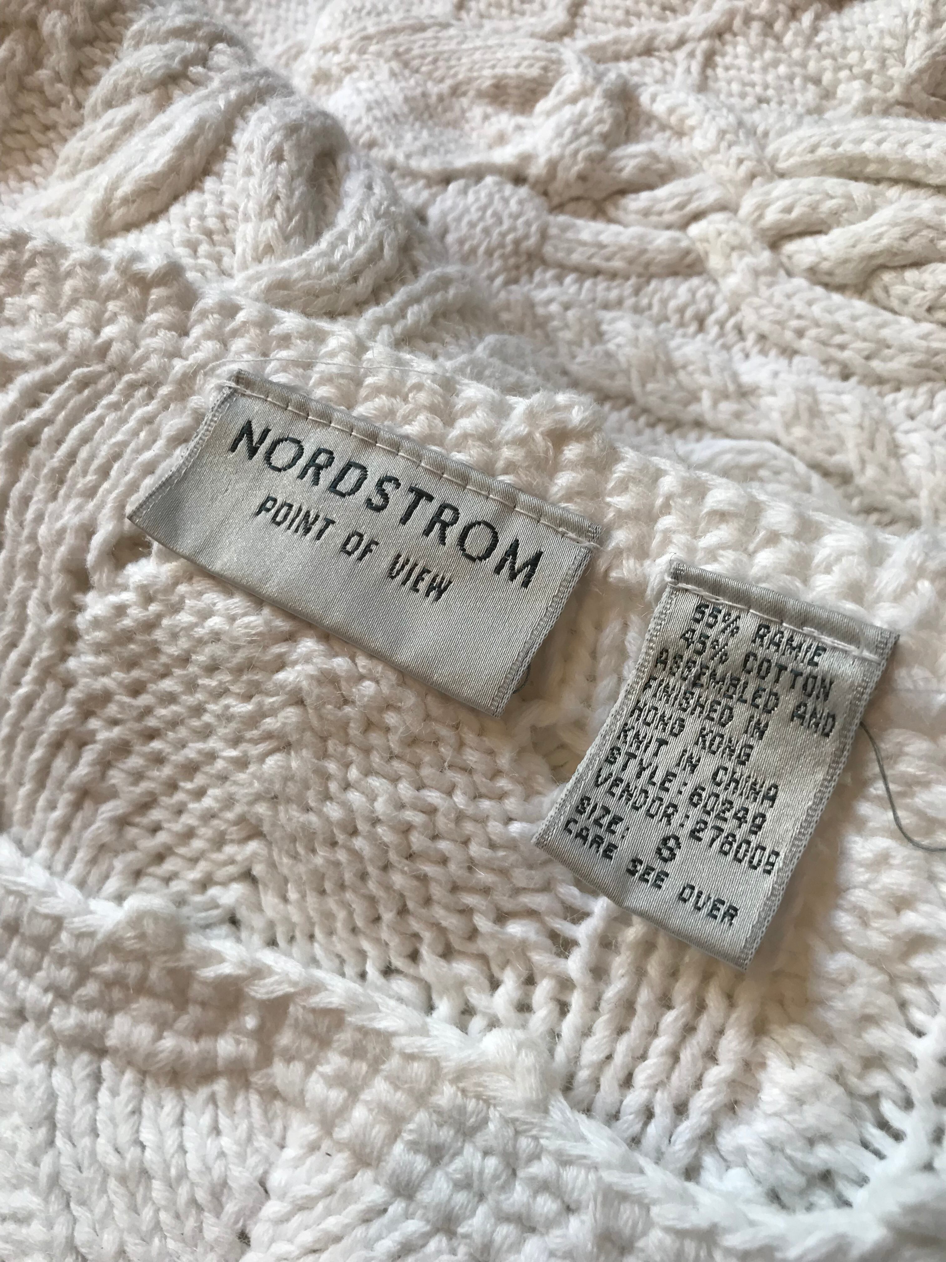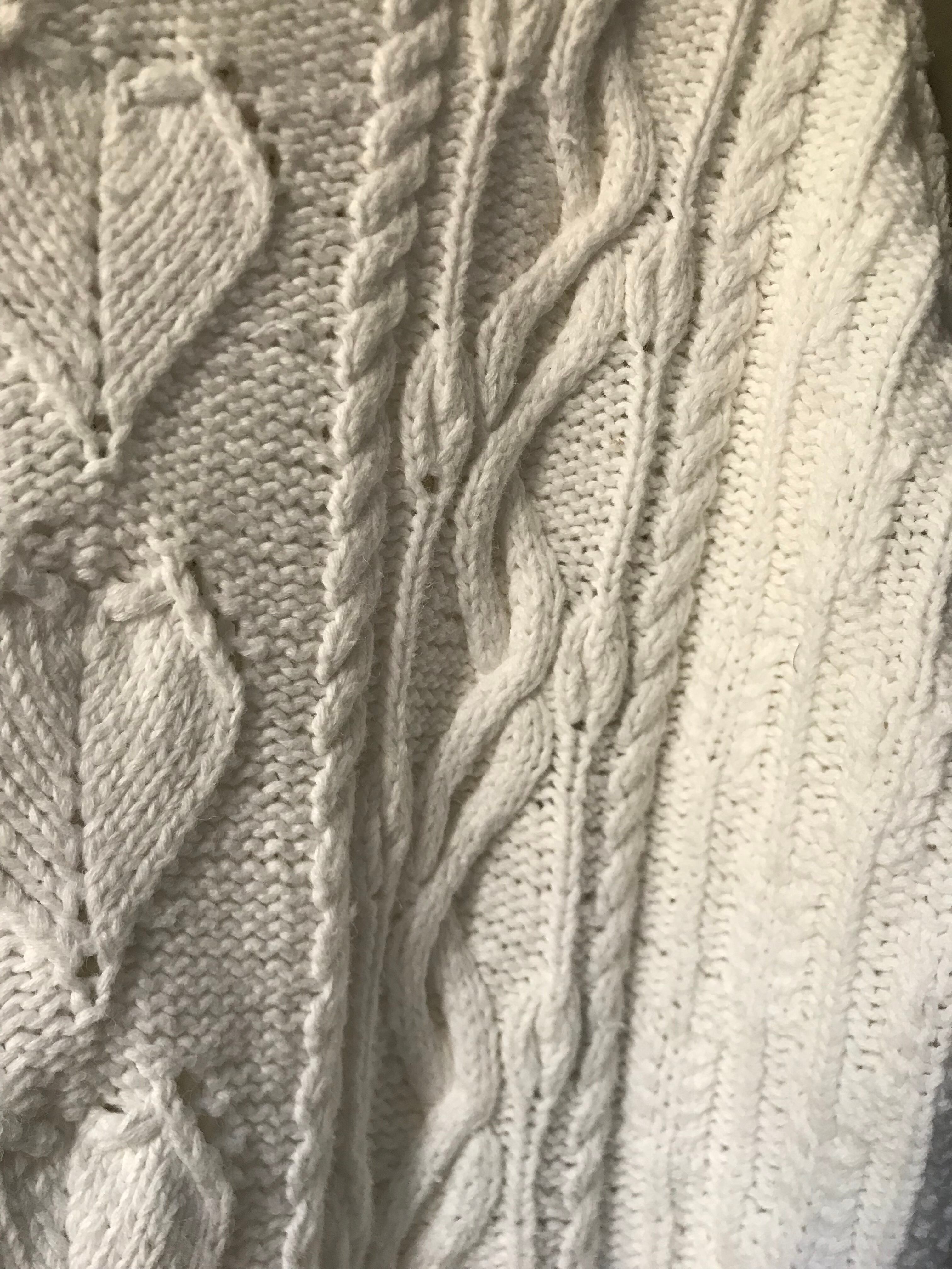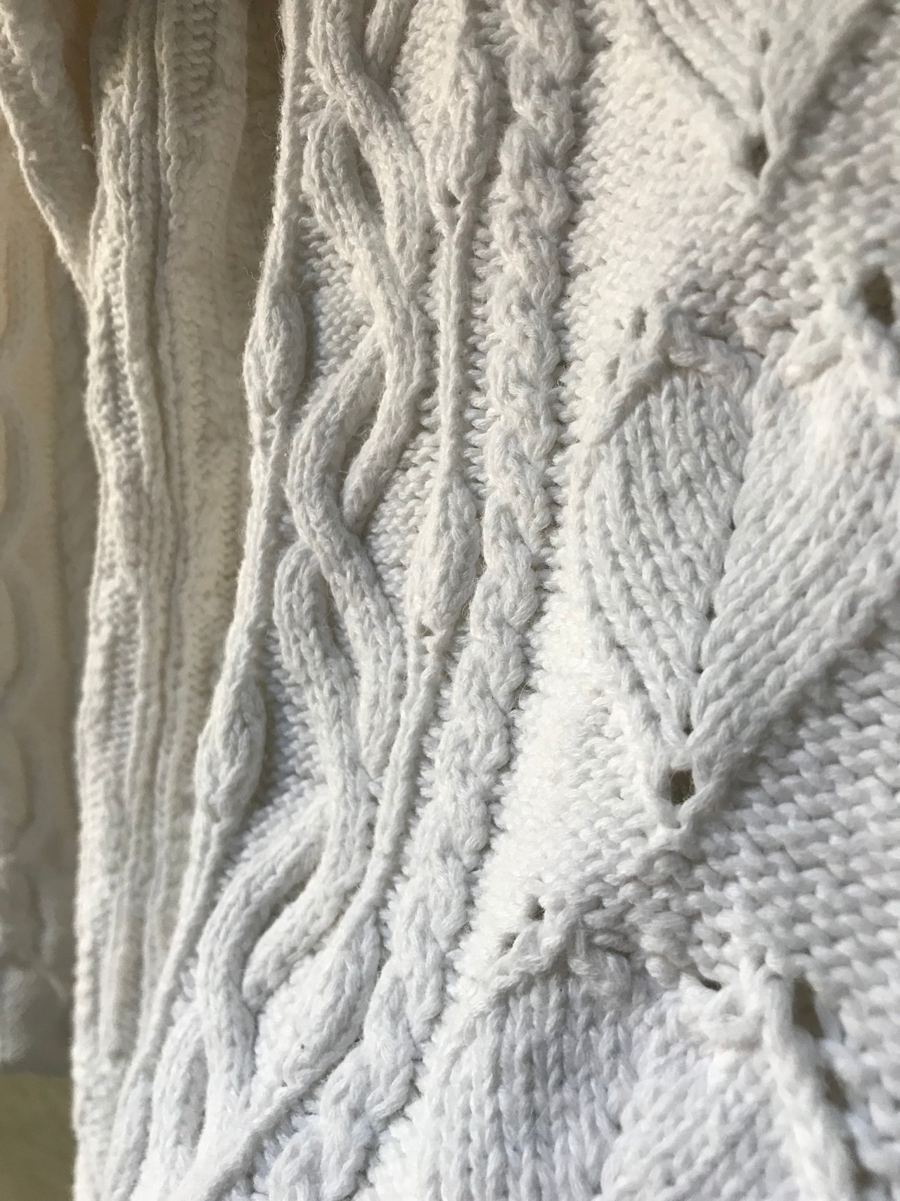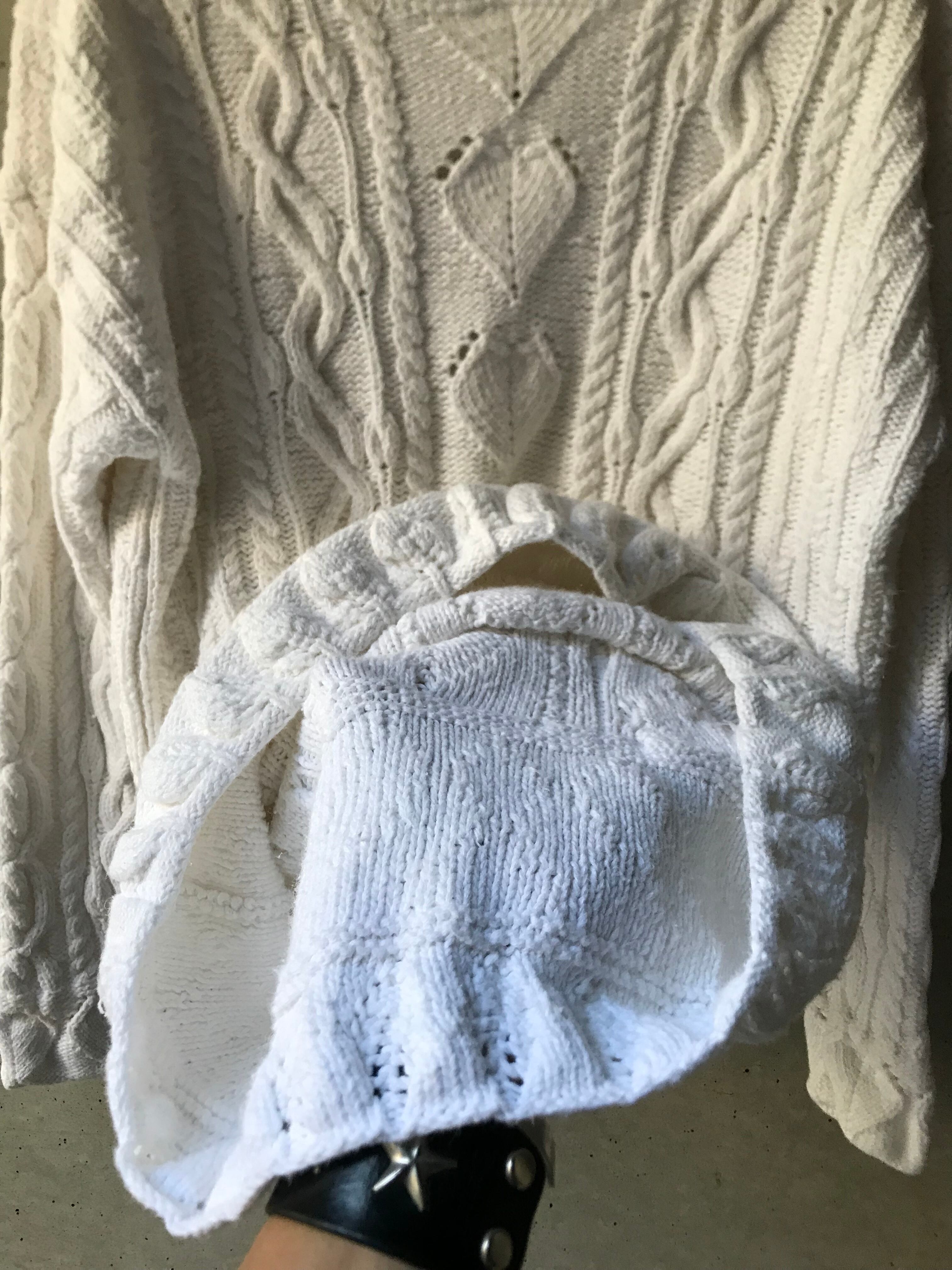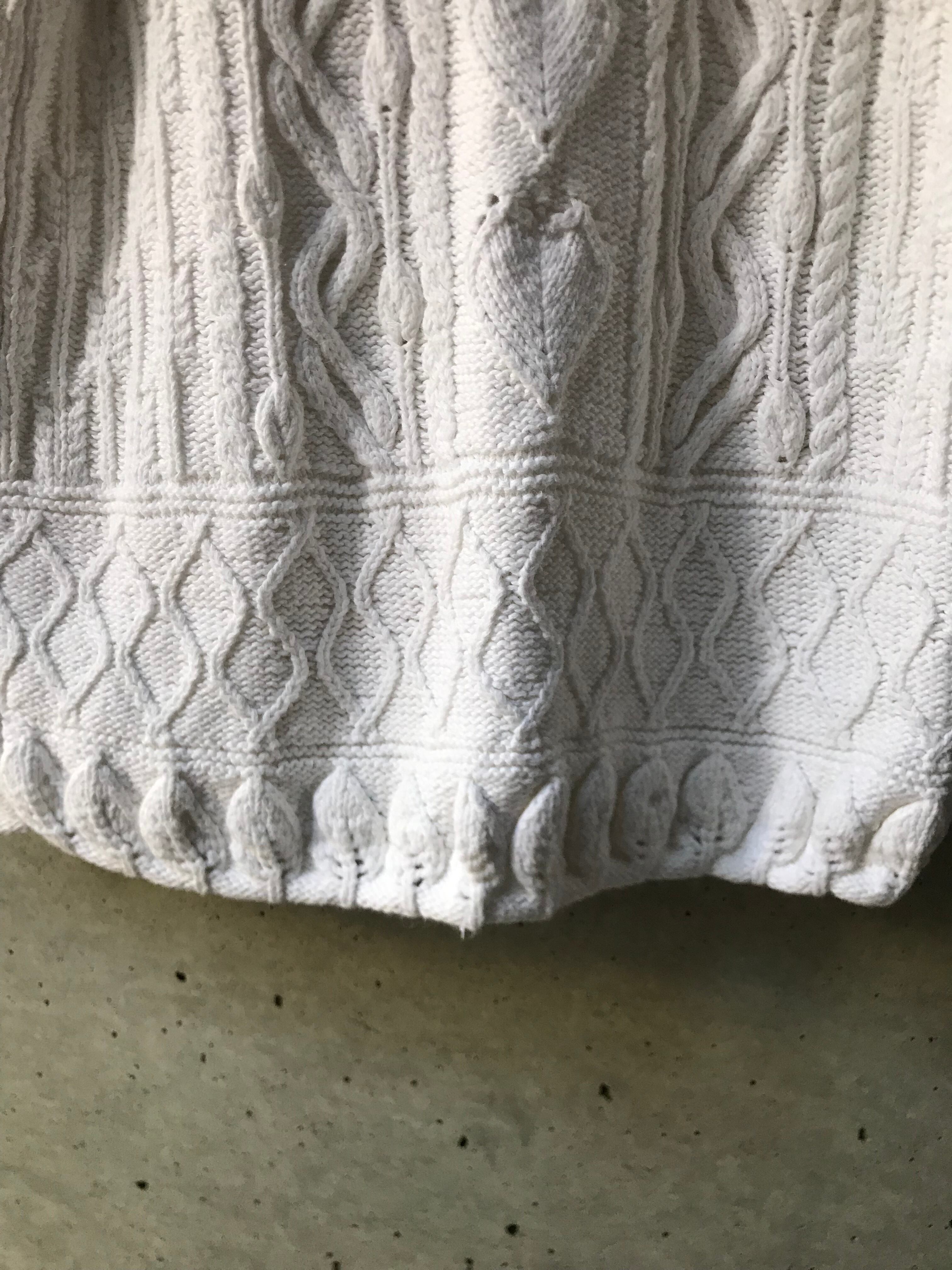 オトナなホワイトの編み、アームも細いのですっきりとした印象で着て頂けます。