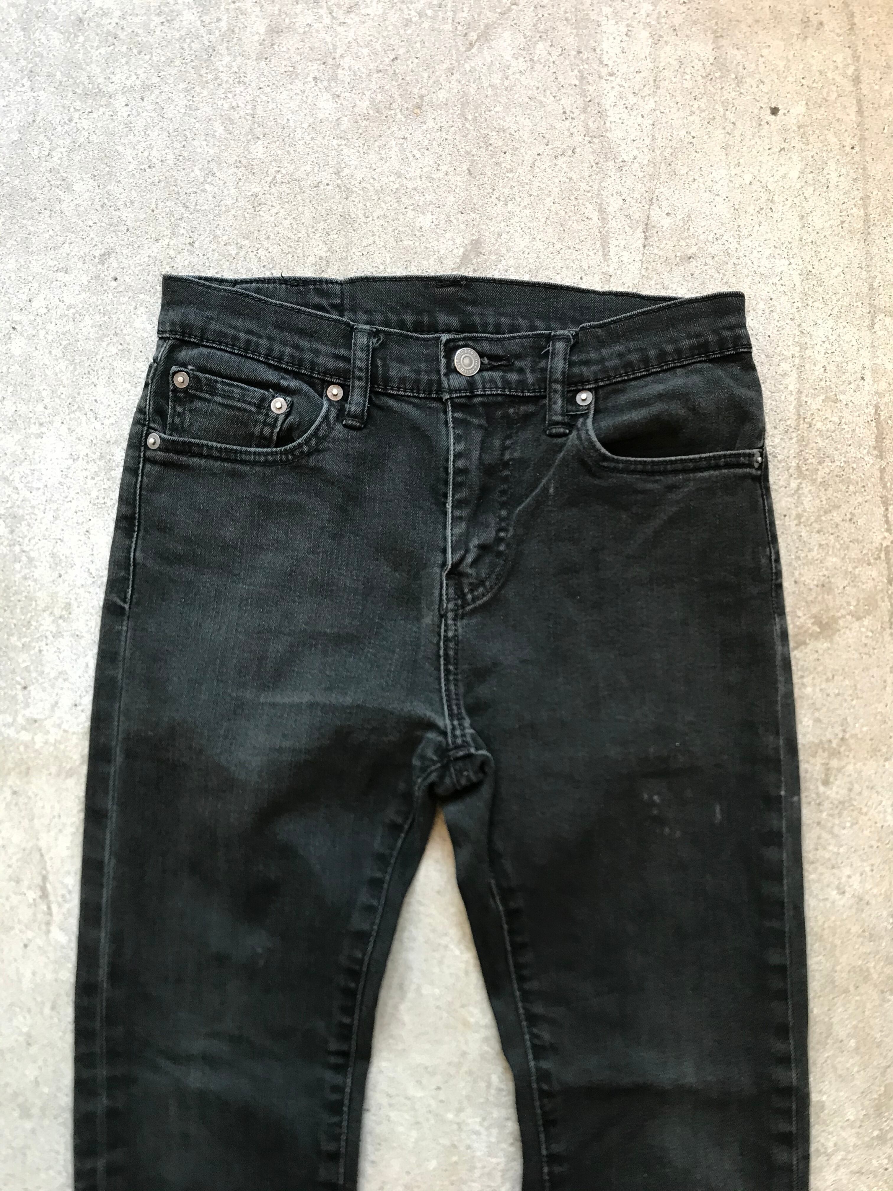 サイズ表記W28、L30で実寸サイズはウエスト約72cm、レングス約70cm、股上約25cm、裾幅約15cm、サイド総丈約94cmです。