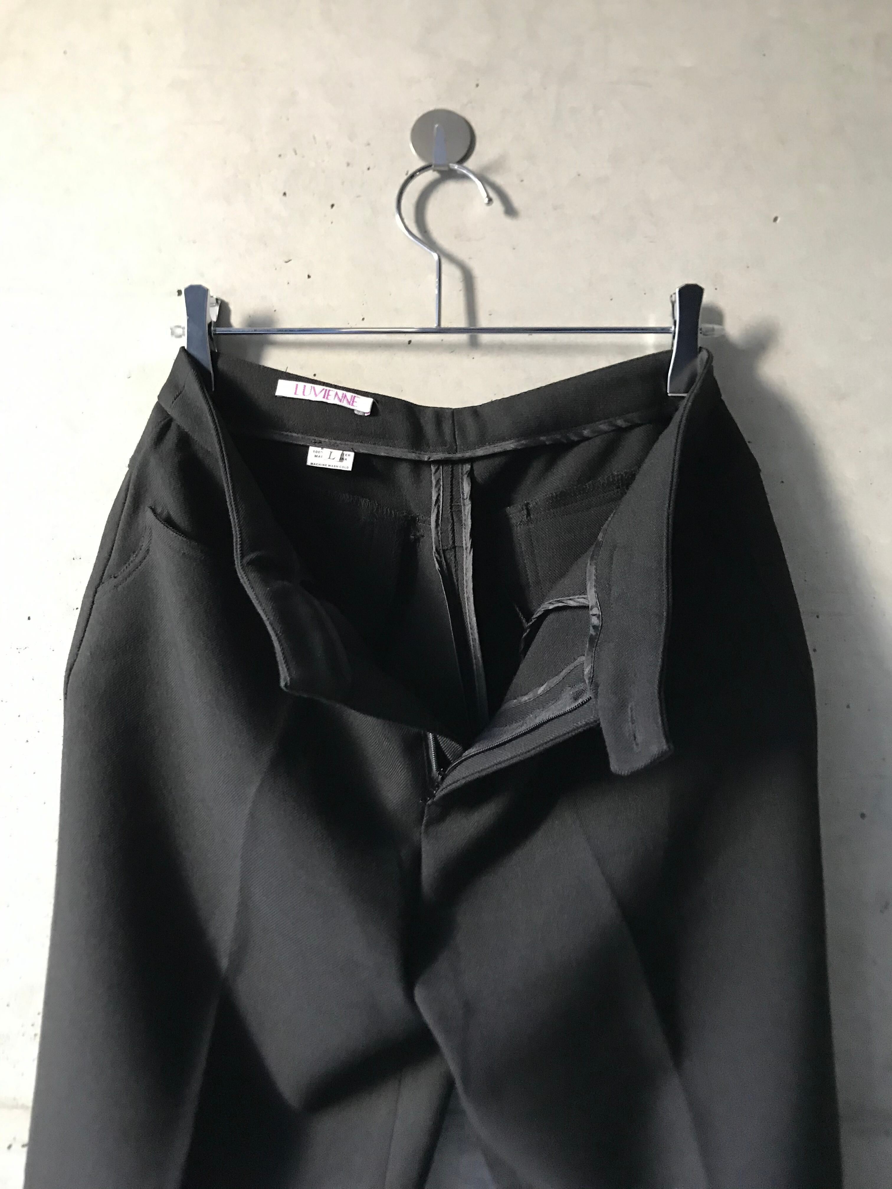 90年代頃のフレアシルエットのスラックスパンツ。トップスをインした時のシルエットが大人な女性の雰囲気。