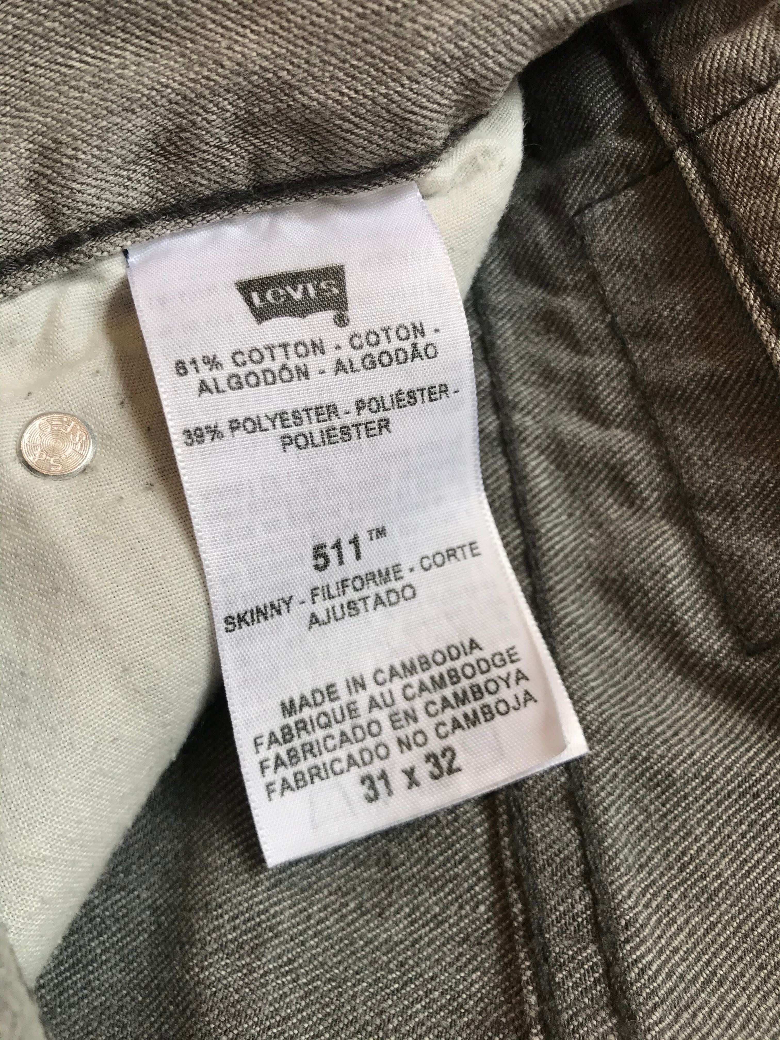 サイズ表記W31、L32で実寸サイズはウエスト約79cm、レングス約86cm、股上約25.5cm、裾幅約18cm、サイド総丈約108cmです。