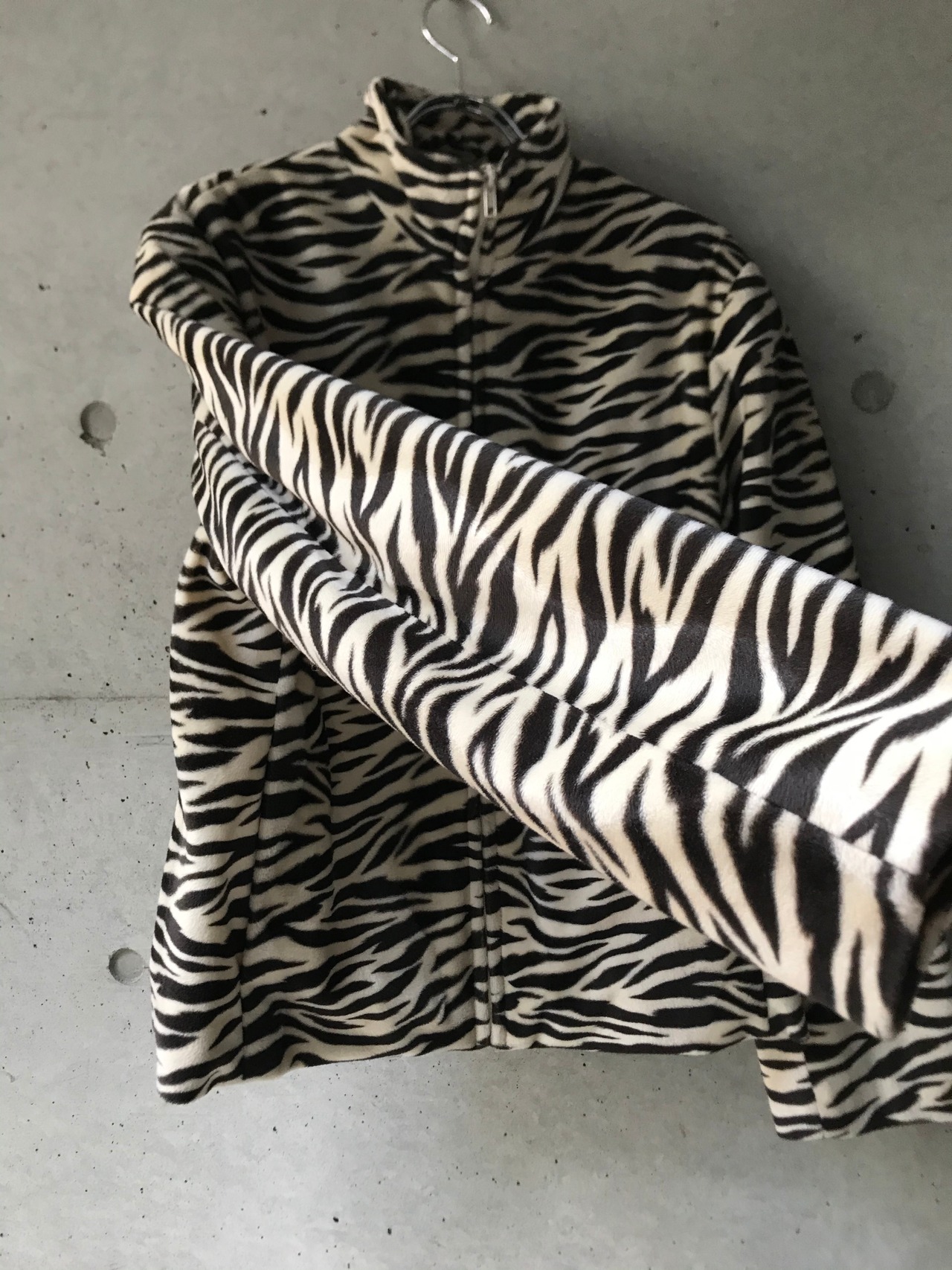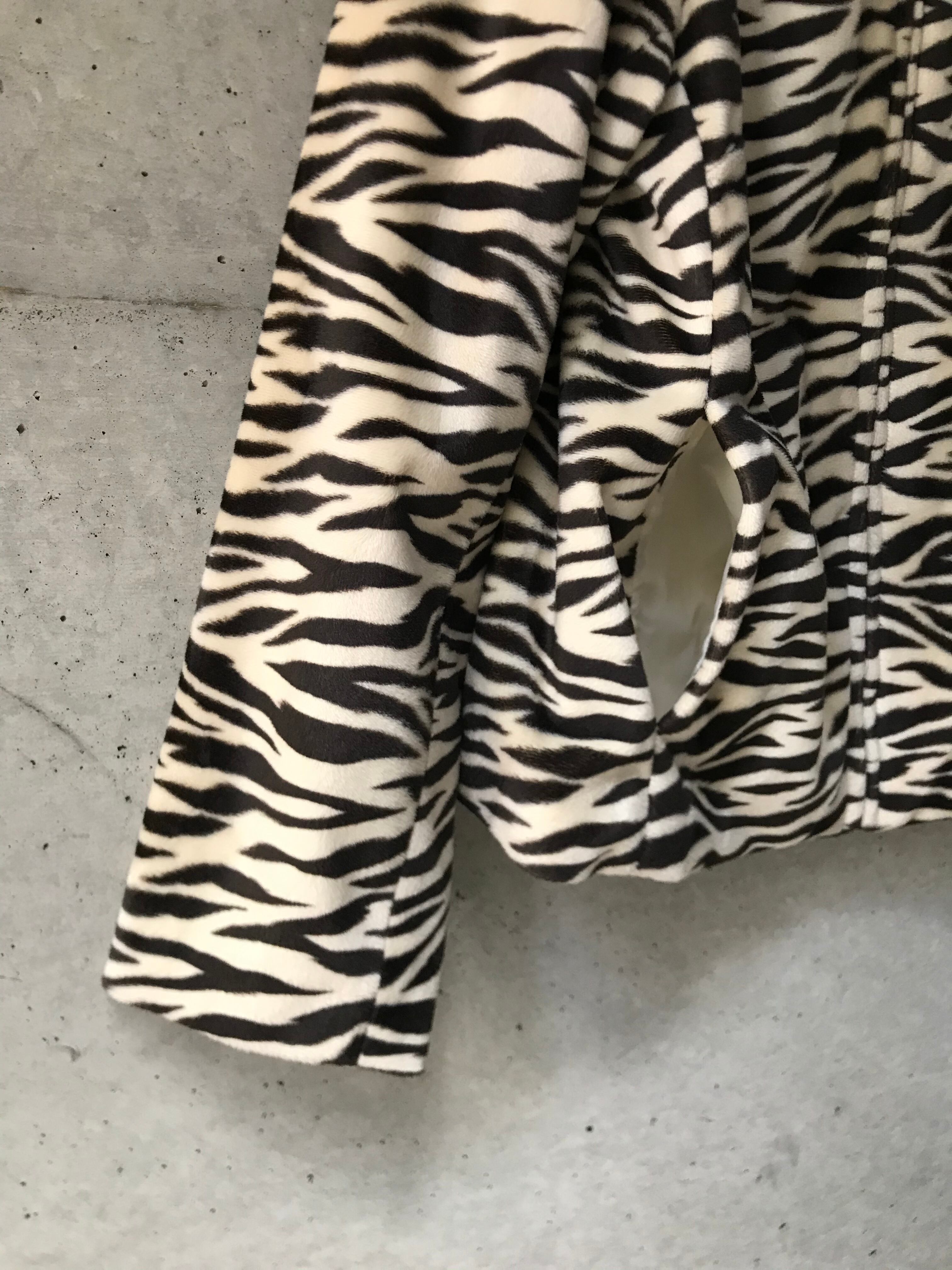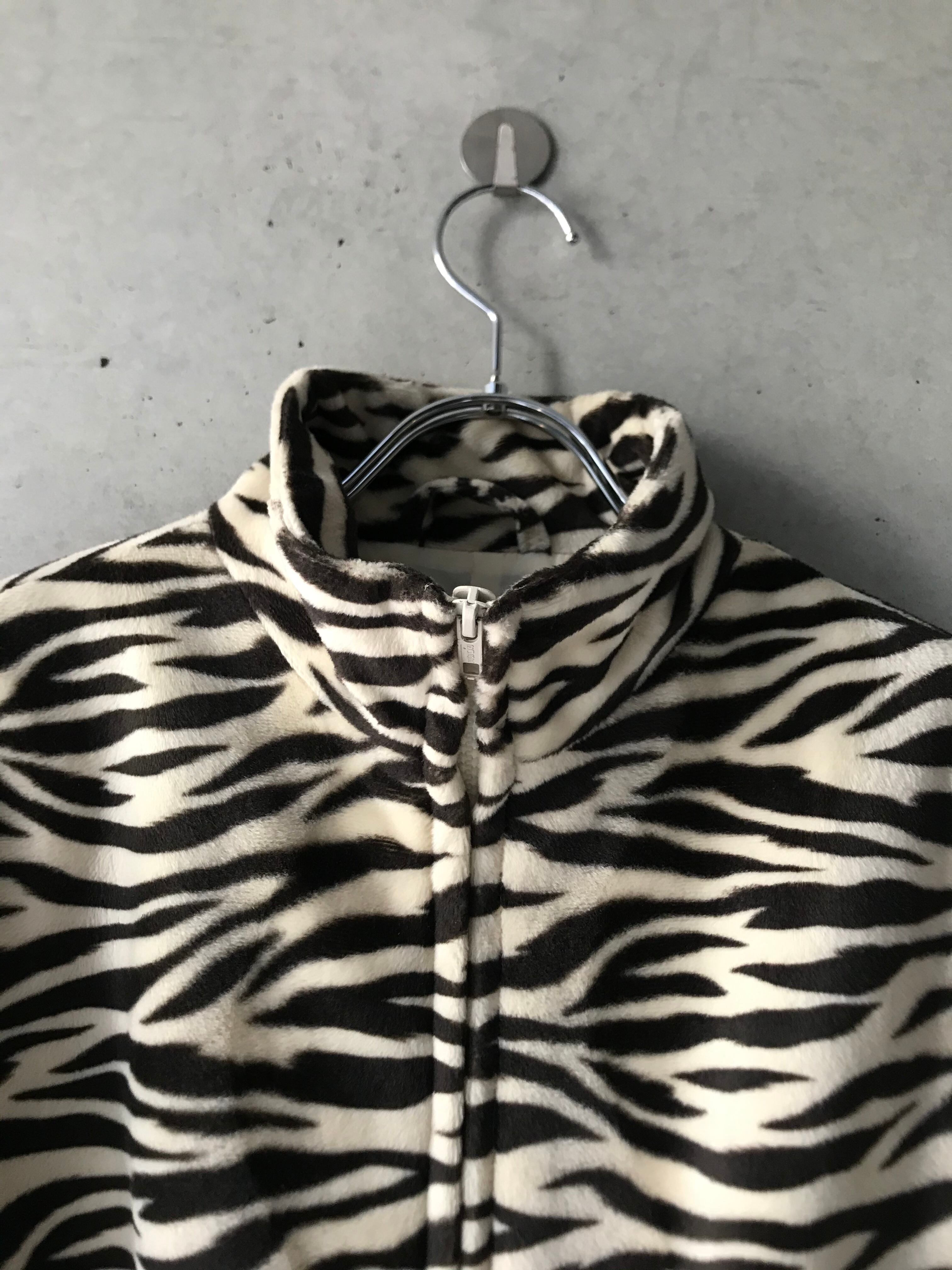 インパクトあるゼブラ柄で首上までジップが閉まるのでストリートにもモードにも振れるキラーアイテム。