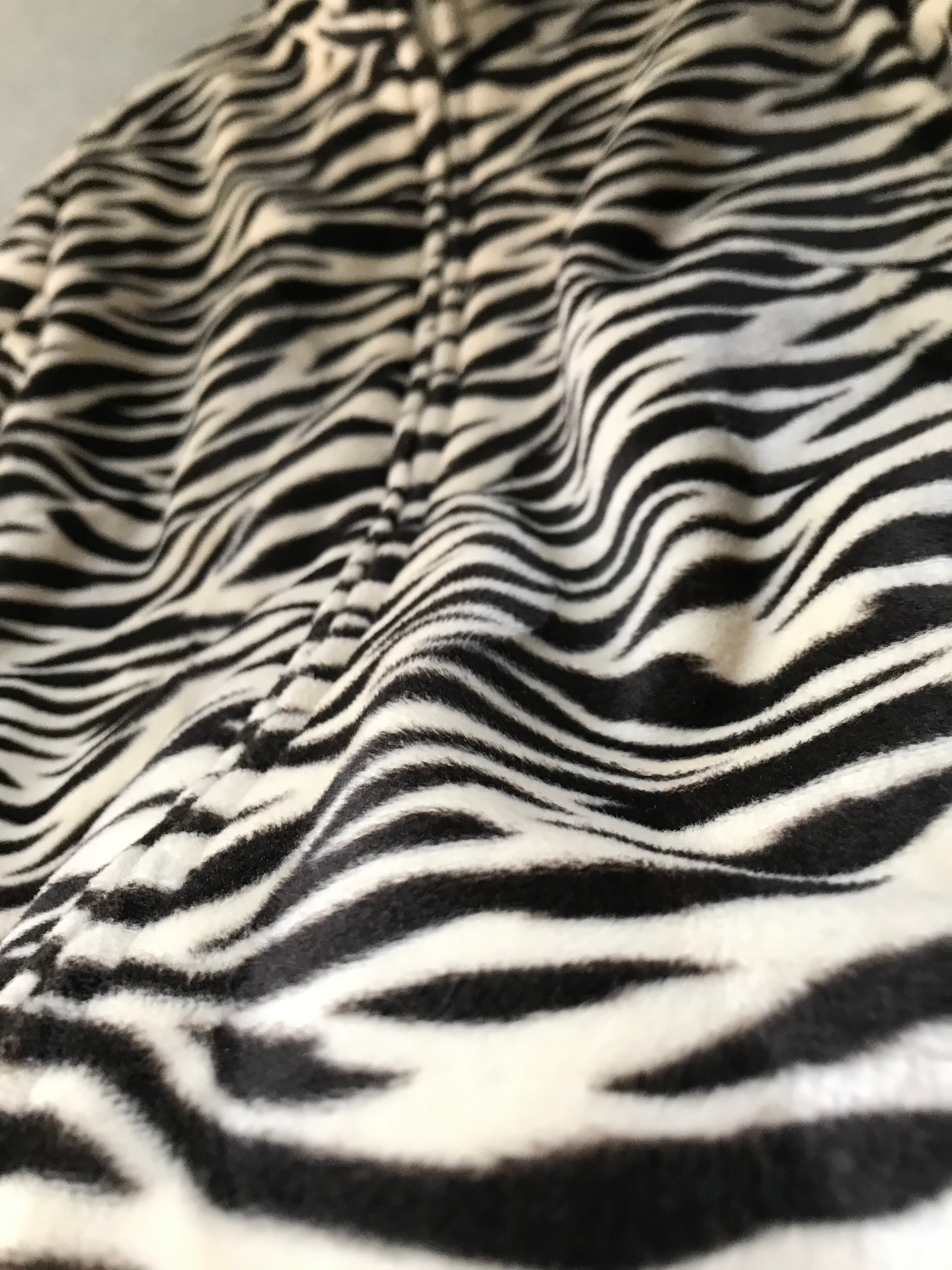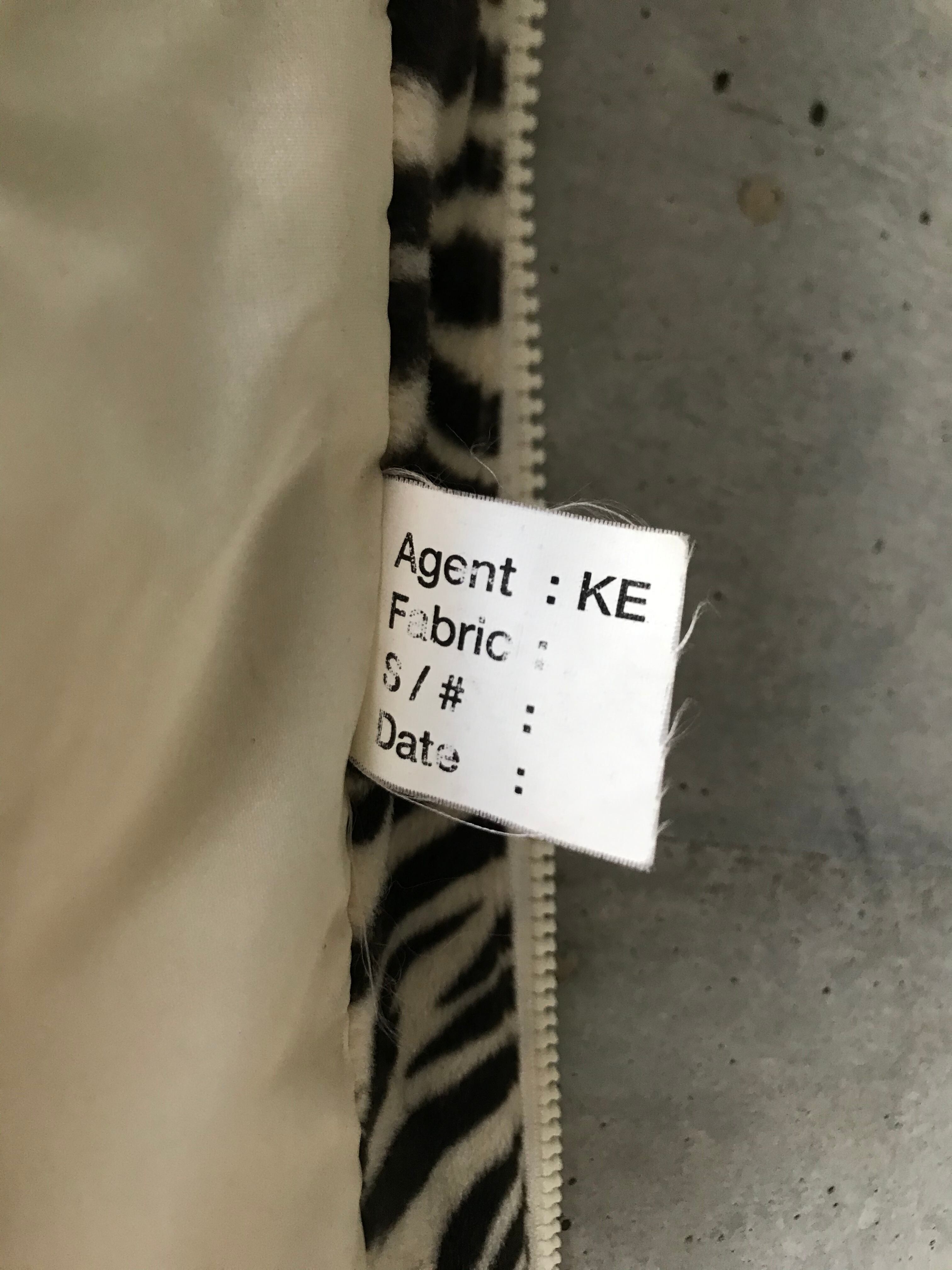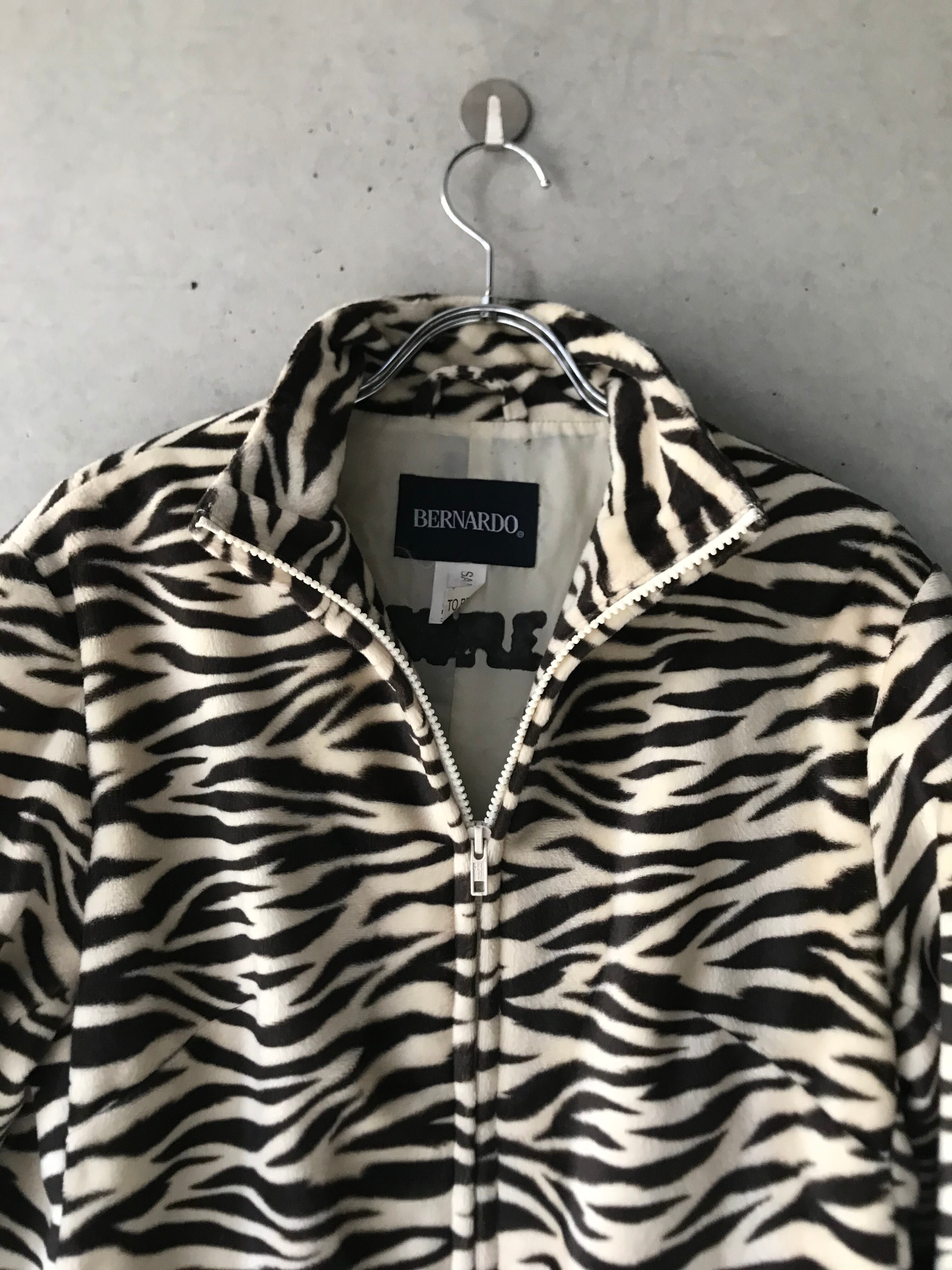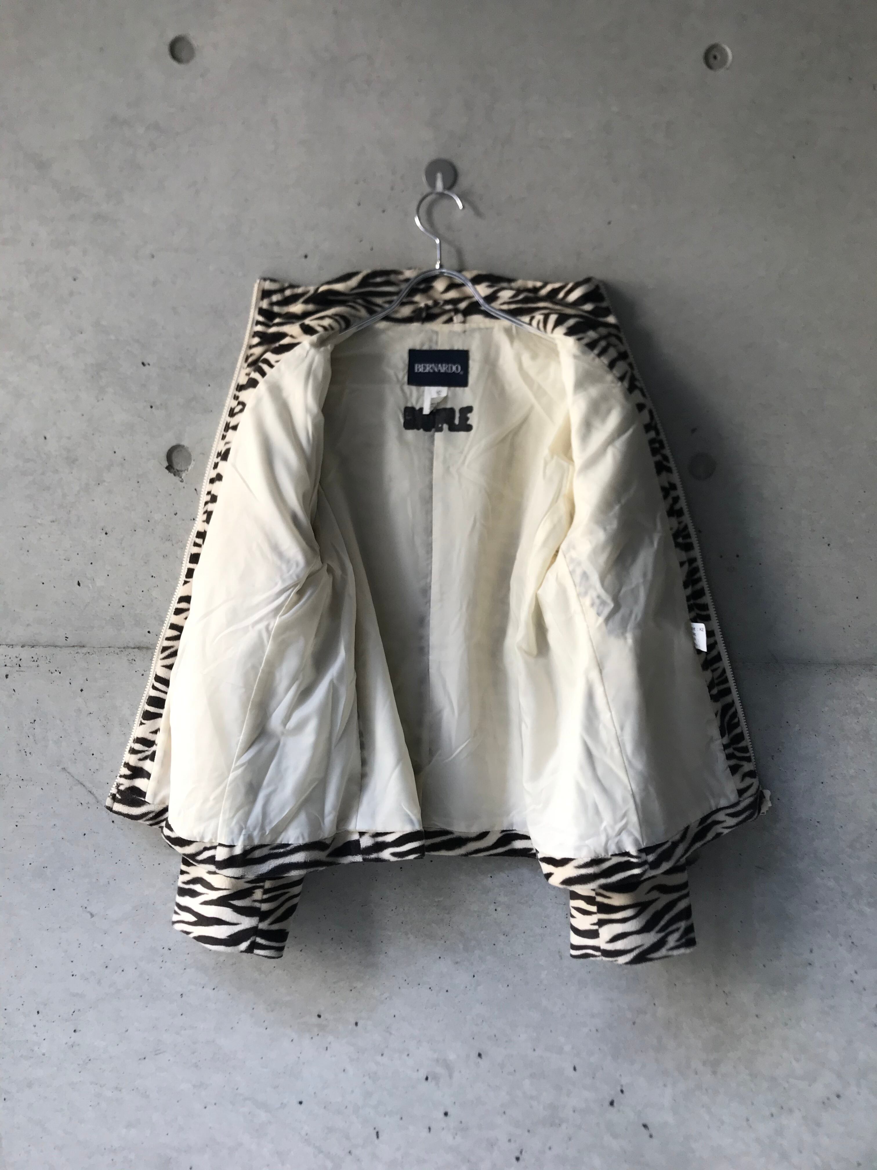 インパクトあるゼブラ柄で首上までジップが閉まるのでストリートにもモードにも振れるキラーアイテム。