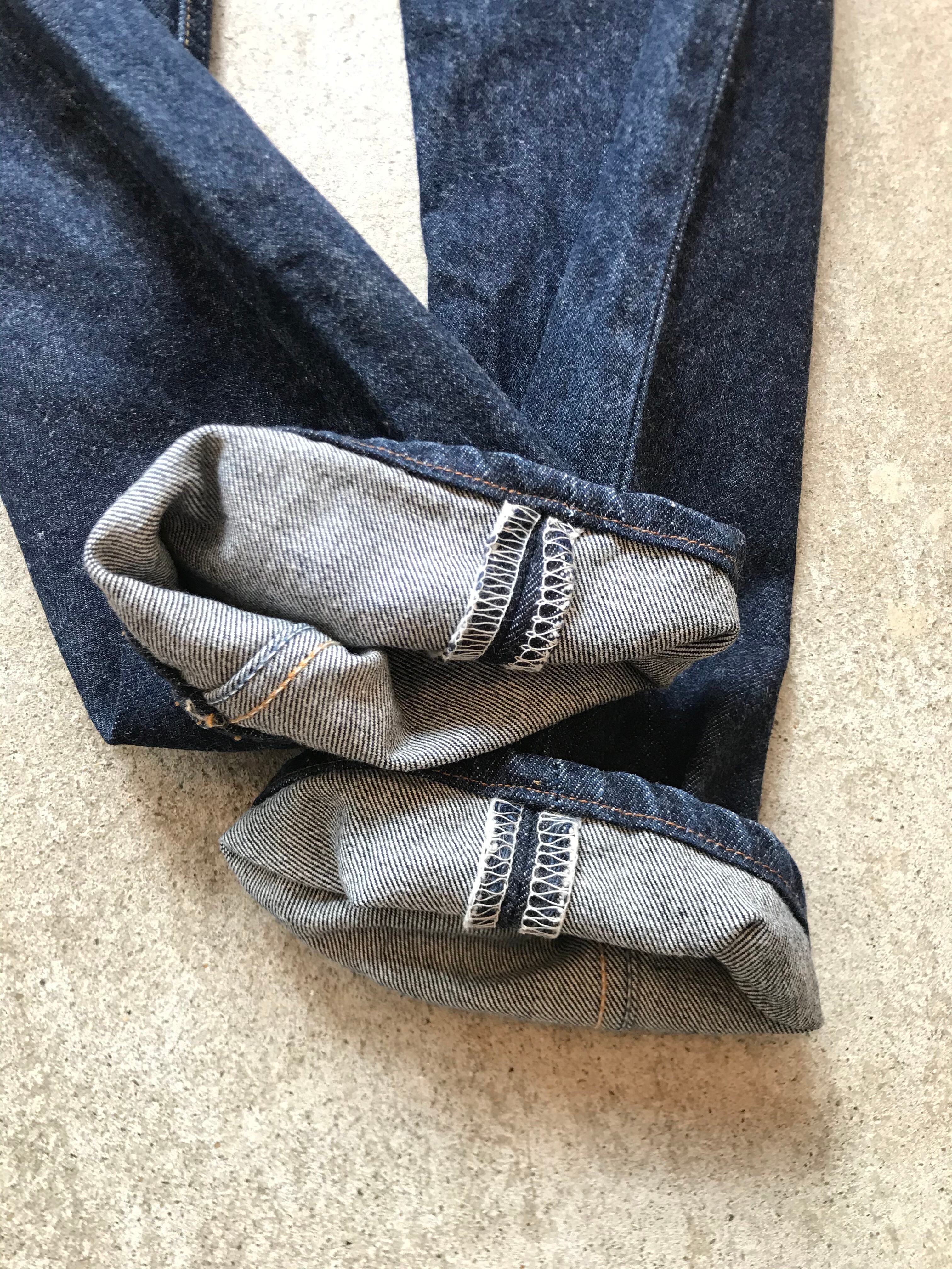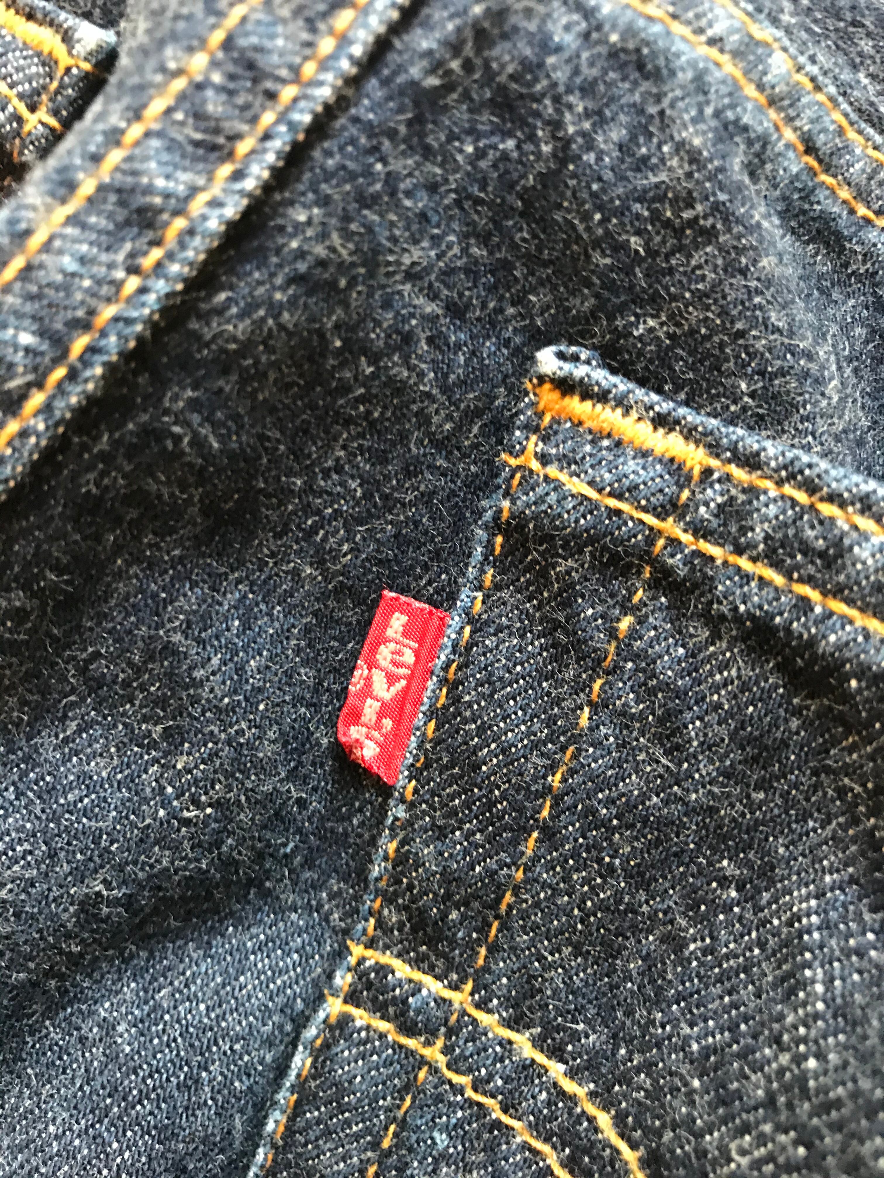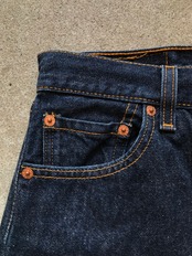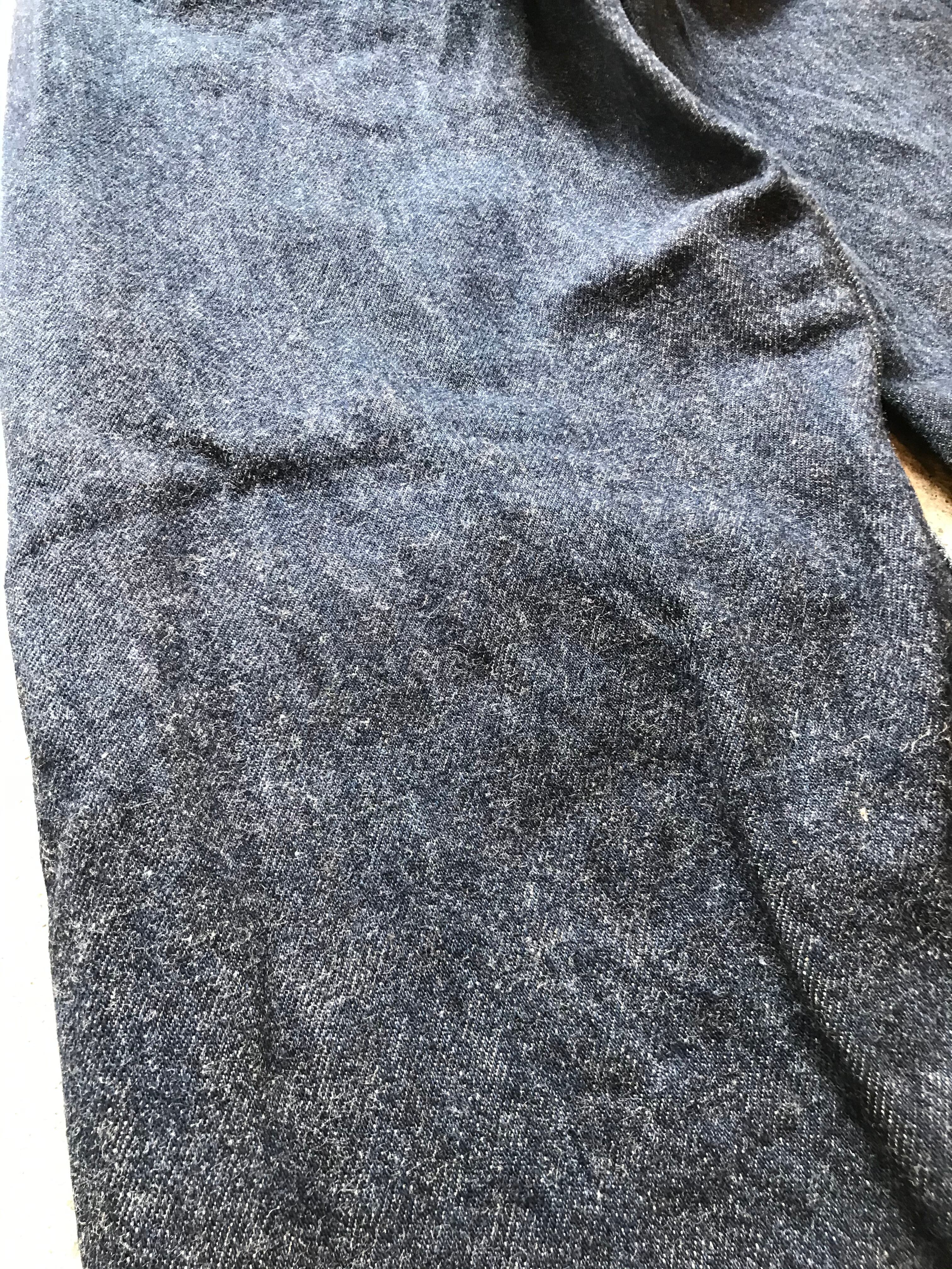 履き込まれてデニムの色落ちが進んだ物がどうしても多いですがこちらの1本はほとんど着用感が無い色残りがしっかりとある素晴らしい1本。