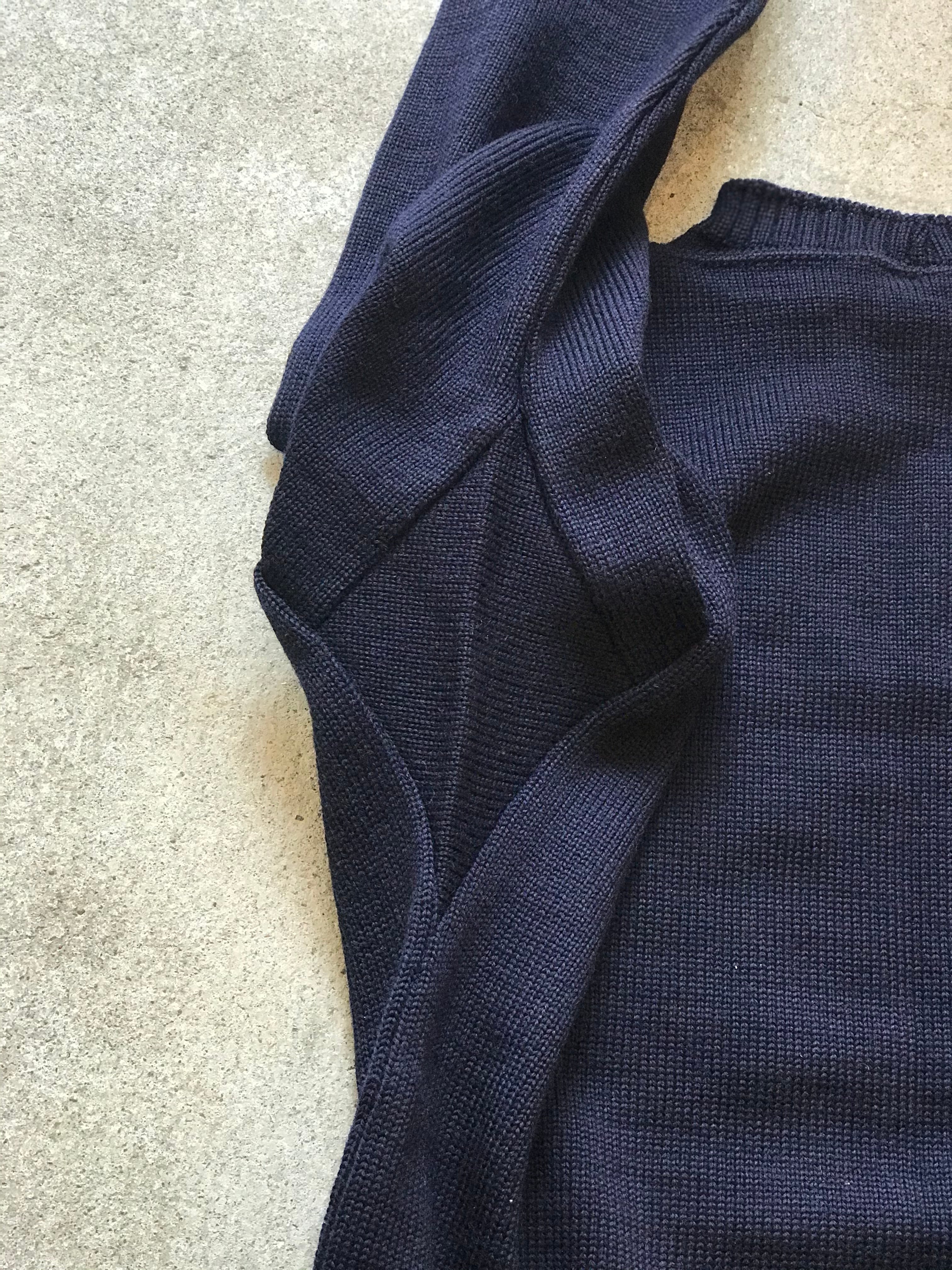 どうしても小さいサイズや極端に変な形に縮んでしまった物が多いニットですが身幅、着丈共に十分にあるサイズとなればこの先本当に出会えない1枚。