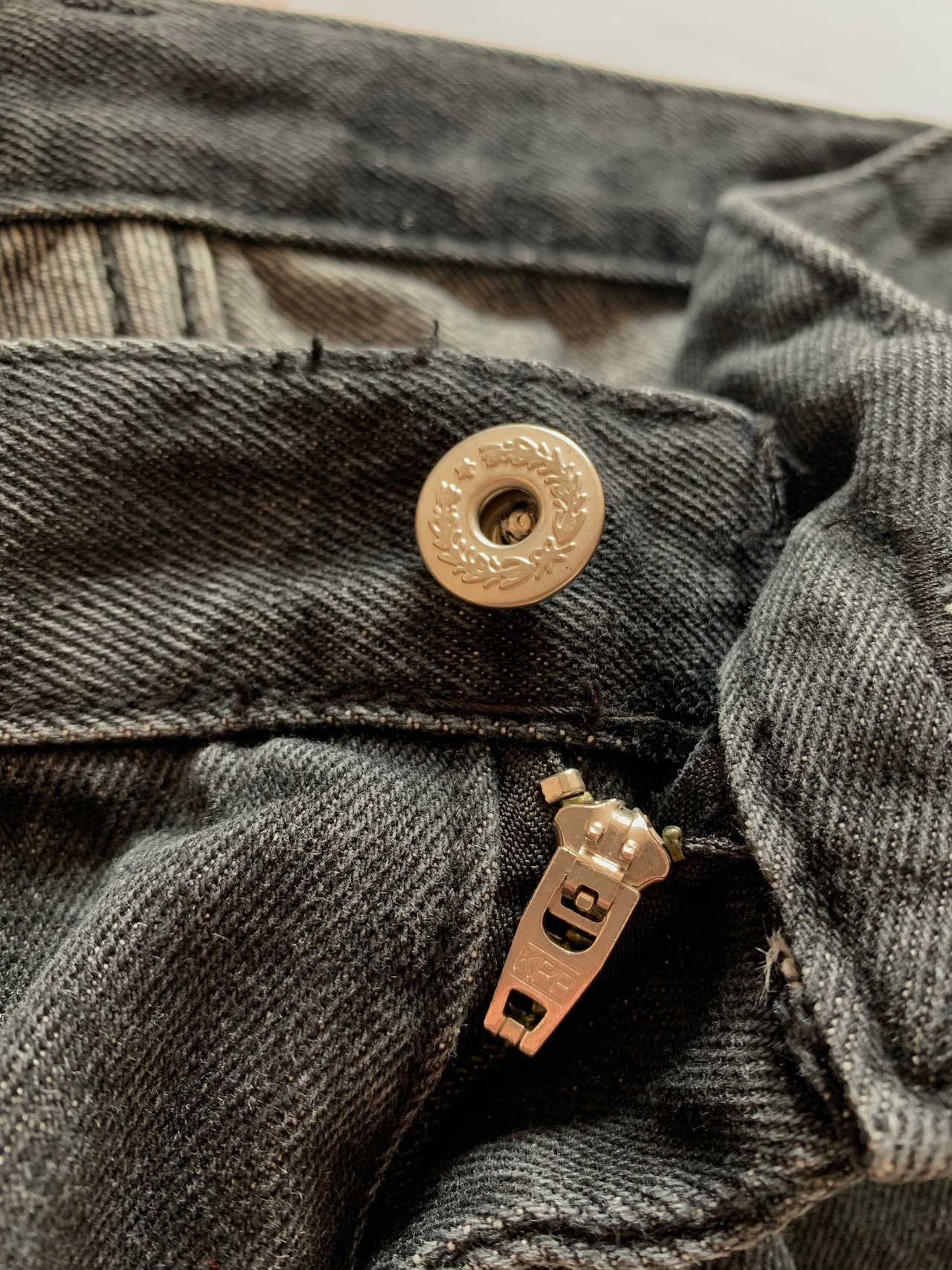 ブラックデニムの程よく履き込まれた雰囲気がめちゃくちゃカッコいい素晴らしい1本。