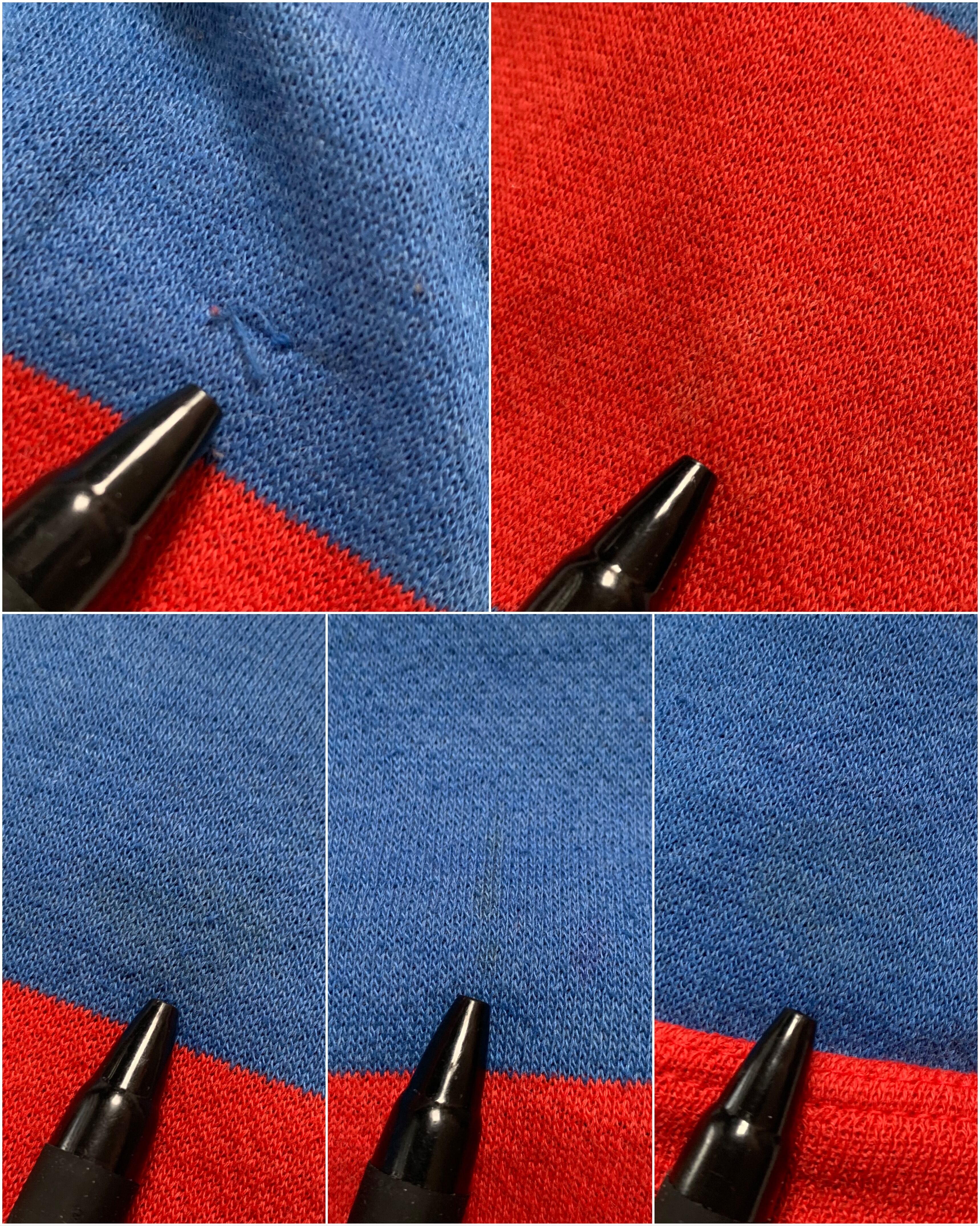 ユーズドで目立たない薄い汚れが数カ所あります。多少の毛羽立ち、擦れもありますが特に気になるダメージや汚れはありません。