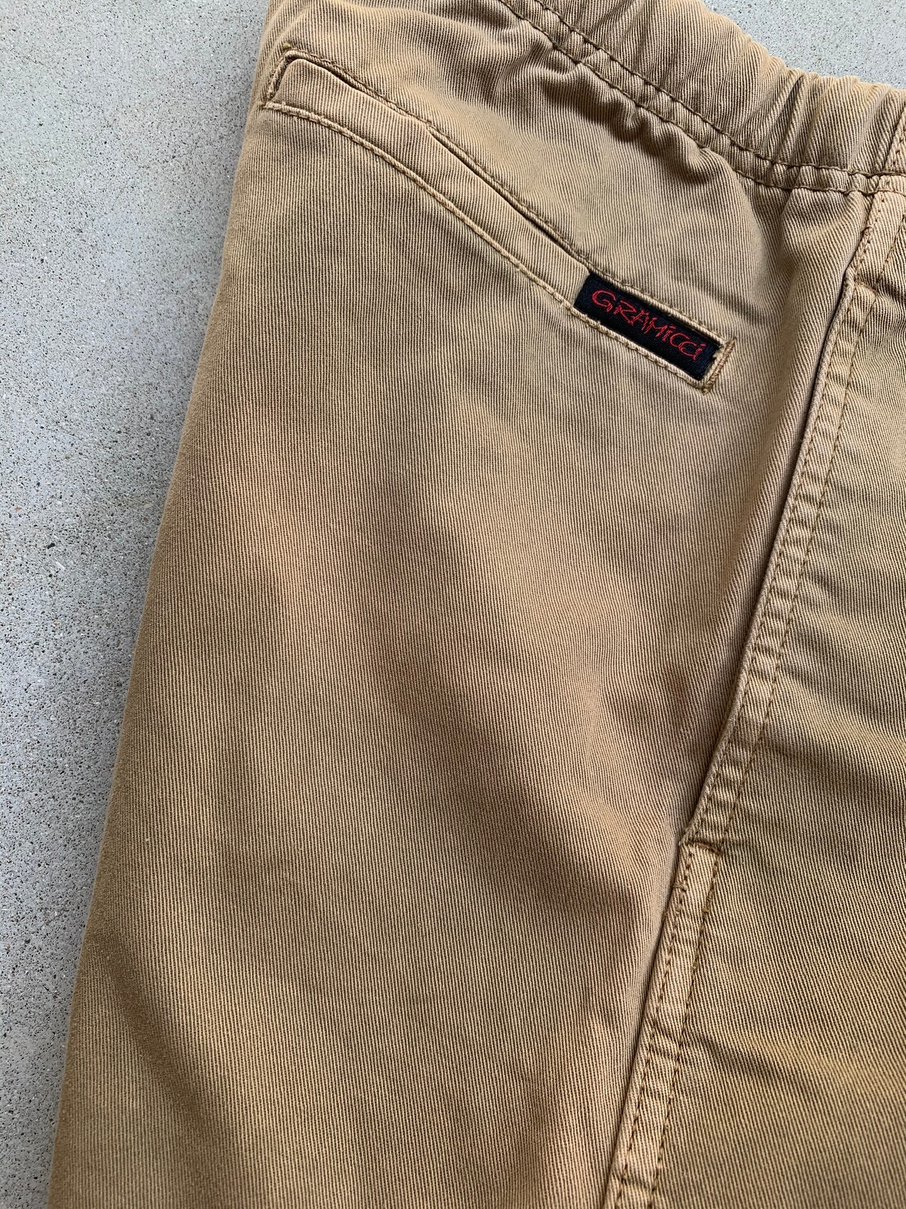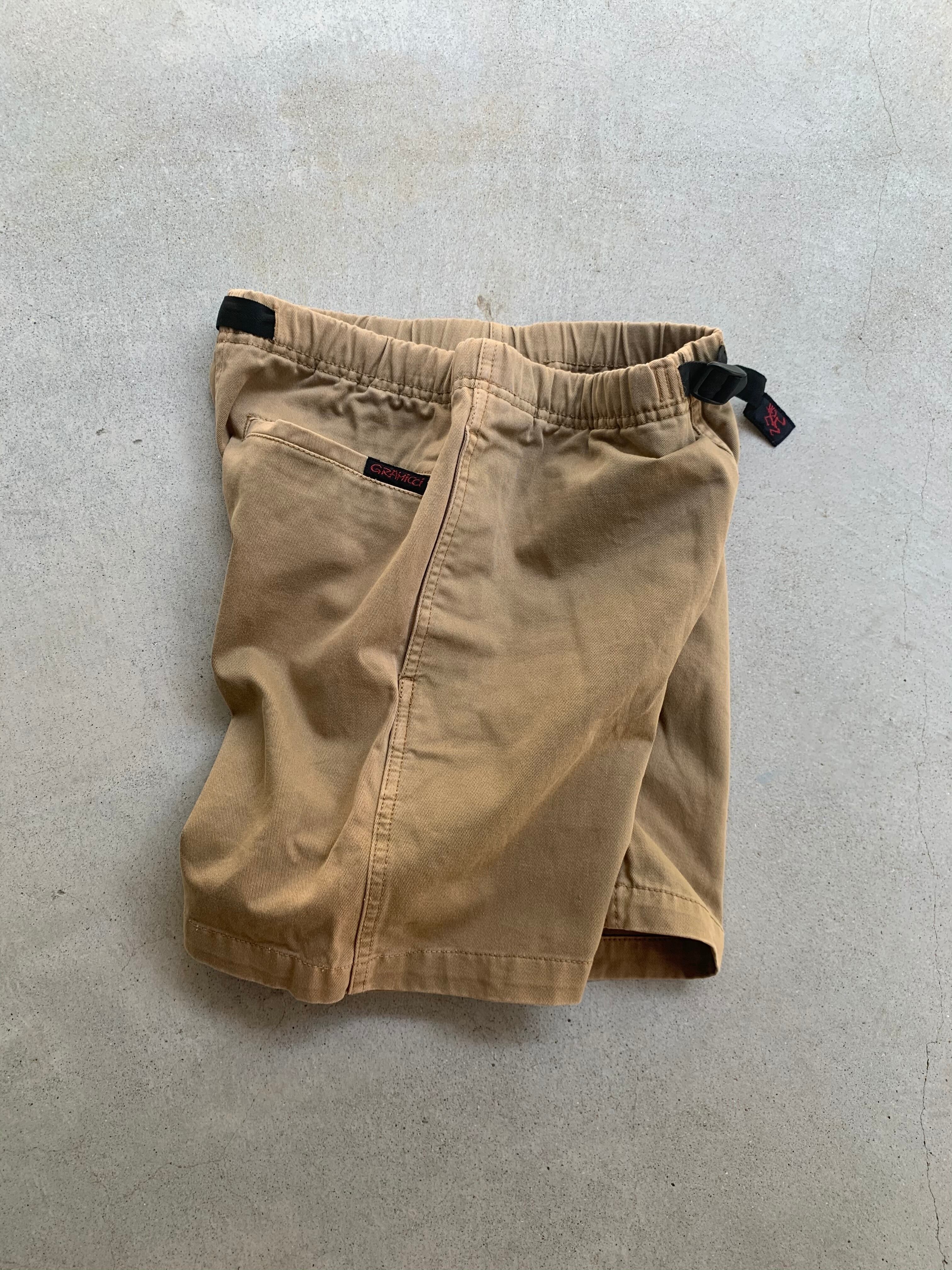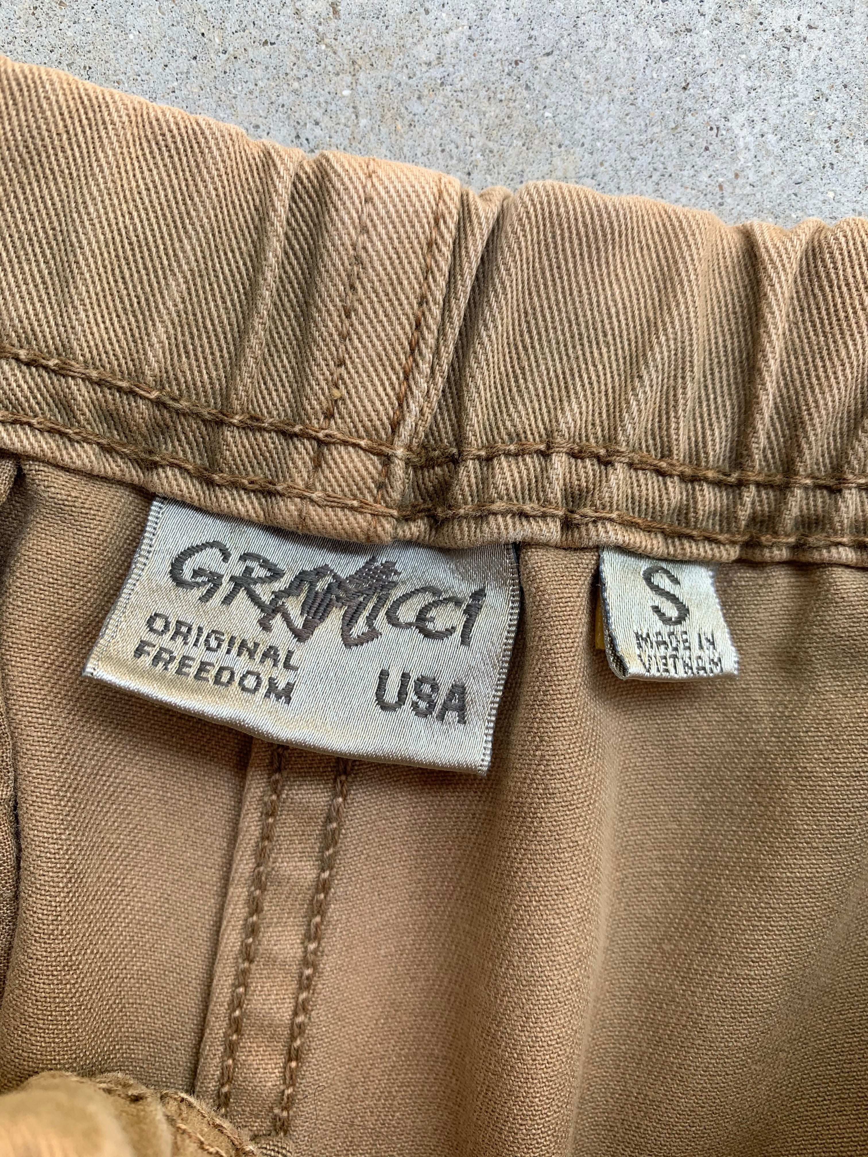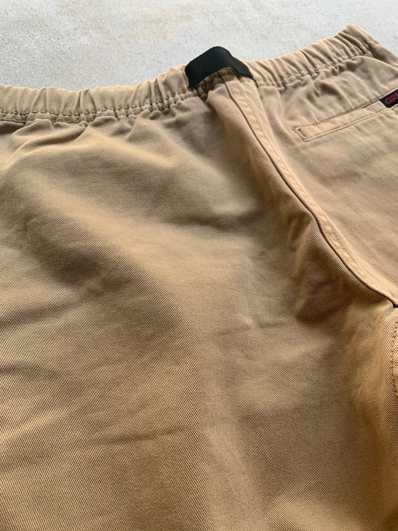 ユーズドで全体的に色落ち、色褪せ、変色、擦れ、薄い汚れがありますが特に気になるダメージはありません。サイズ表記Sで実寸サイズはウエスト約62~78cm(アジャスターで絞れます)、股上約21.5cm、レングス約19cm、裾幅約28.5cm、サイド総丈約41cmです。