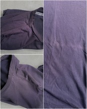 両肩にも色褪せがあります。首リブに擦り傷、右脇下にピンホールもありますが特に気になるダメージや汚れはありません。