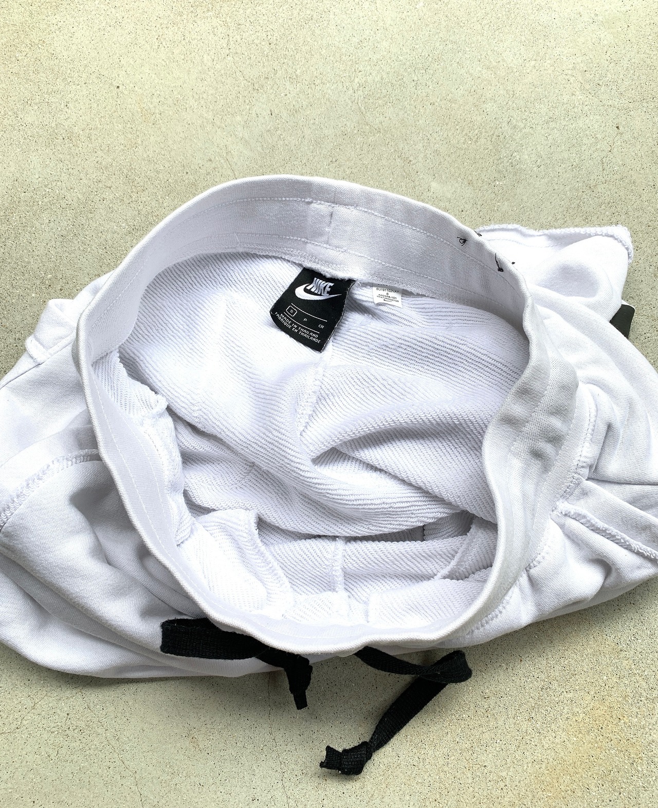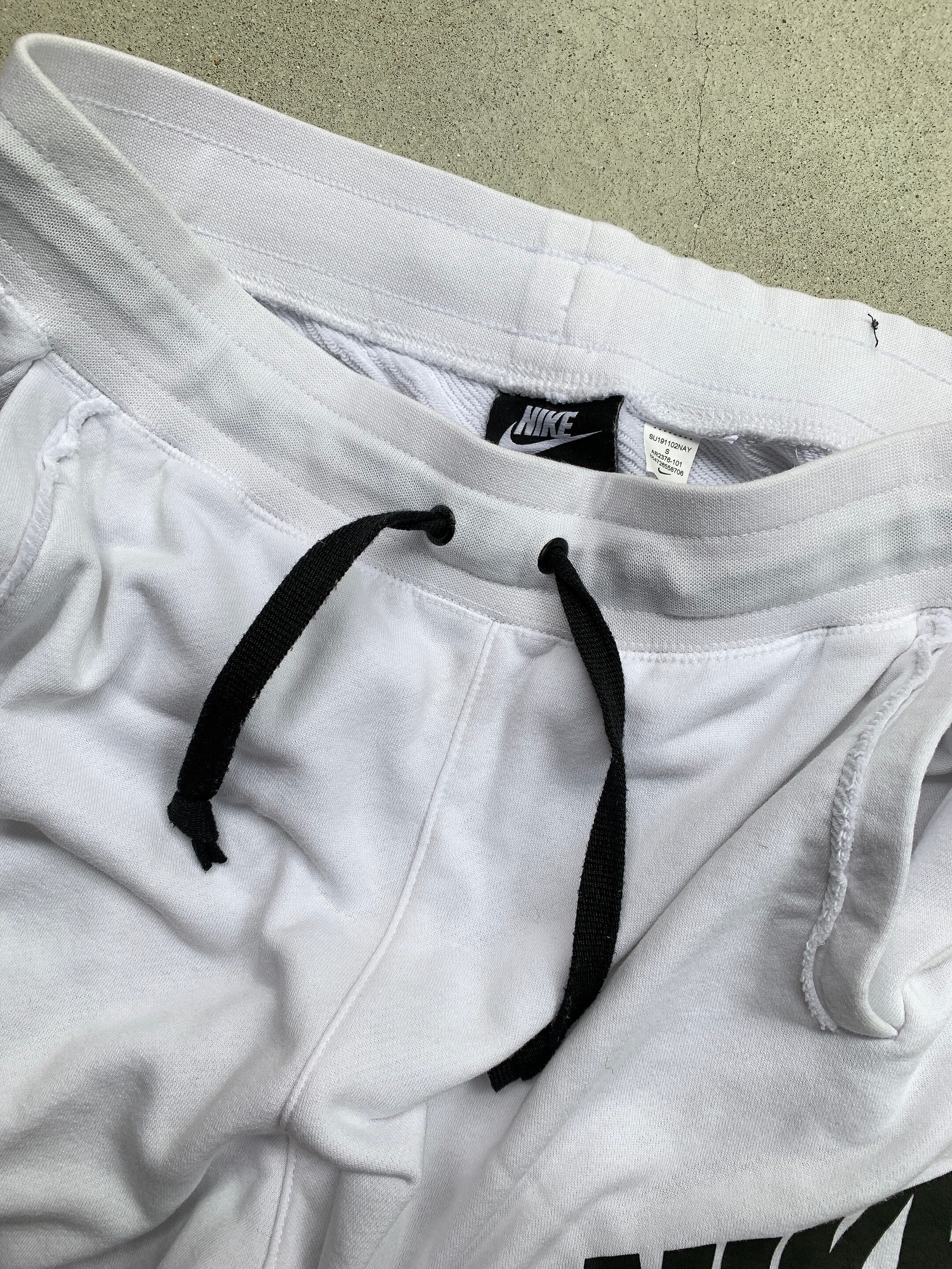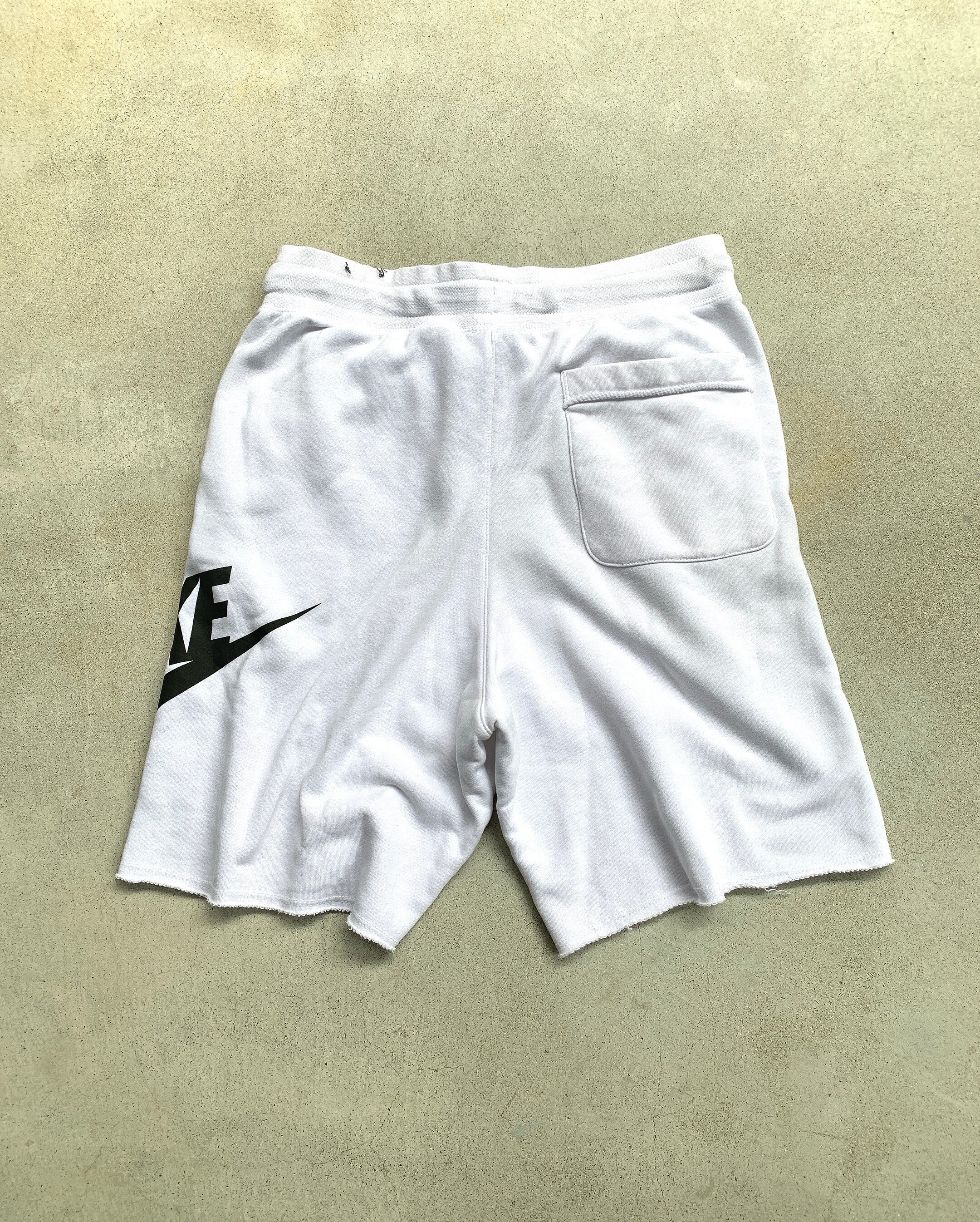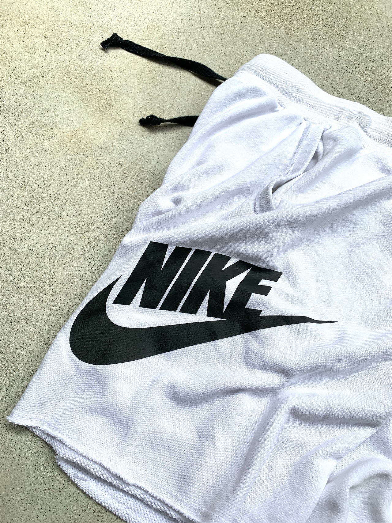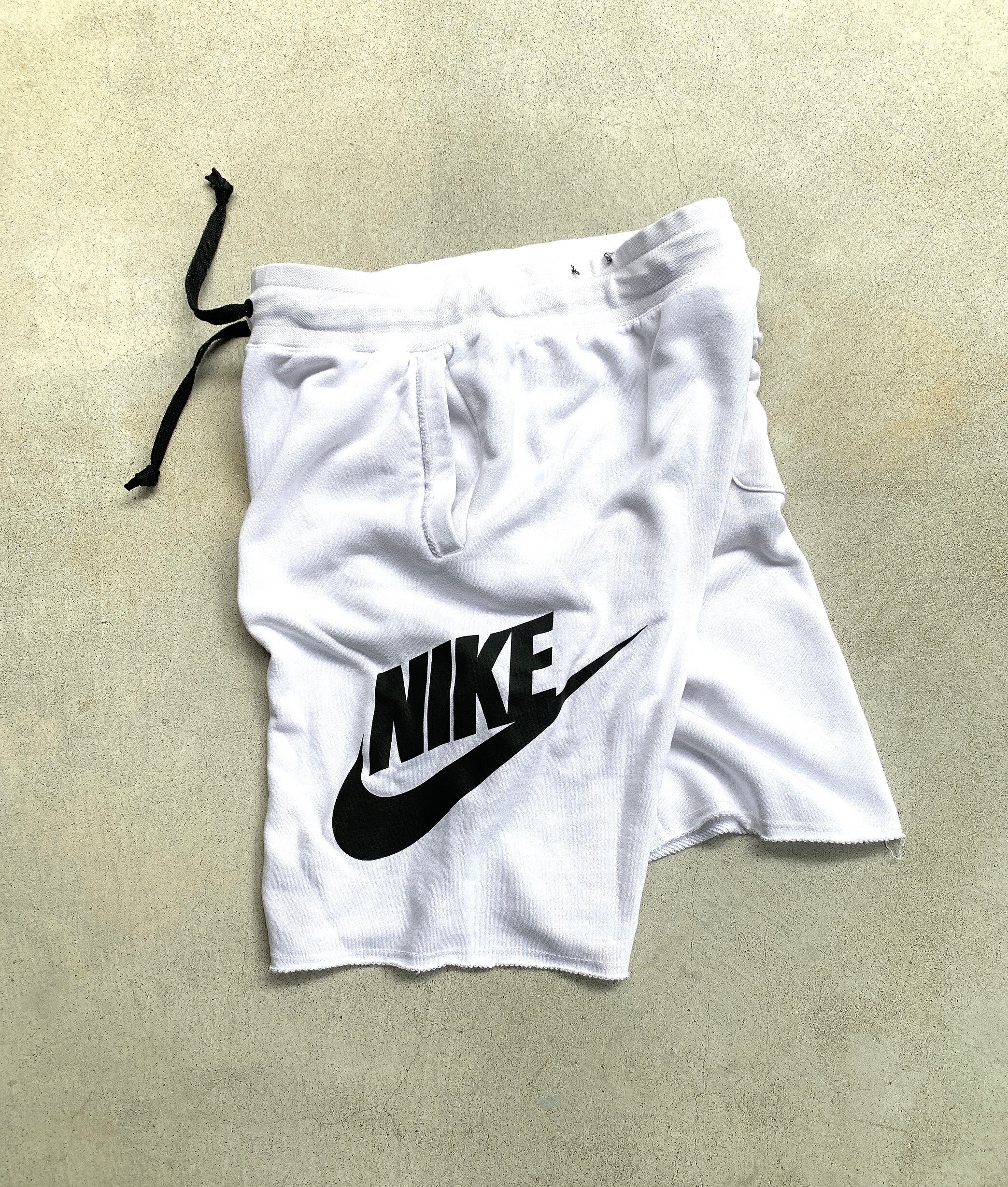 ナイキのビッグロゴ入りのカットオフスエットショーツ。