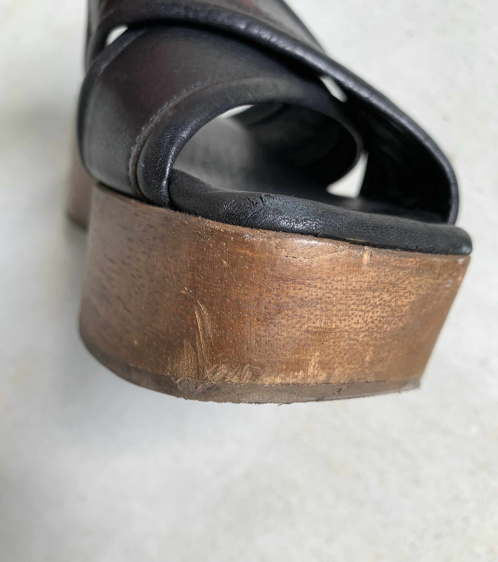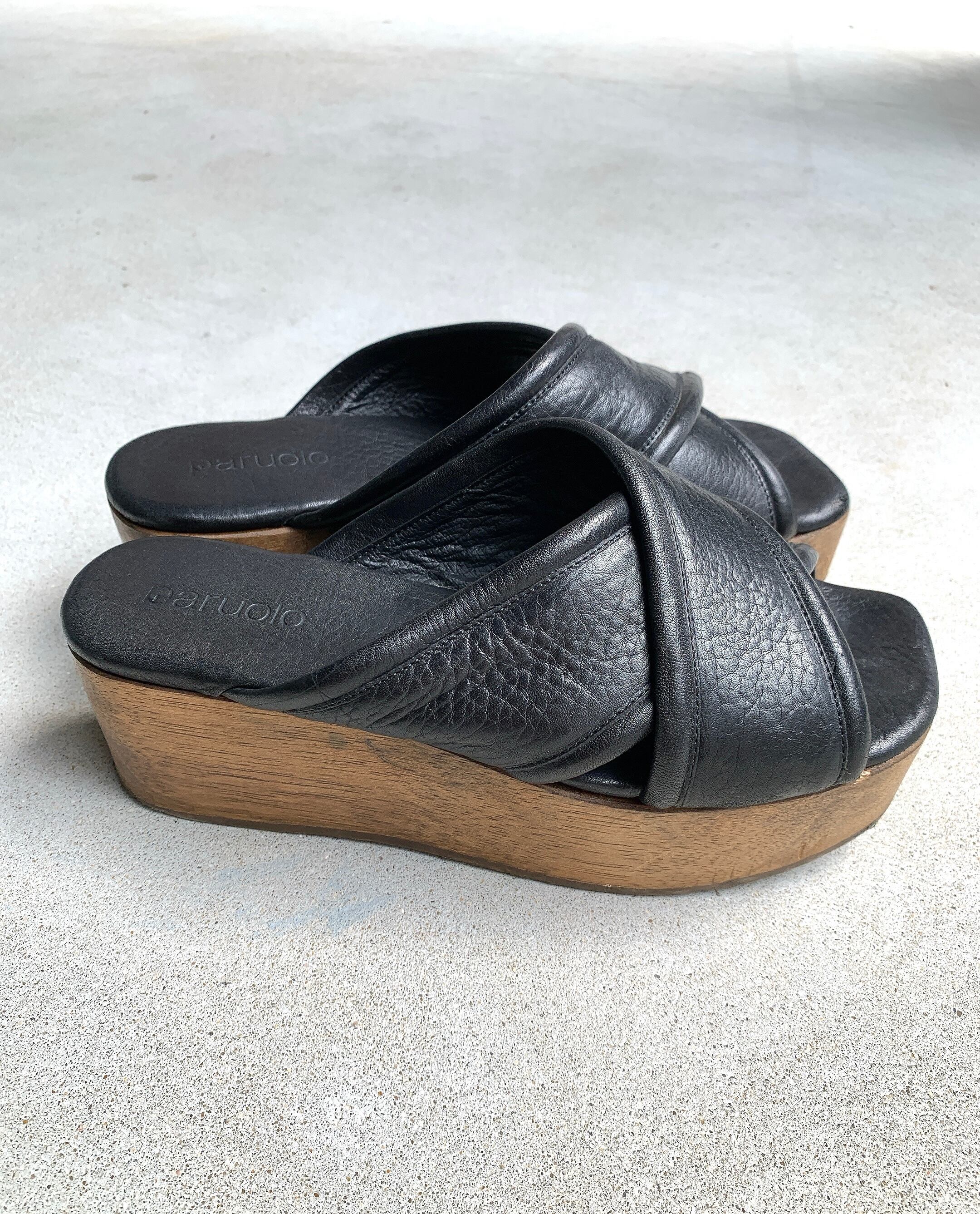ヴィンテージのparuoloのウッドソールのレザーサンダル。