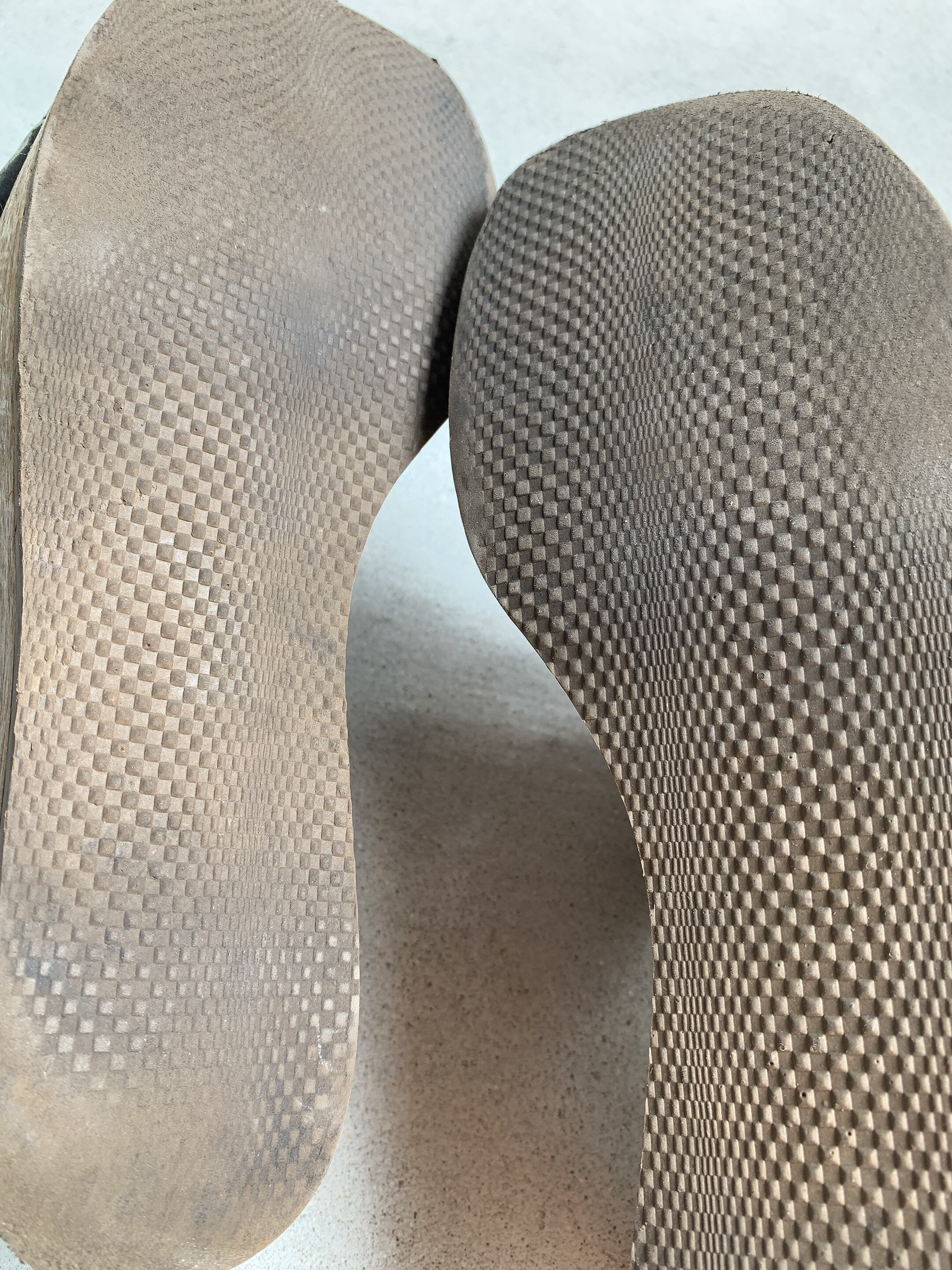 この手のウッドソールのレザーサンダルは重さがないと本当に作りが粗くすぐに壊れたり物自体がしょぼく見えてしまいます。