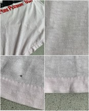 ユーズドで全体的に色褪せ、変色があります。目立たない薄い汚れもあります。フロント裾先に小穴もありますが特に気になるダメージや汚れはありません。