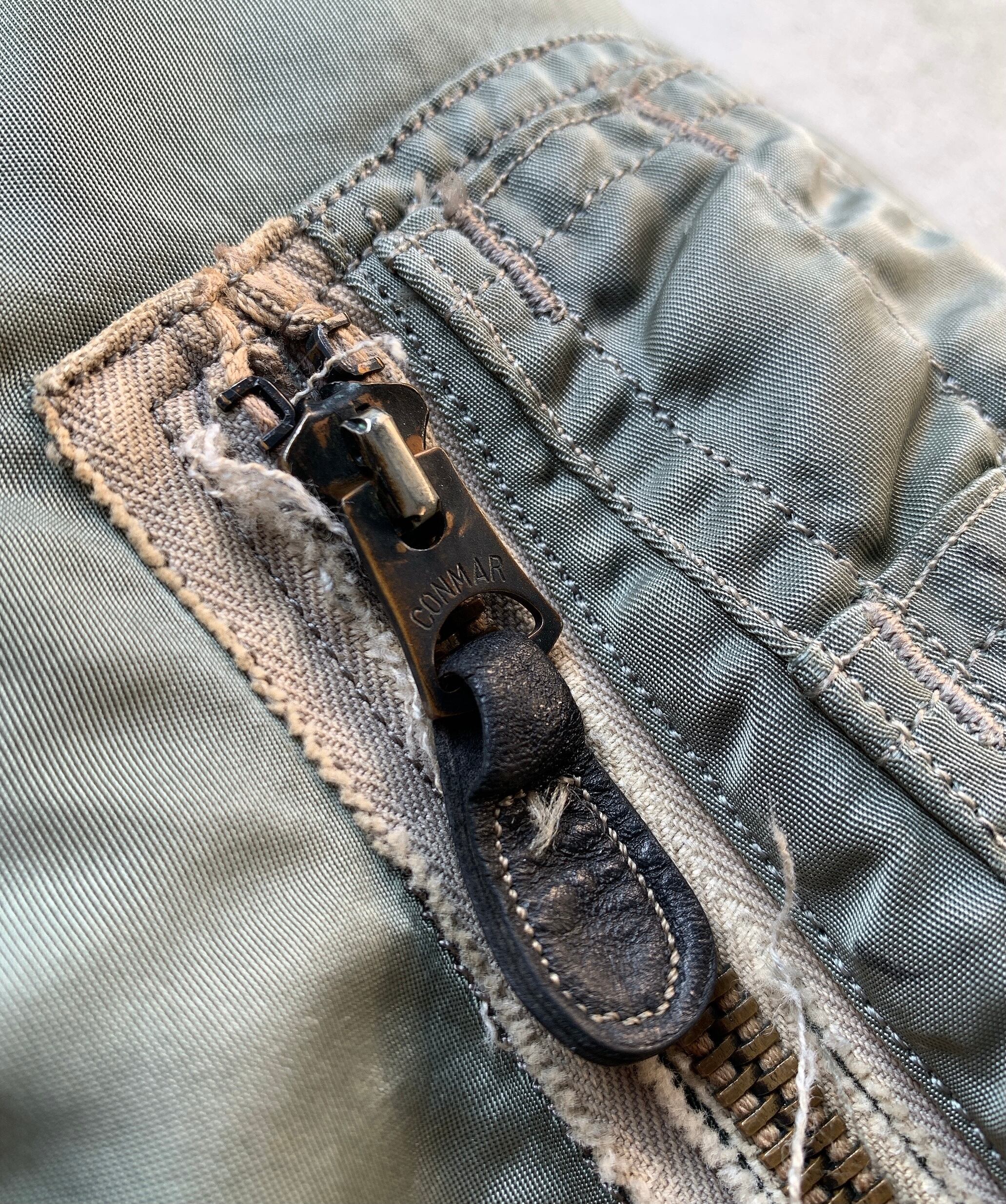 左腕のシガレットポケットのジッパーもCONMARでジッパーは稼働しますがジッパーレールのサイドテープが裂けてます。