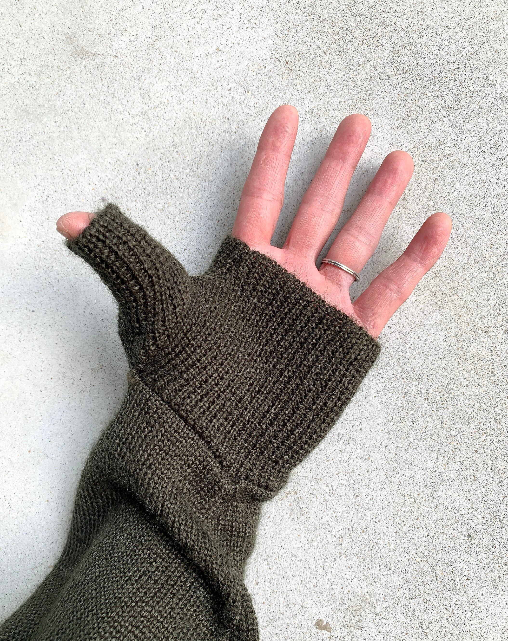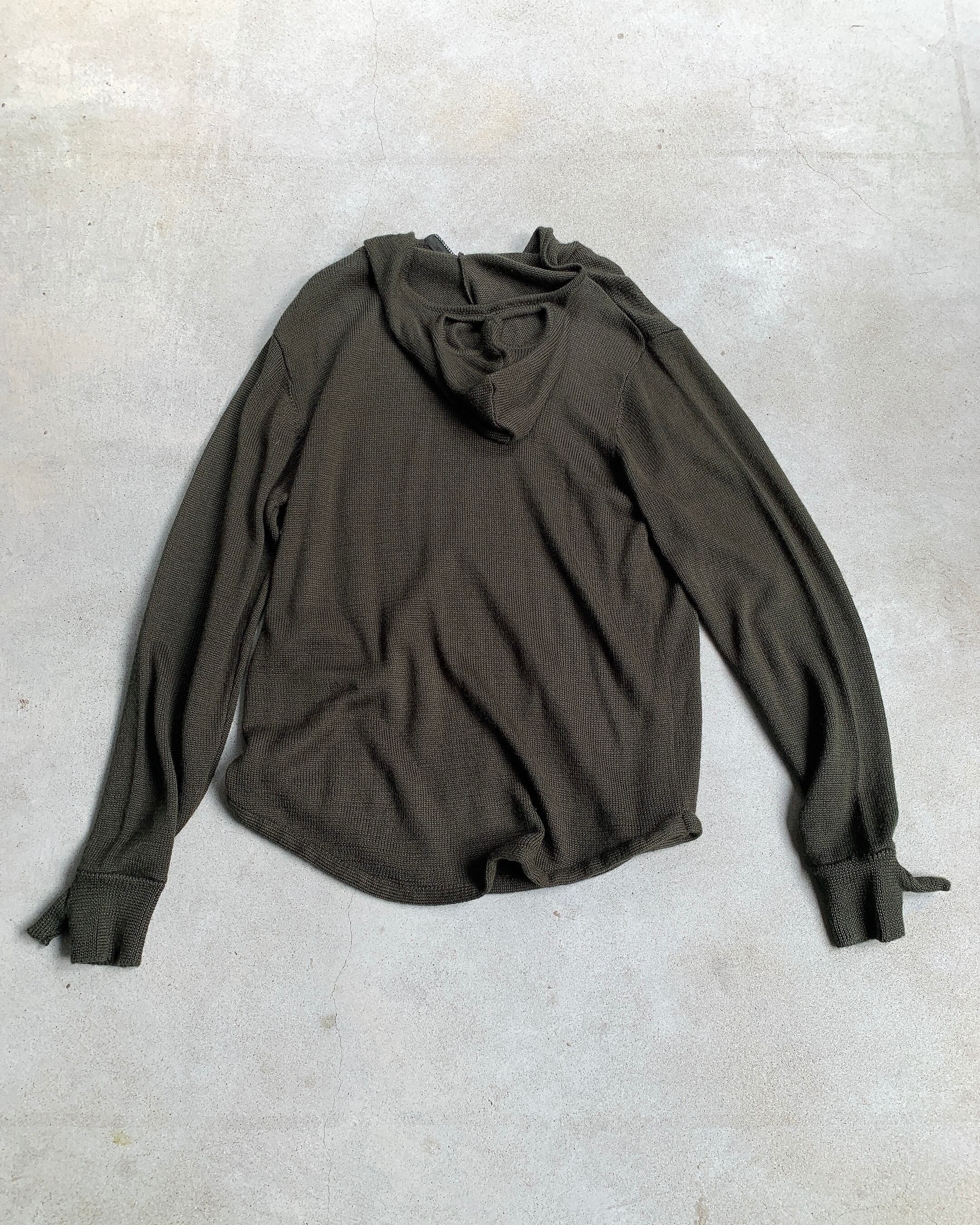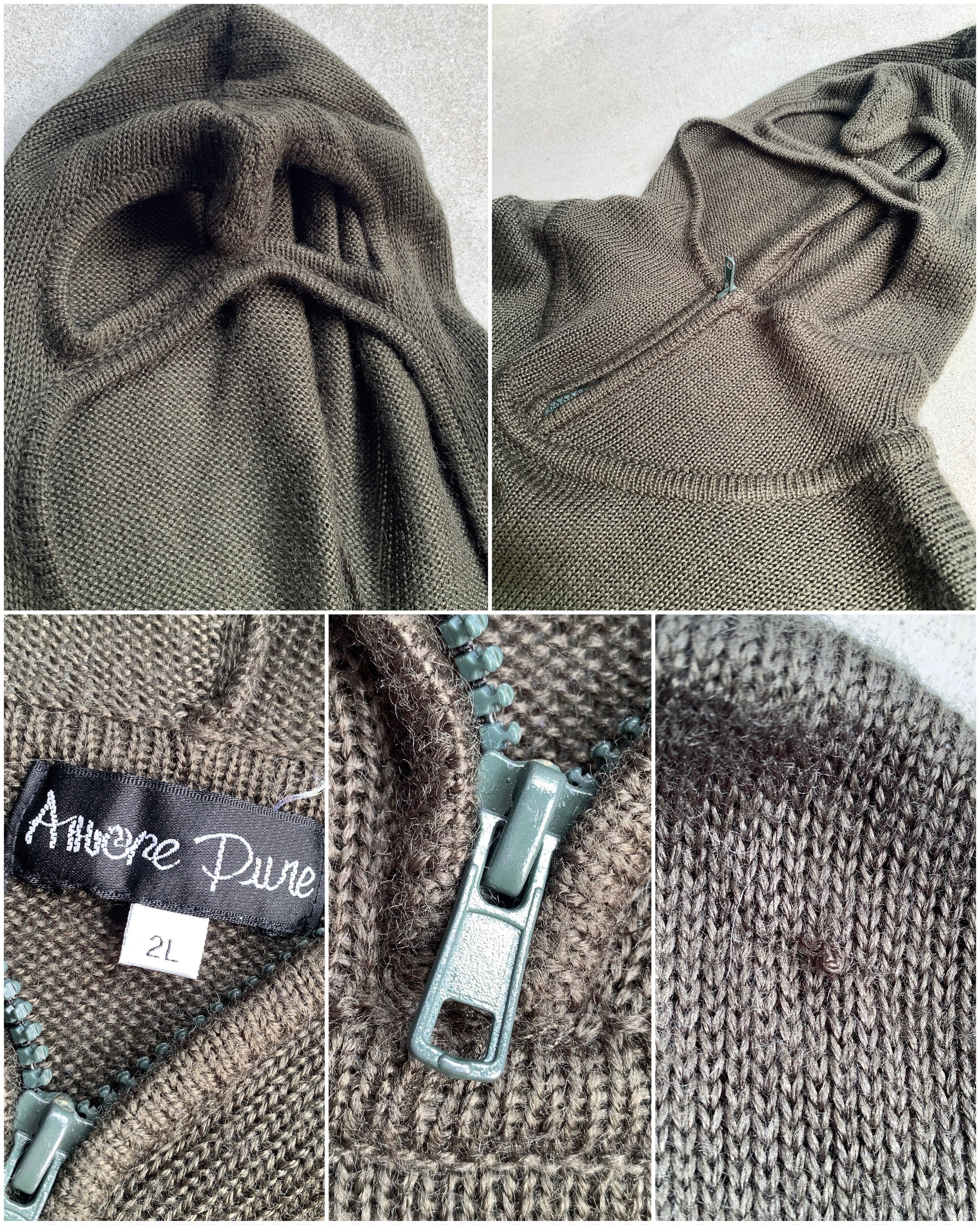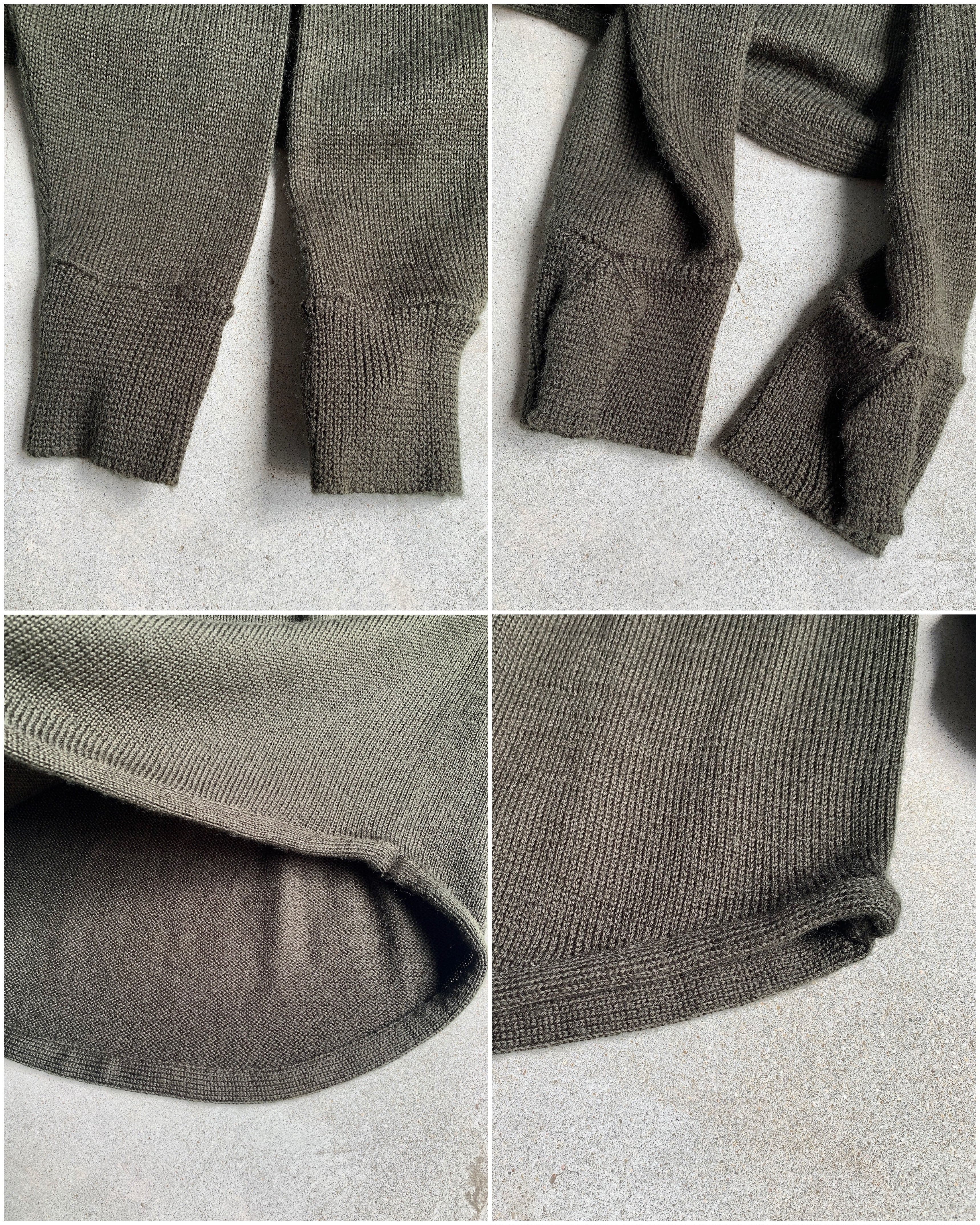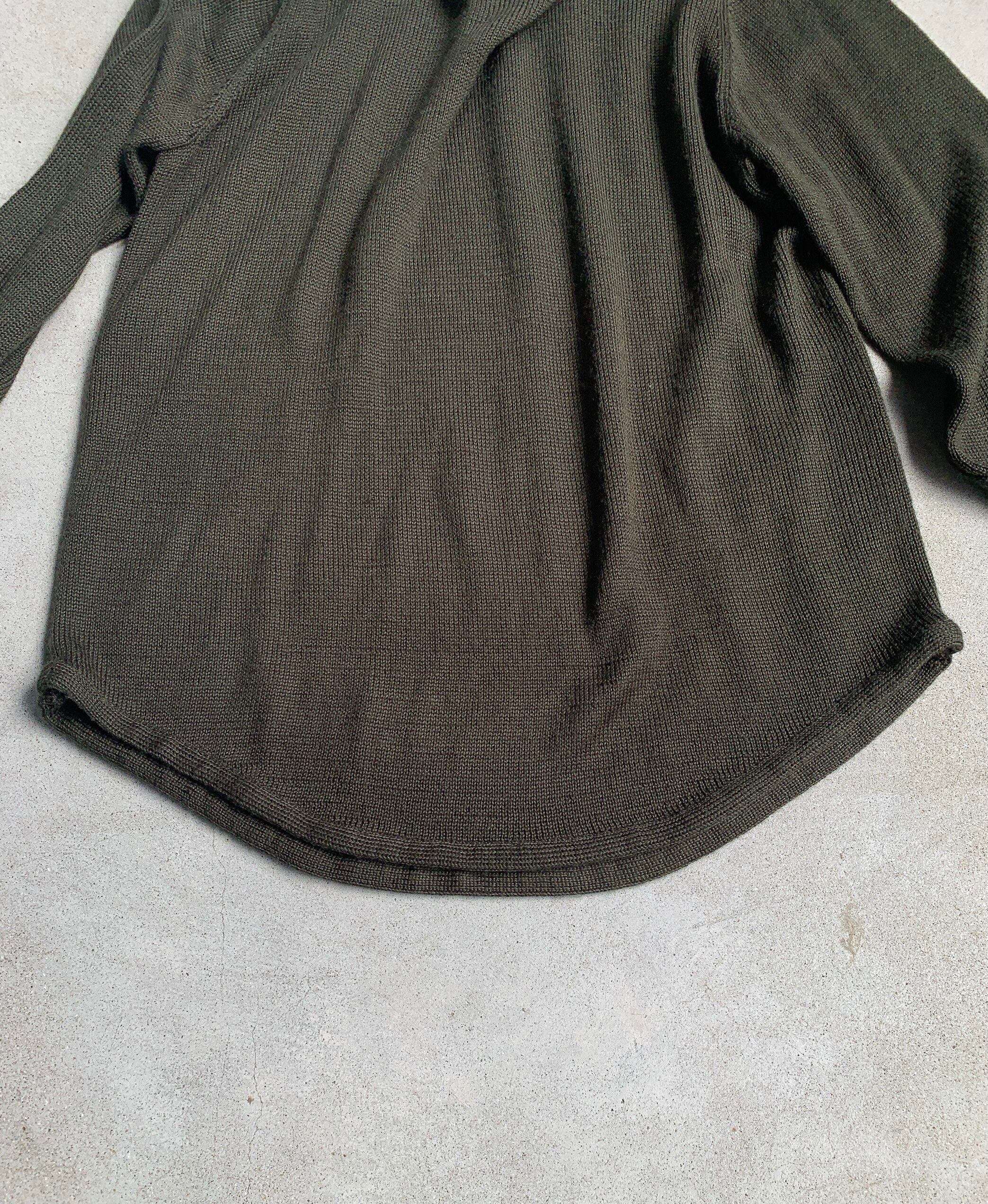 カラーも濃いグリーンでどこか野暮ったさが残り本当に強盗・泥棒にも見えてしまう面白いデザインニットです‼︎
