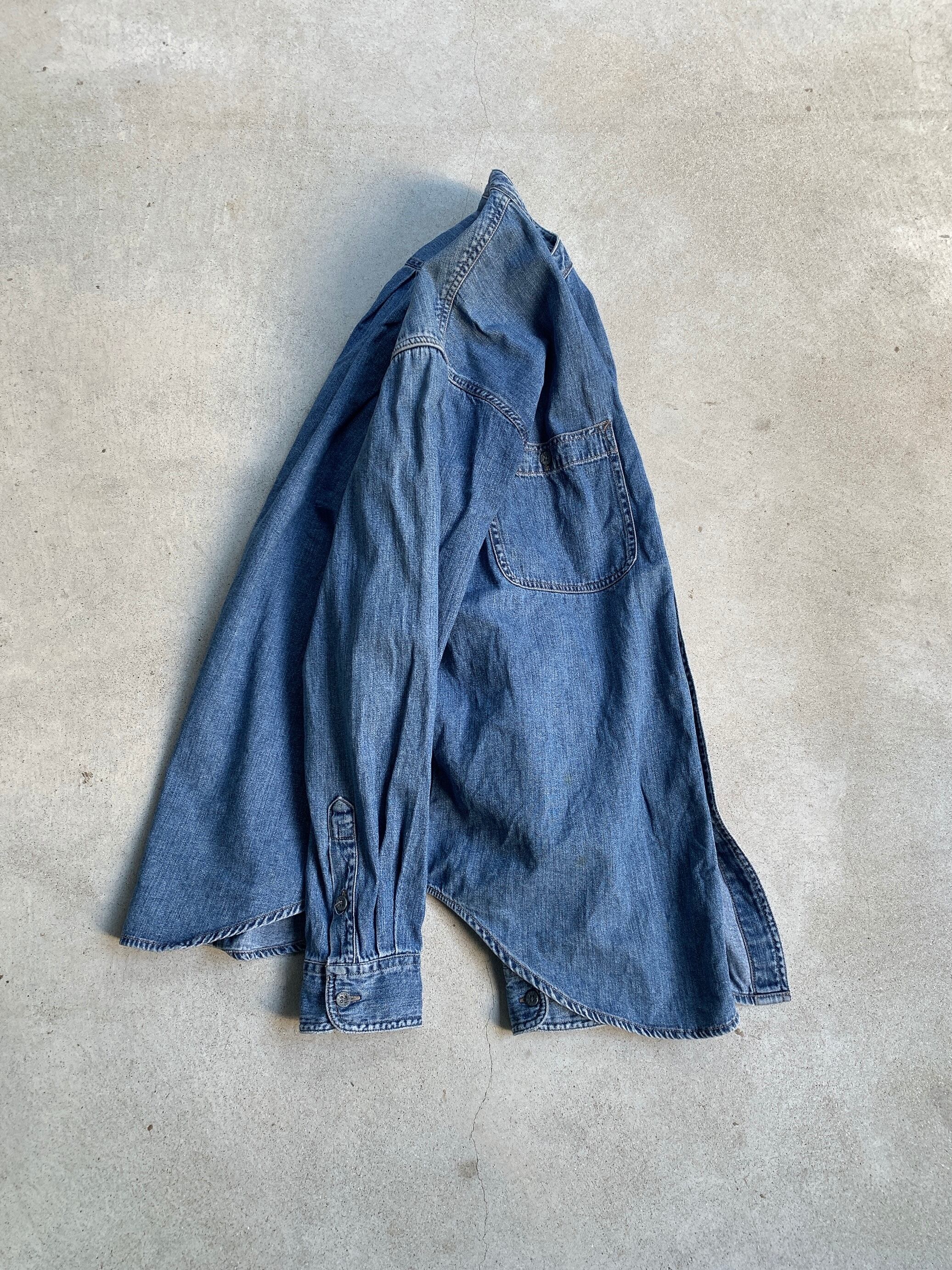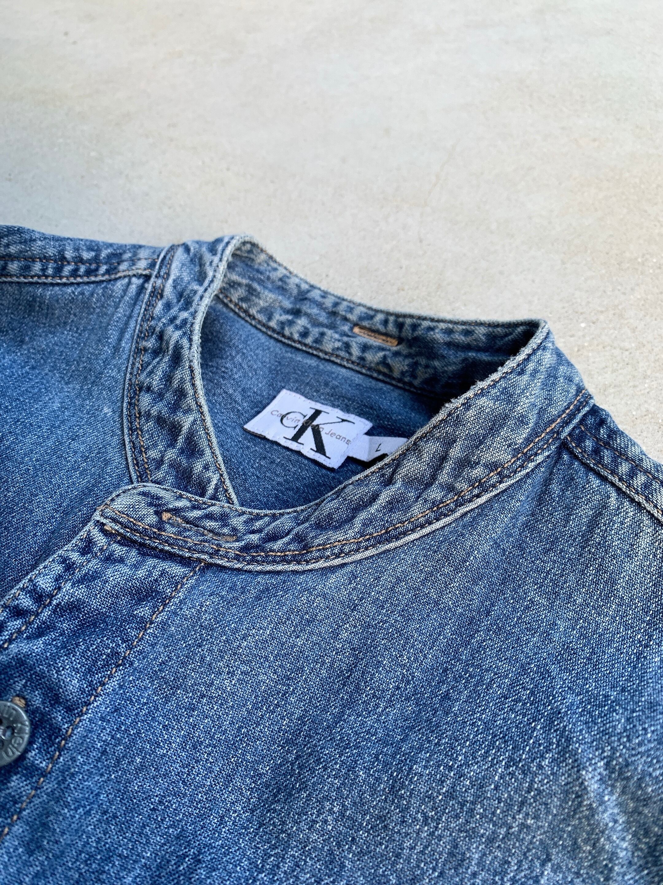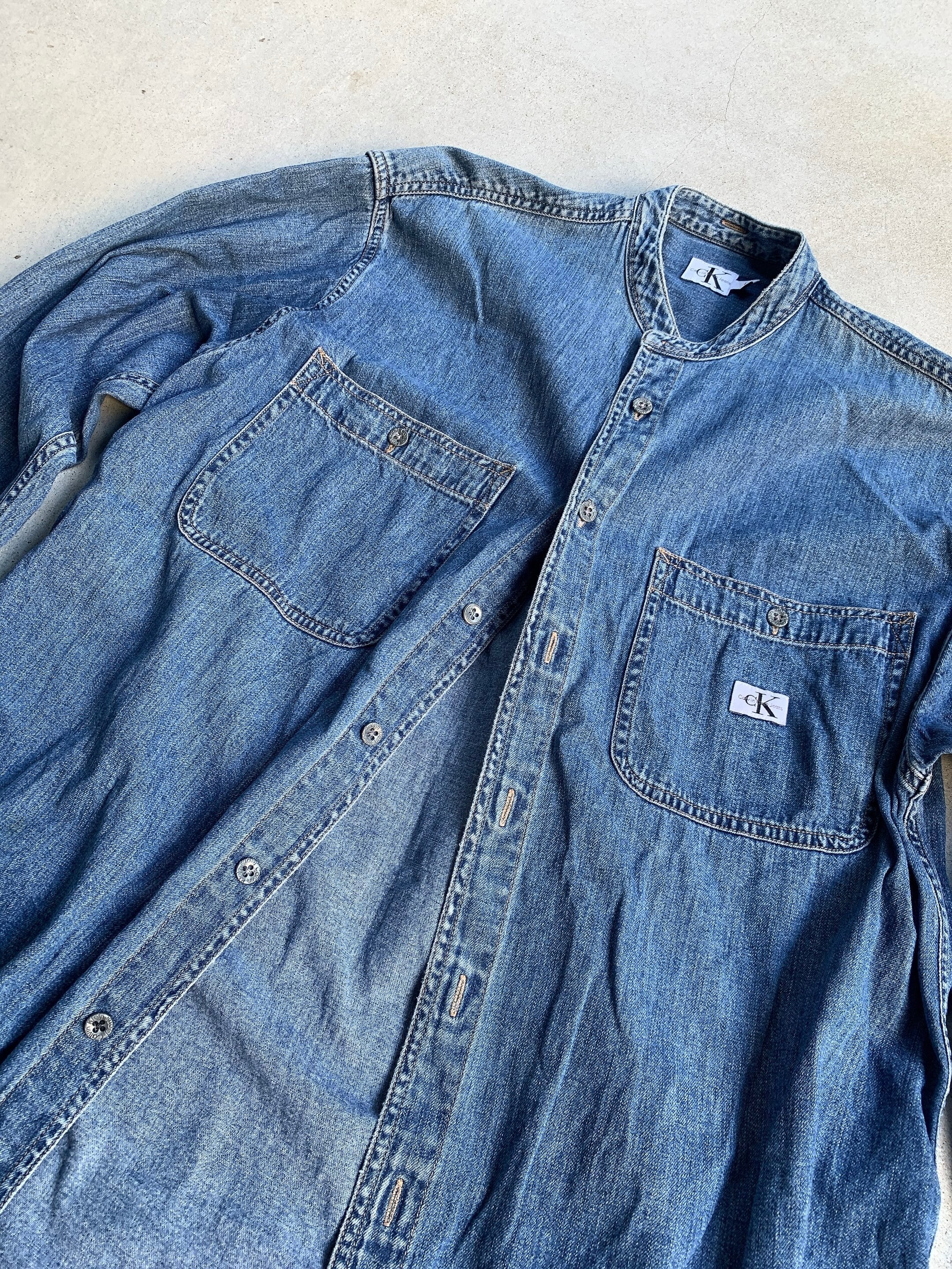 00年代頃のカルバンクライン製、ノーカラーのデニムシャツ。