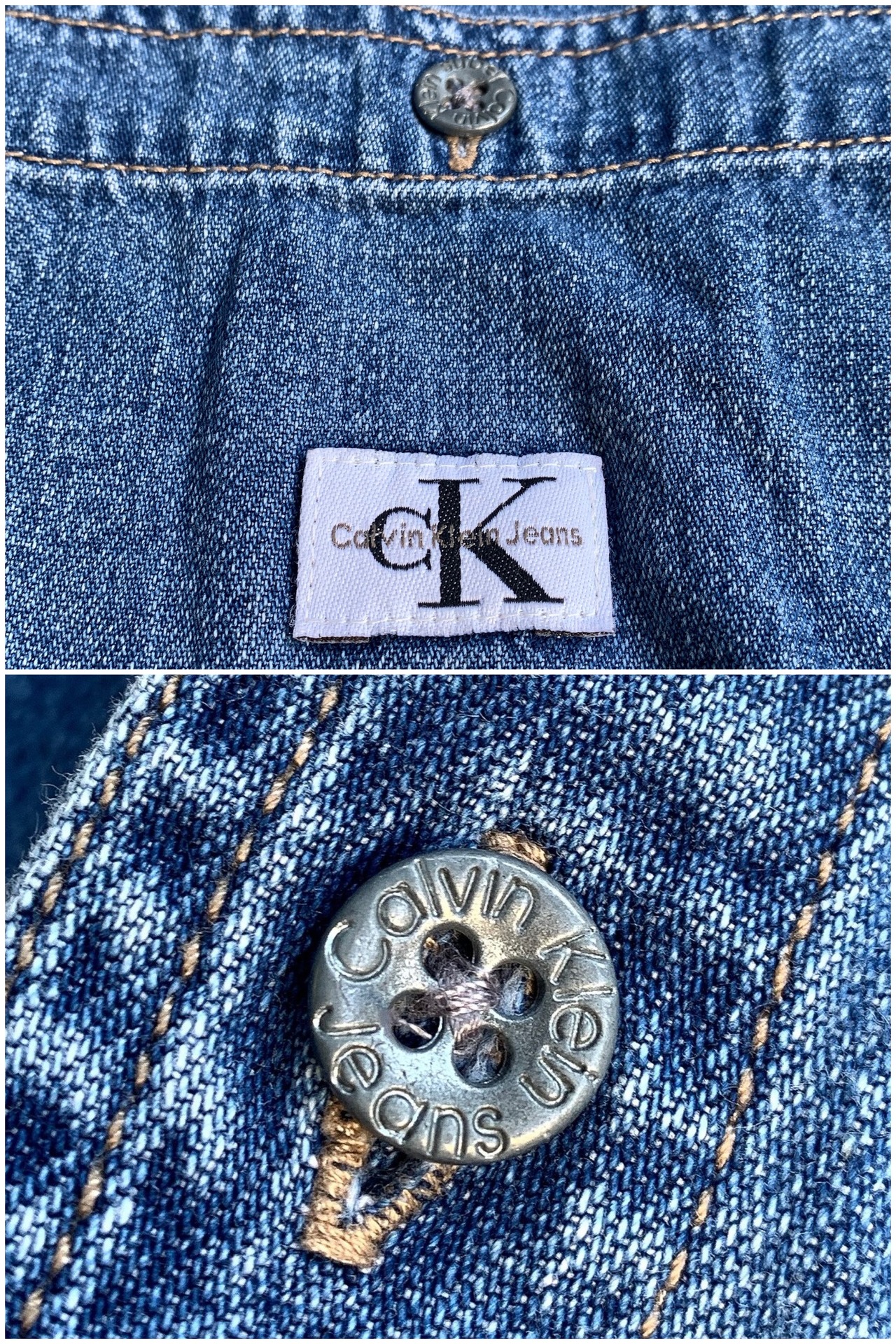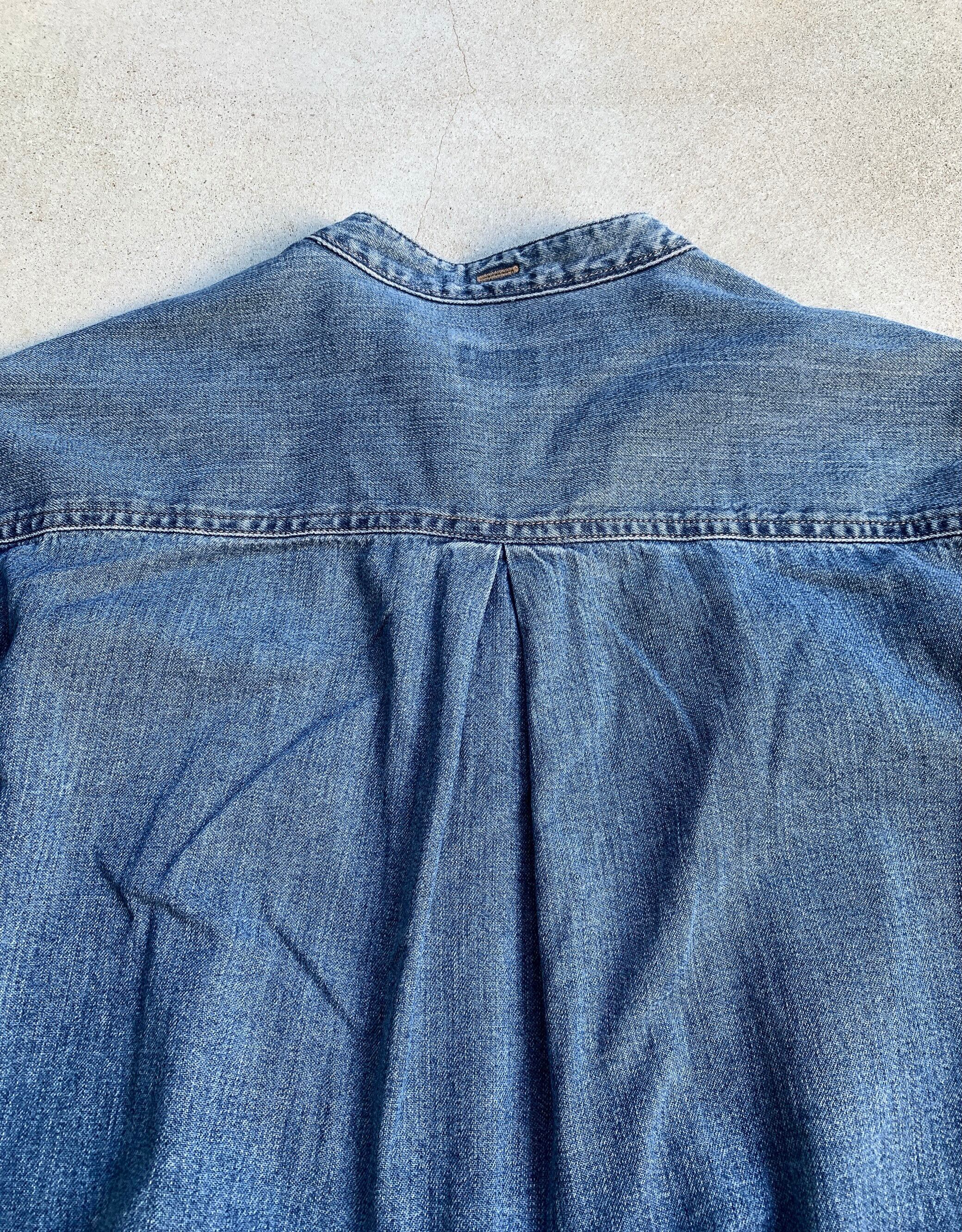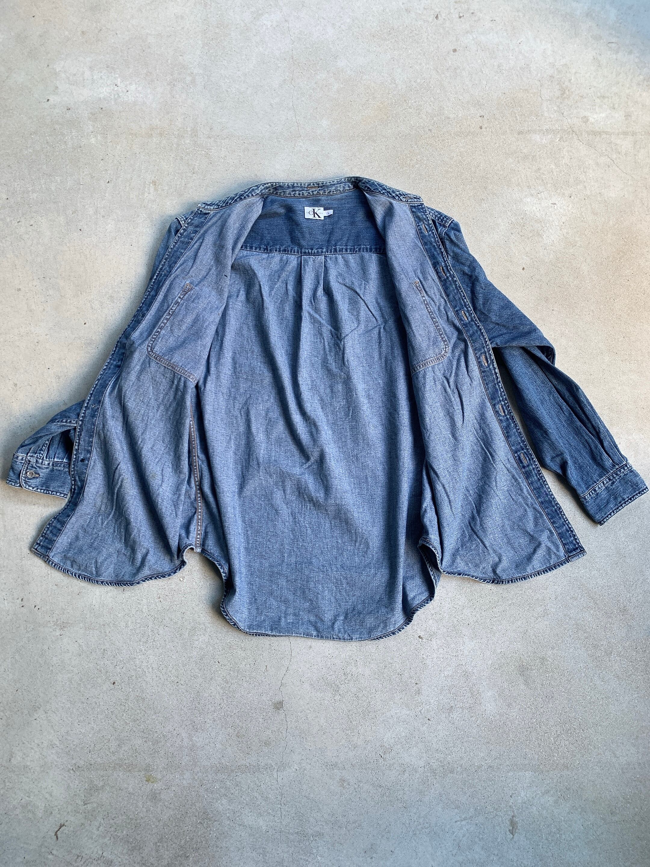 00年代頃のカルバンクライン製、ノーカラーのデニムシャツ。