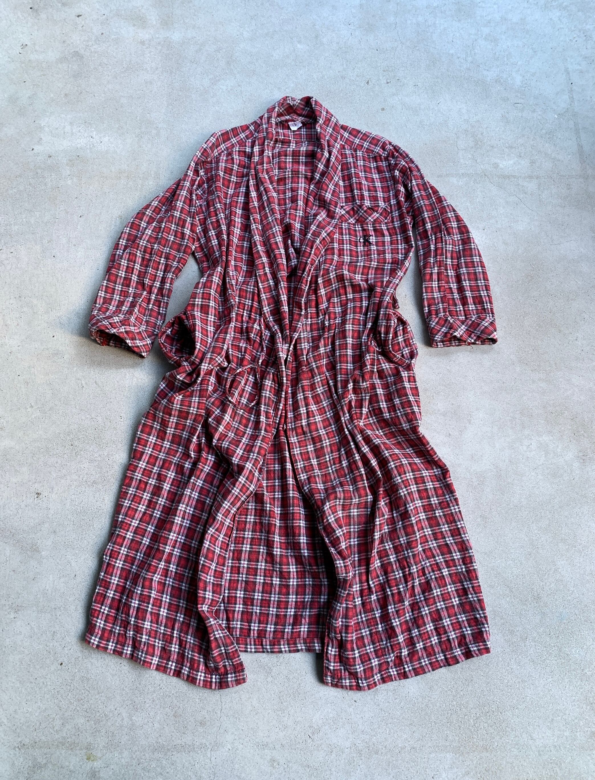 落ち着いた渋いチェック柄でロング丈のガウンは個性的でインパクトある1着。