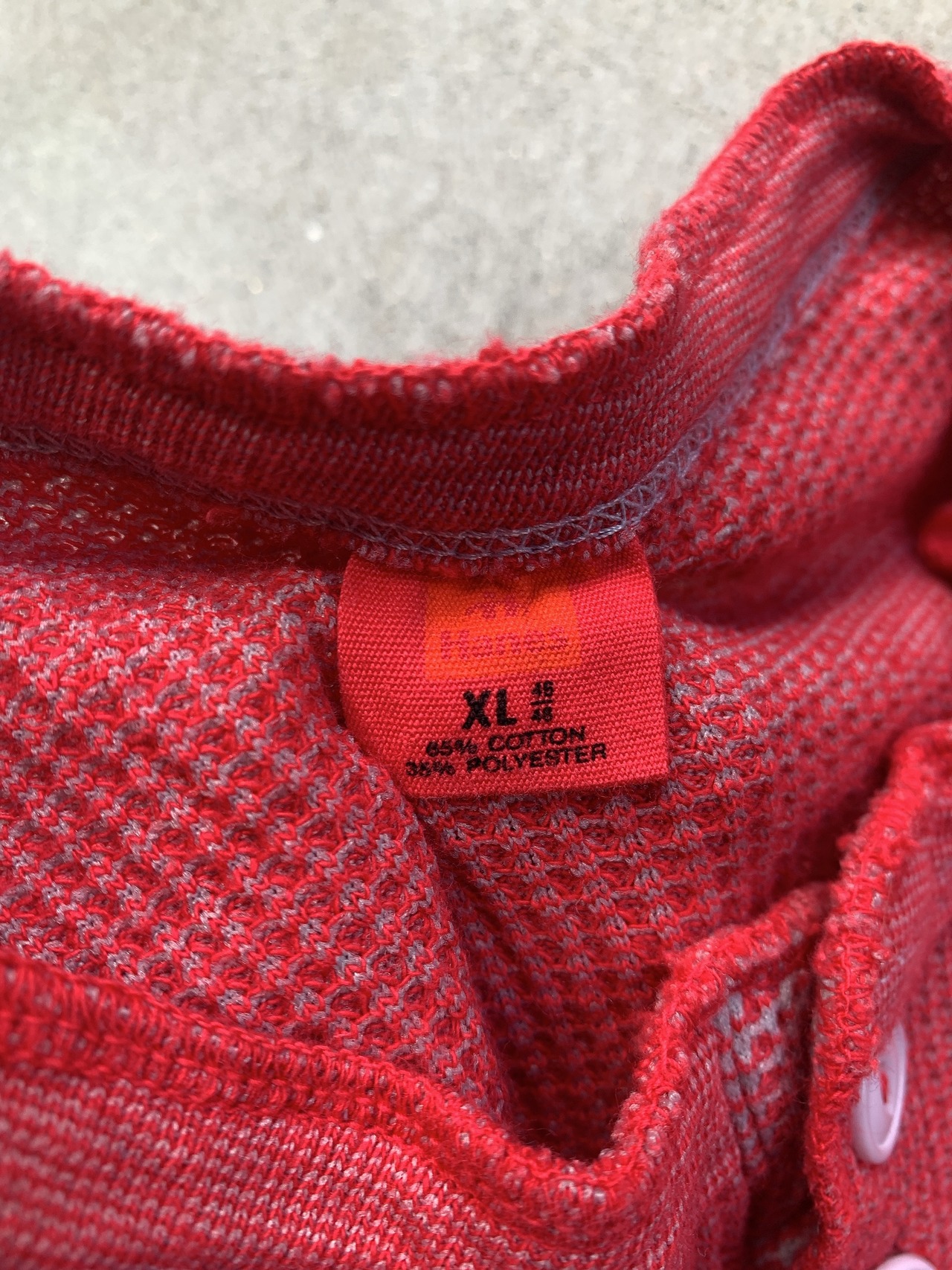 ほとんどのサーマルはこのヘンリーネックではなくクルーネック、いわゆる丸首の作り。