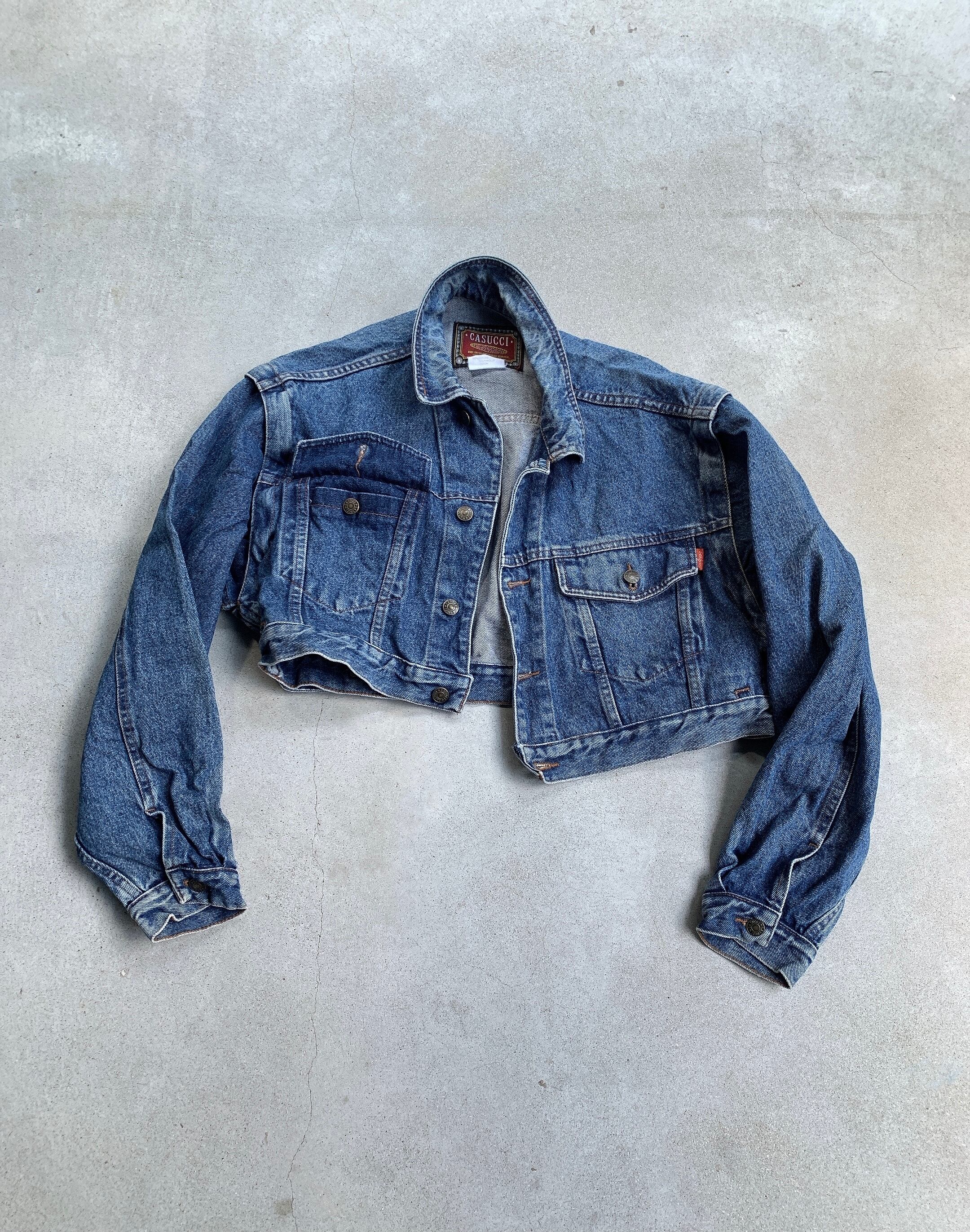 80年代頃のイタリア製、CASUCCIのショートレングスのギミックデニムジャケット。