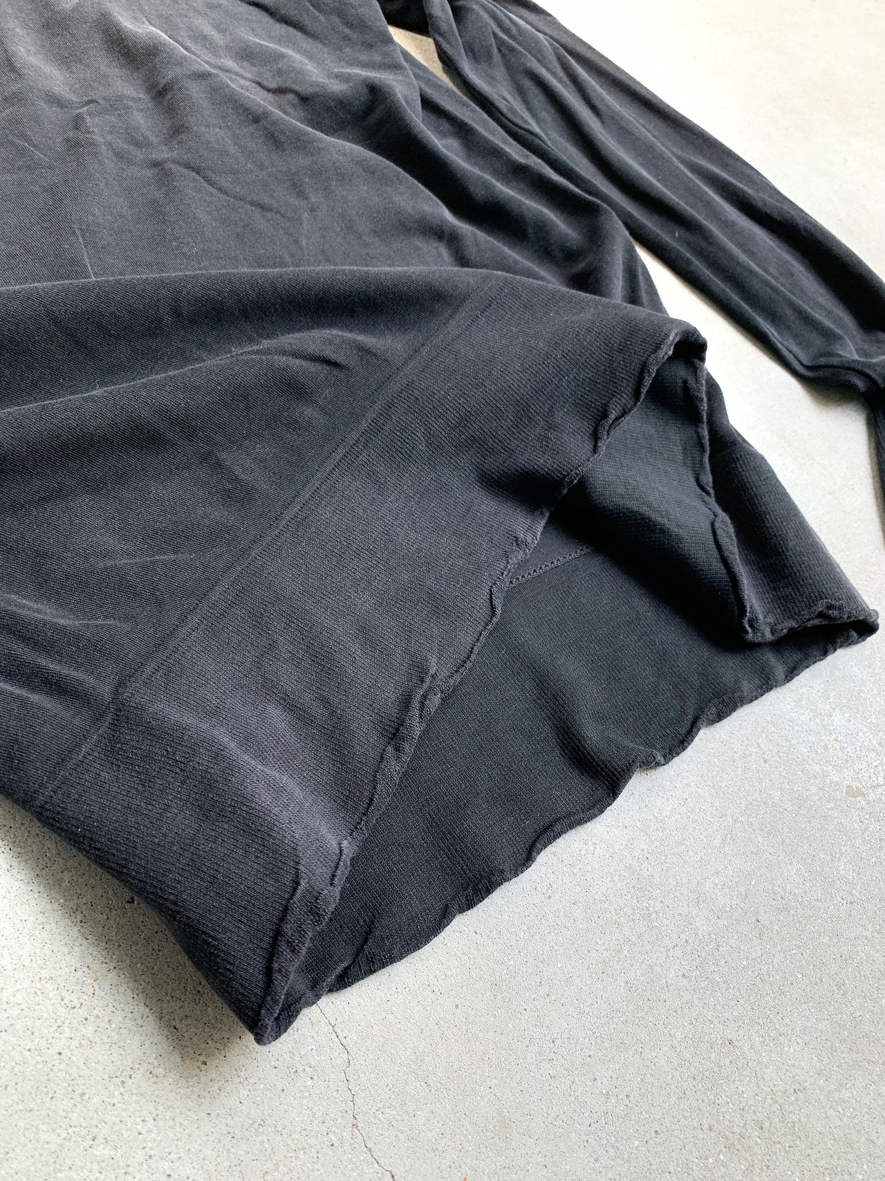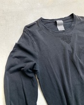 首元のダメージ加工や首リブ、袖リブ、胴リブもねじれ加工が施された1着。