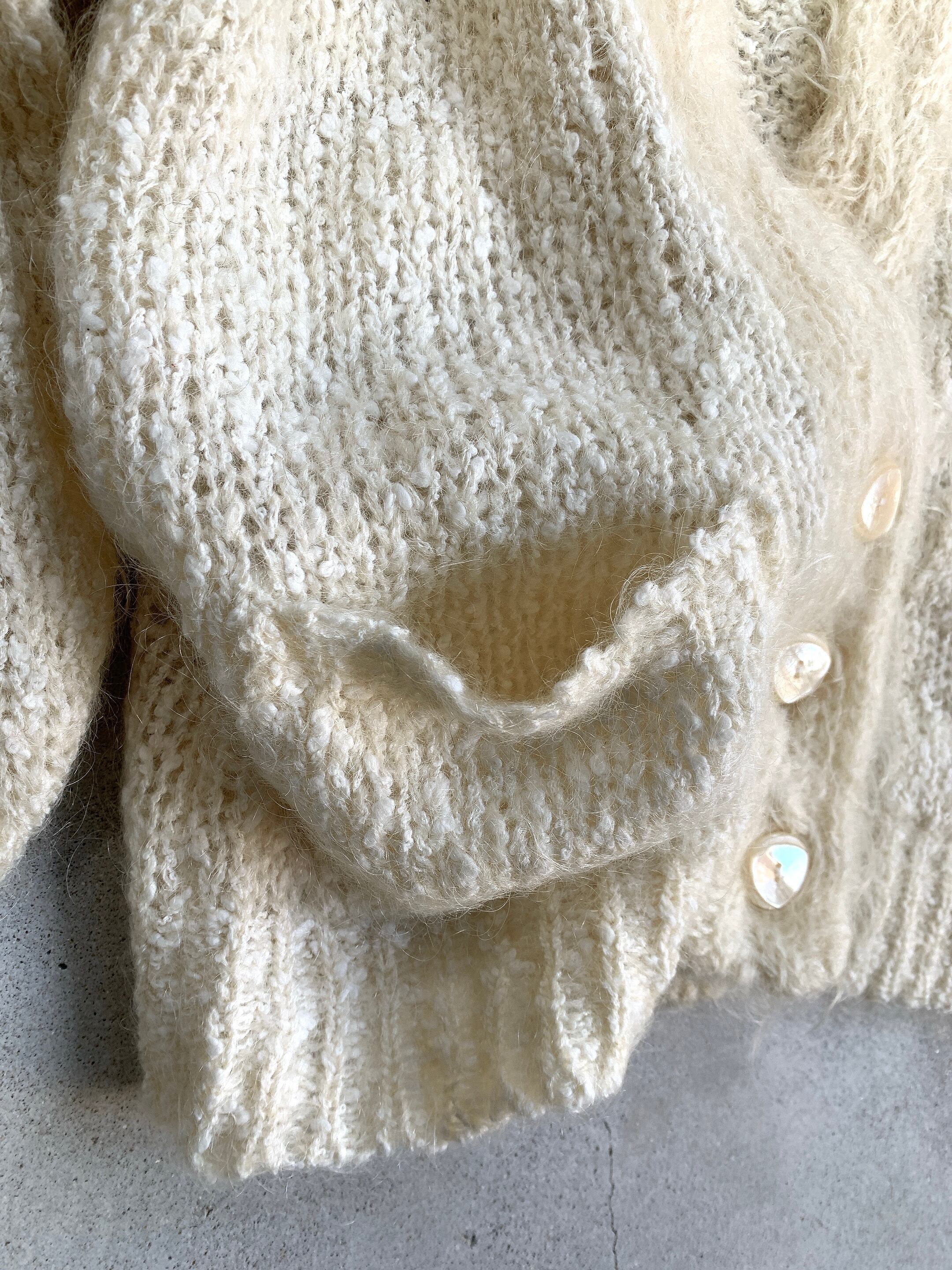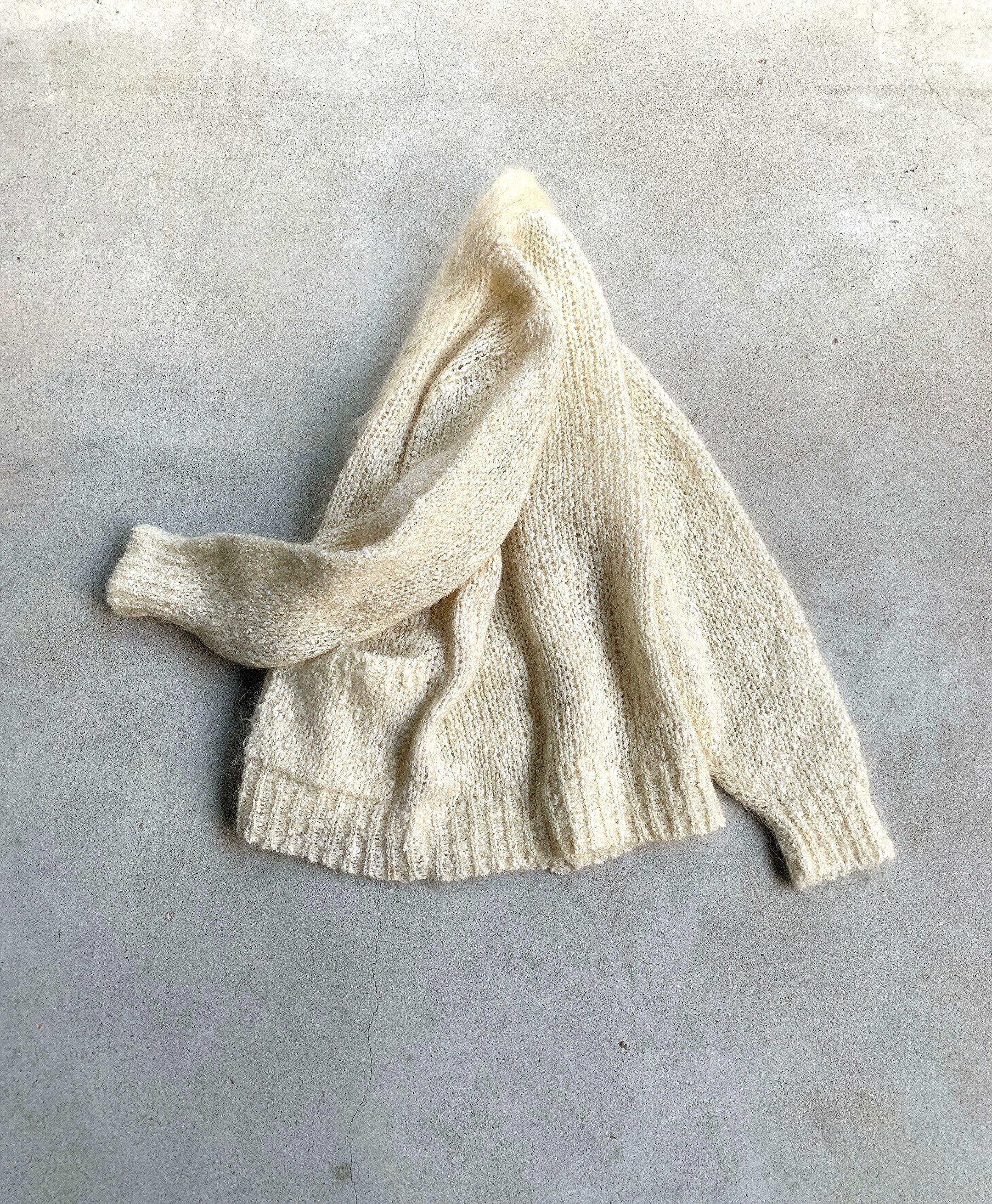 通常のプルオーバーの被りタイプではなく前が開くカーディガンはレイヤードも楽しめて着脱も楽チン。
