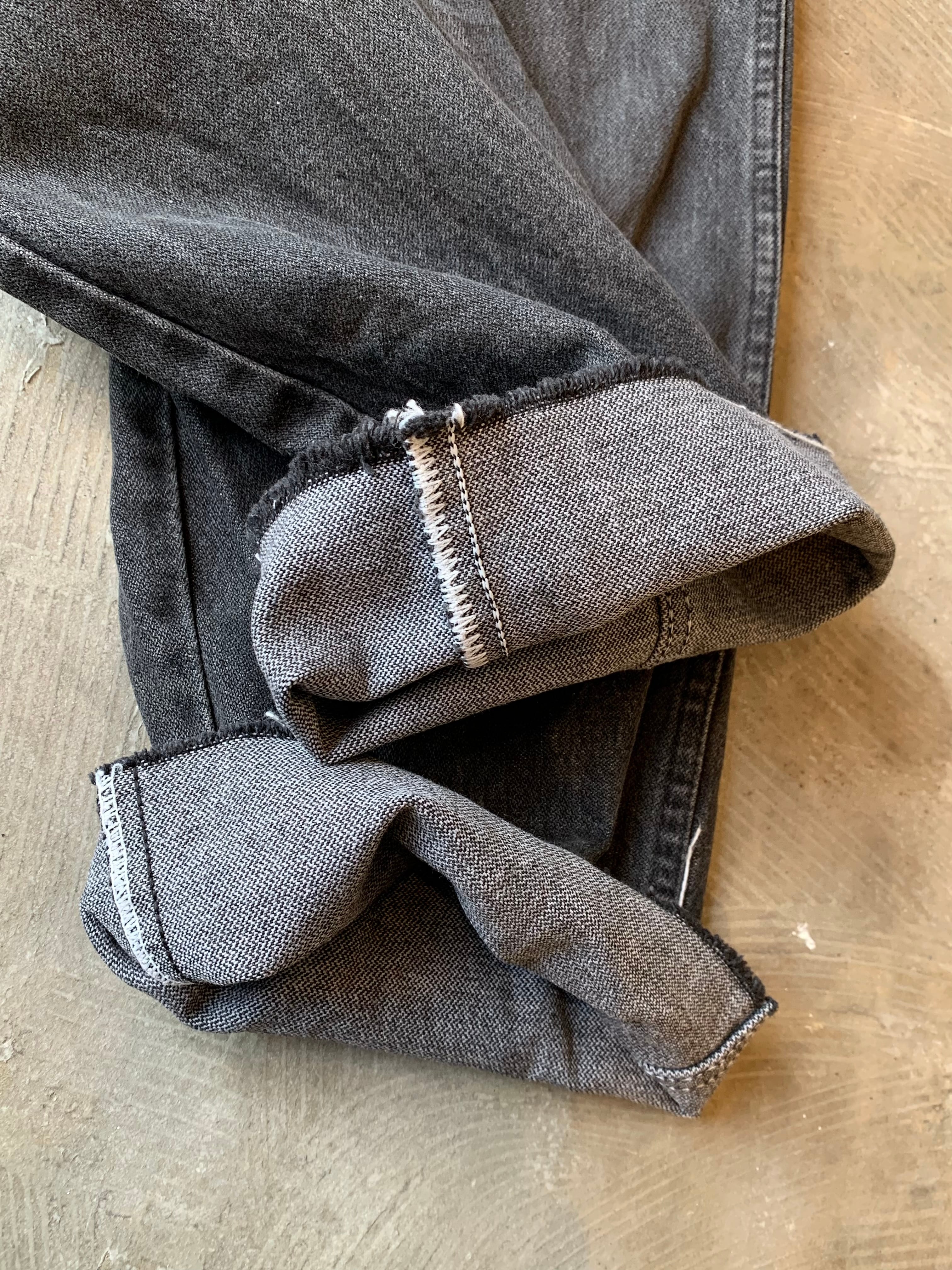 ブラックデニム特有の白っぽい色落ちがクールで綺麗なシルエットの1本。