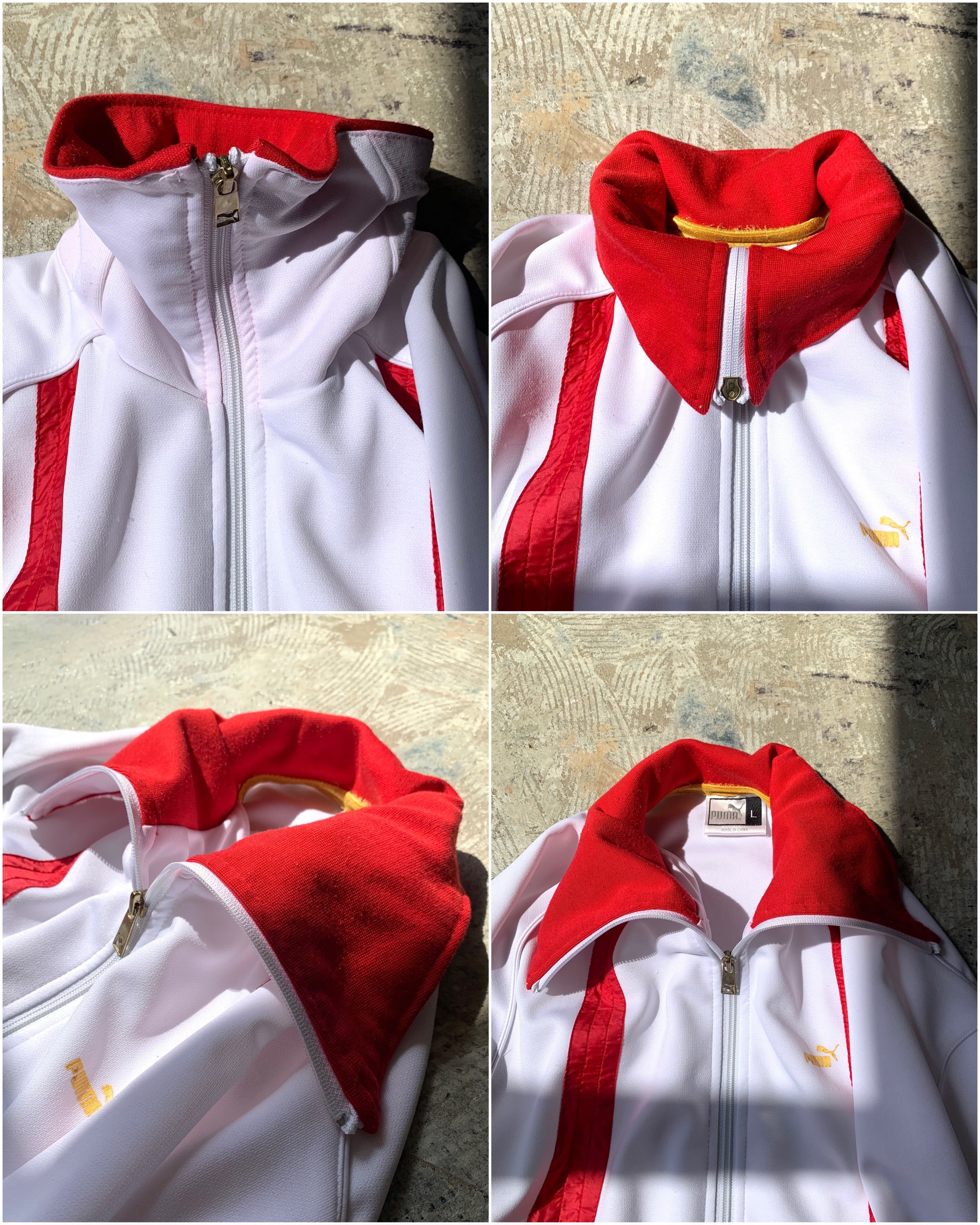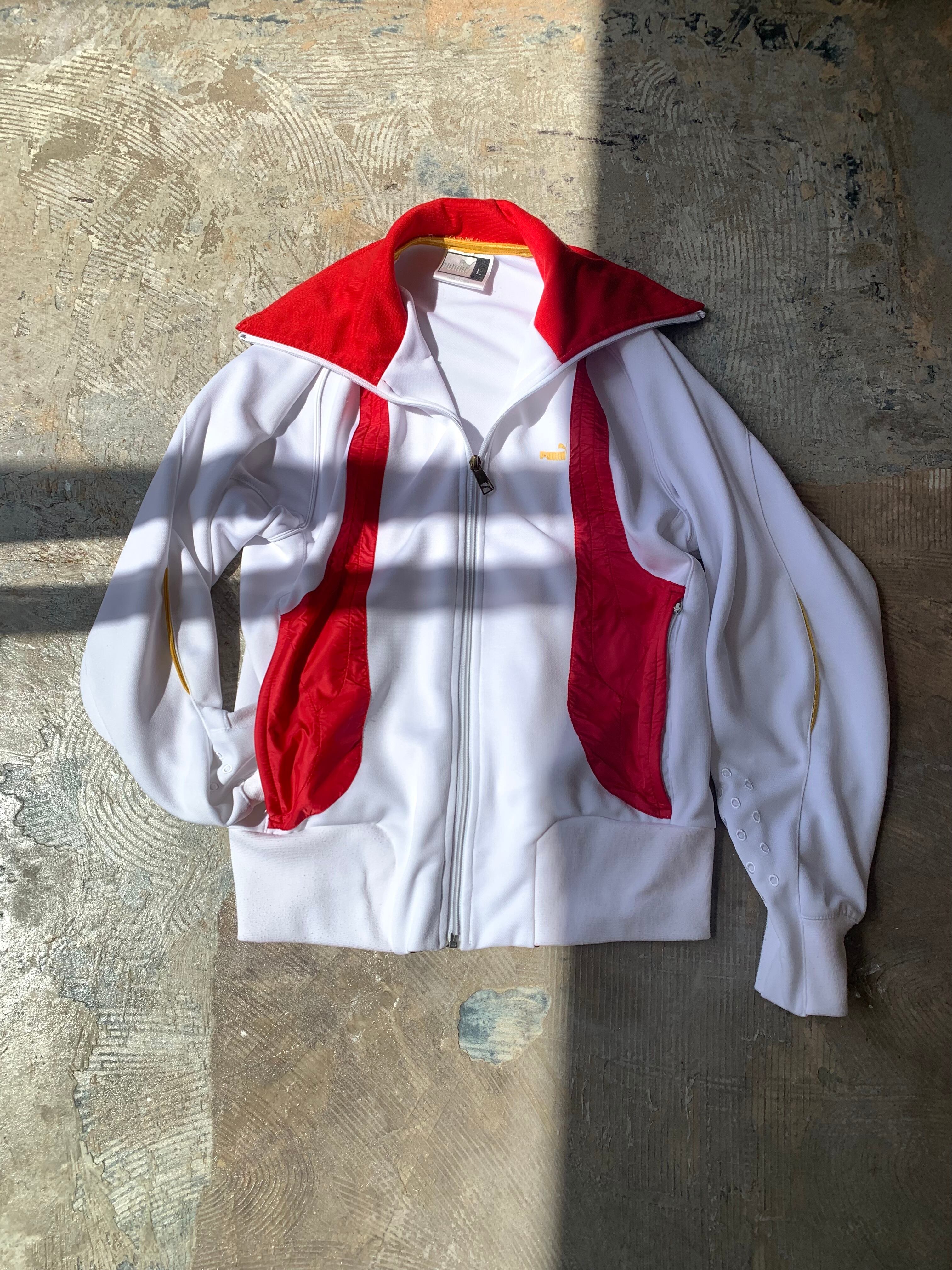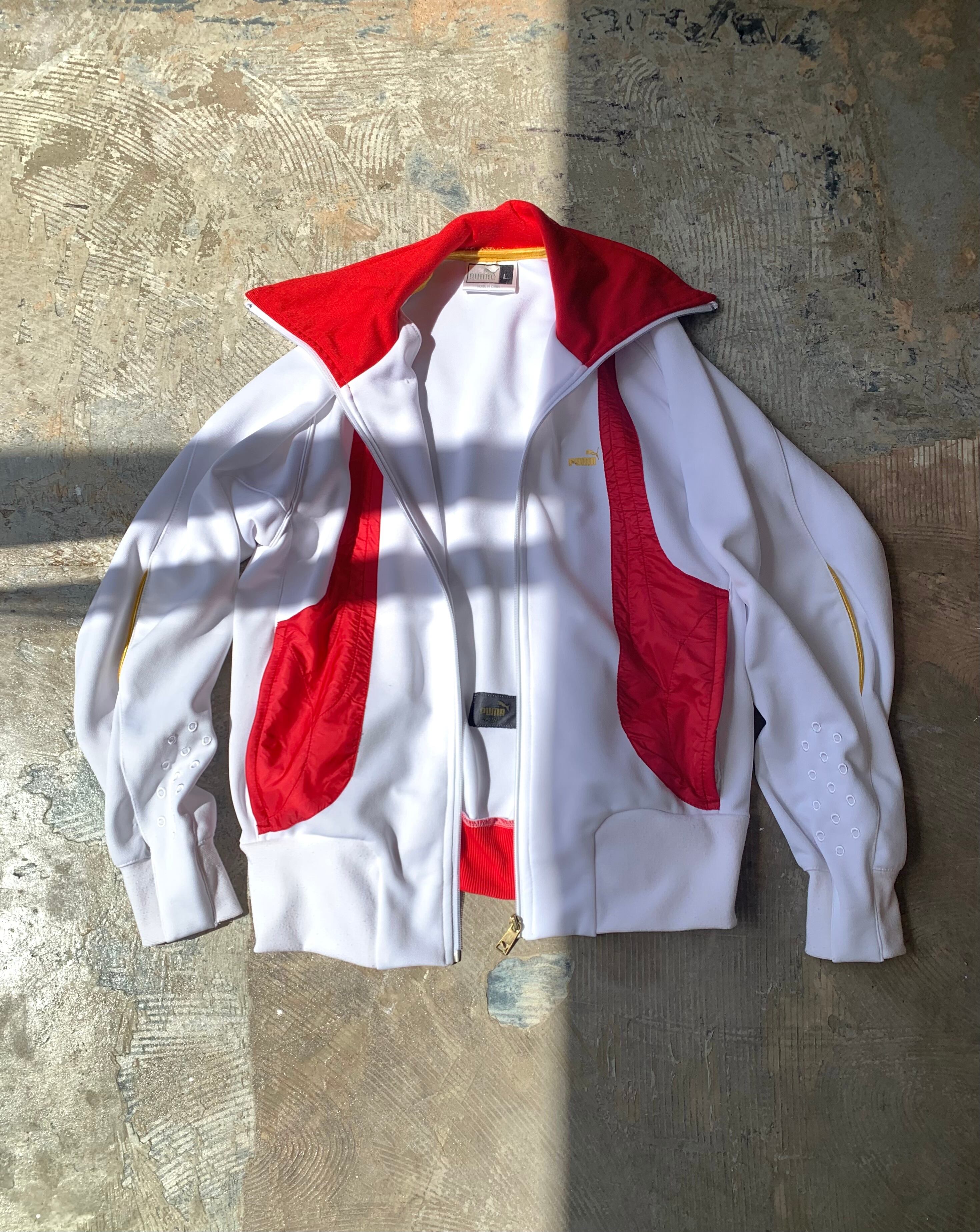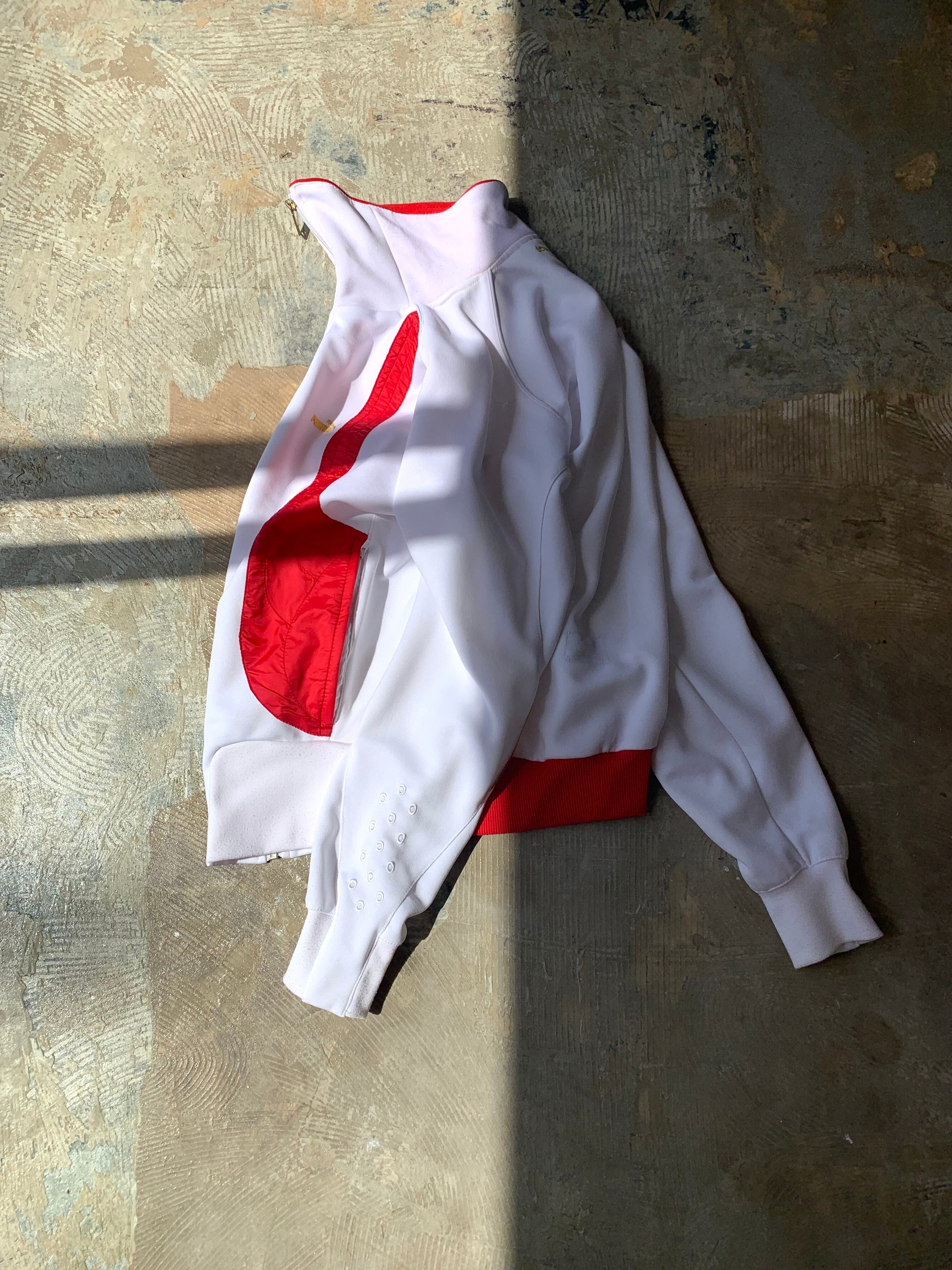 ホワイト&レッドの切り替えし、フロントのキルティングのデザイン、両袖のデザインなど一癖ある1着でインパクトあります‼︎