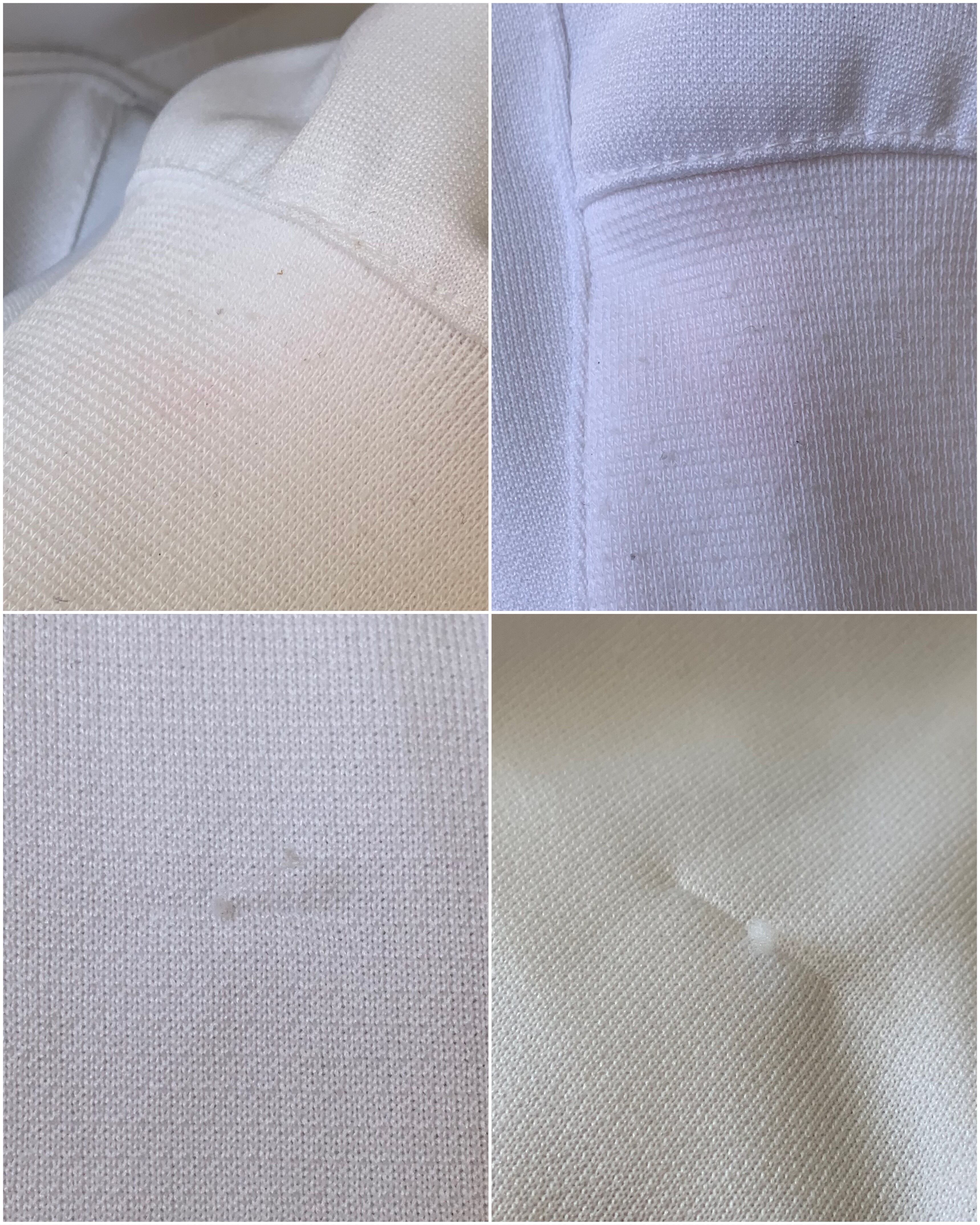 ユーズドで目立たない赤の色移りがあります。表面に多少の生地のほつれがありますが特に気になる汚れやダメージはありません。