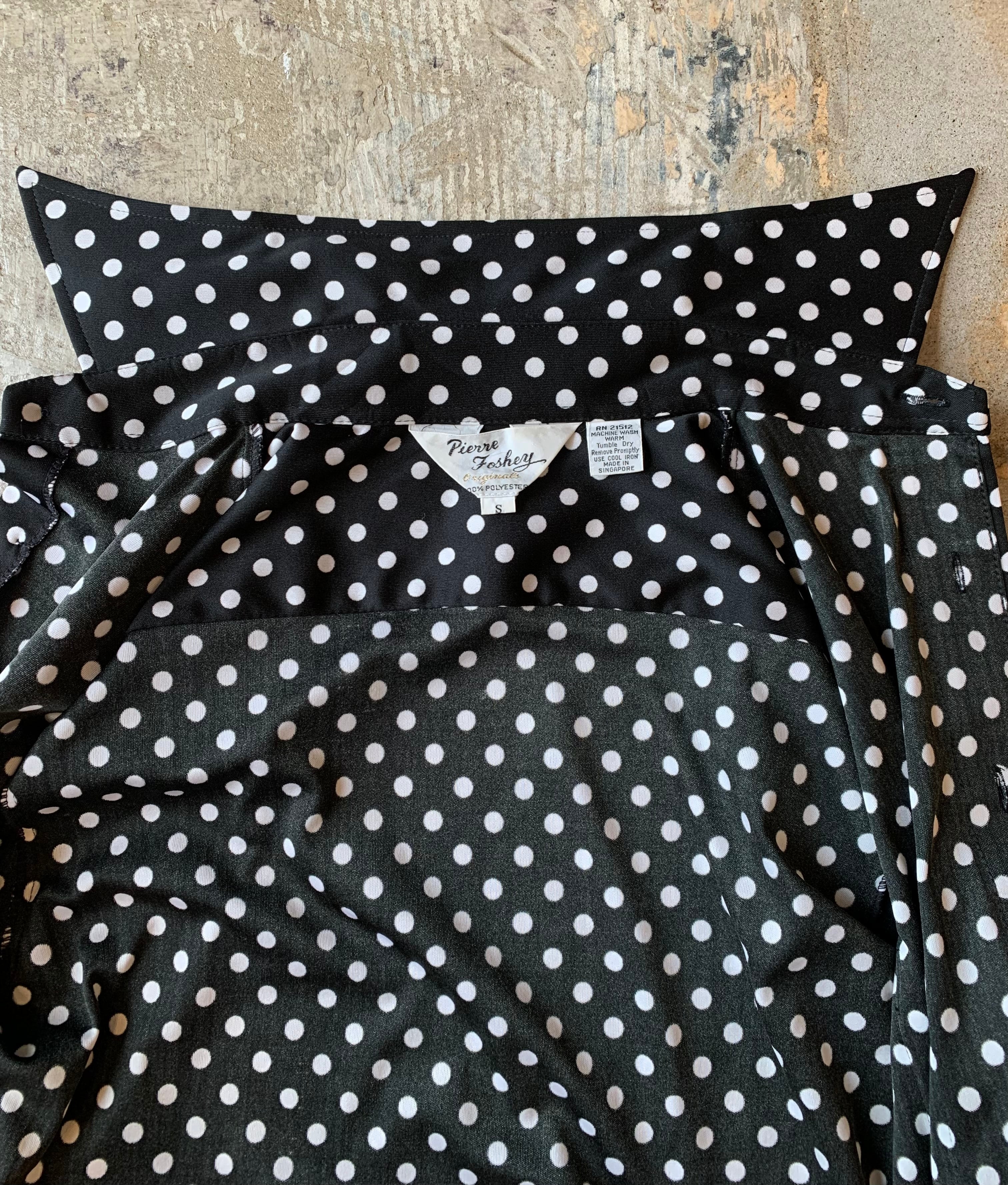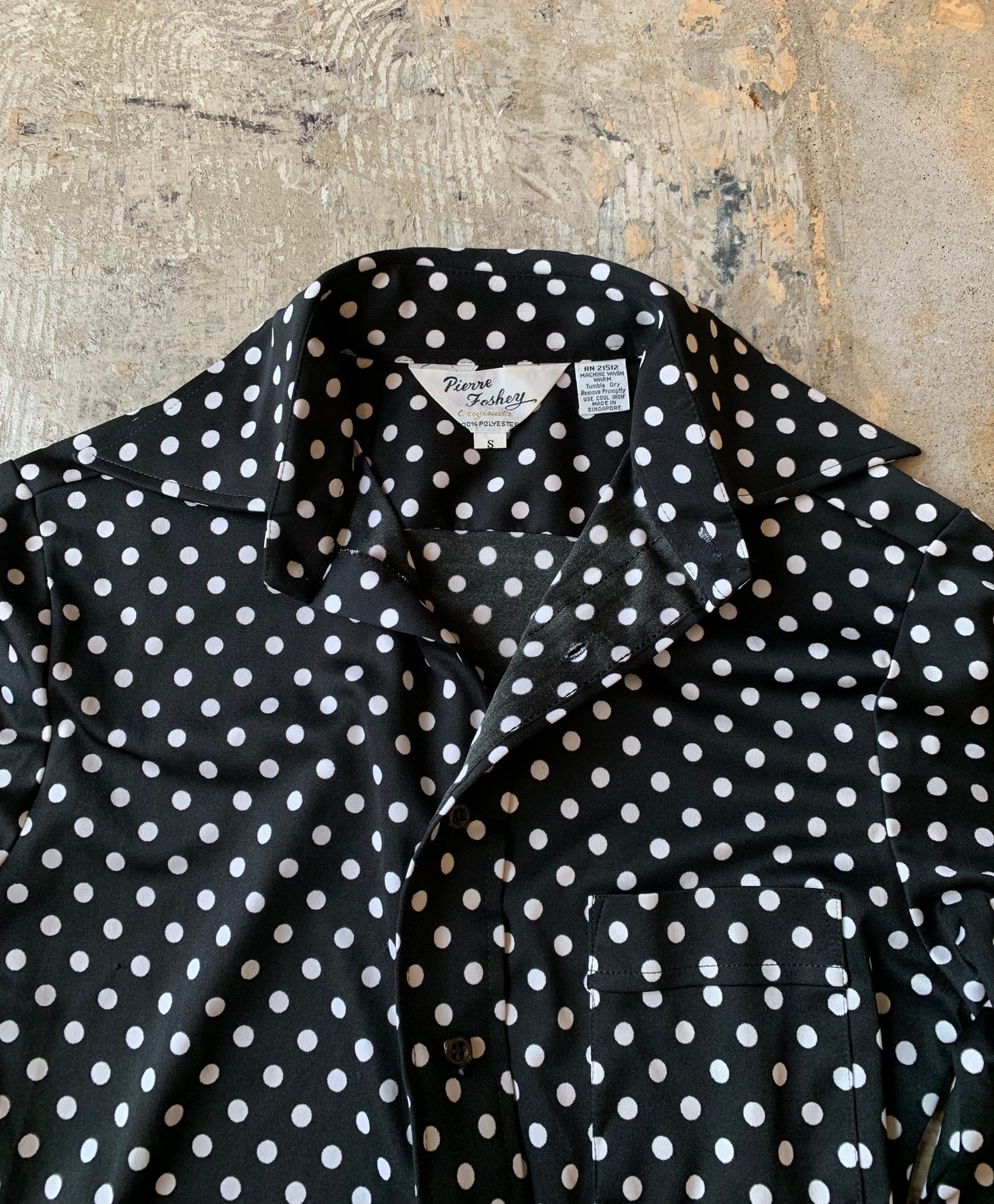 1970's "pierre foshey" black base‼︎ dot pattern‼︎ poly shirt