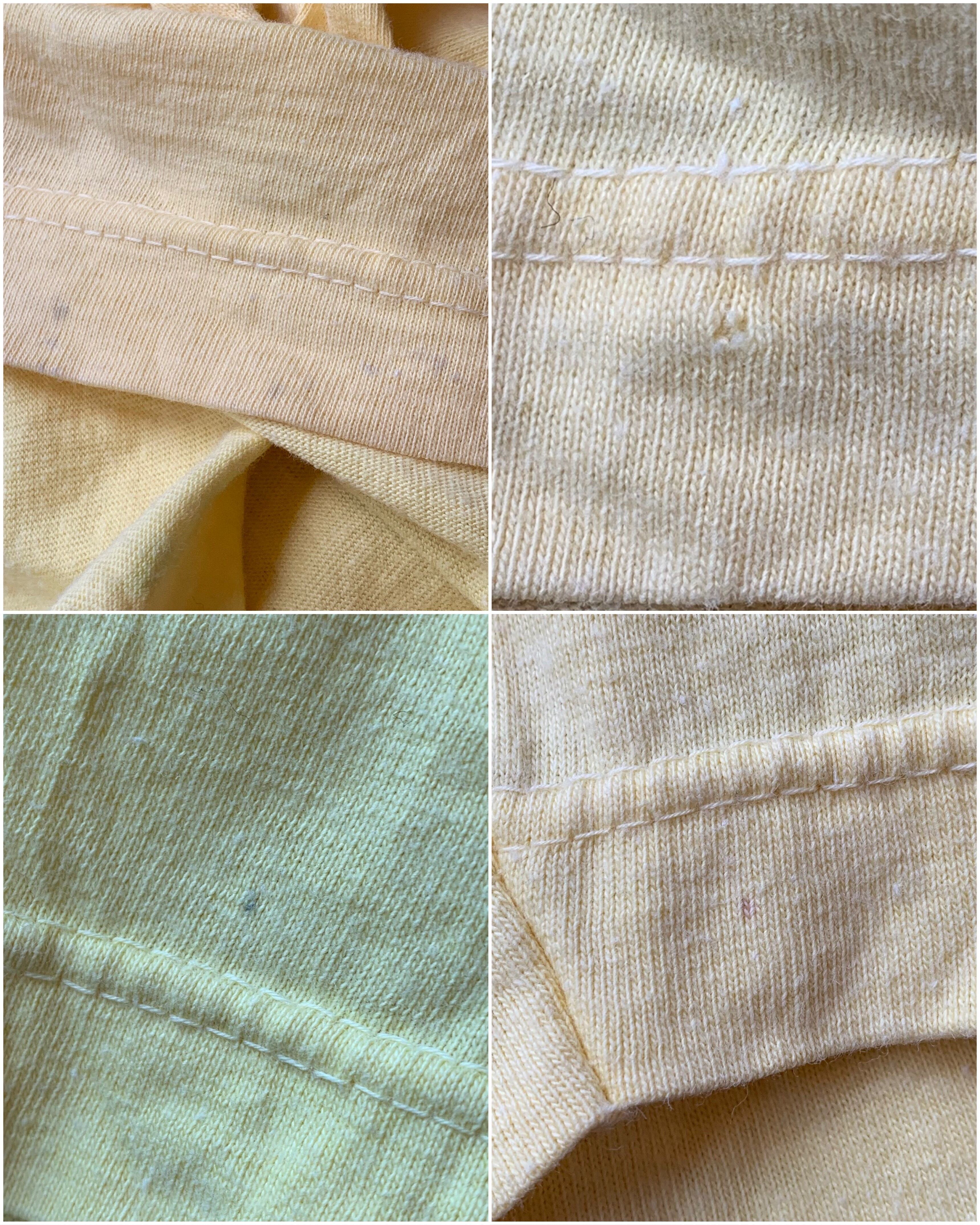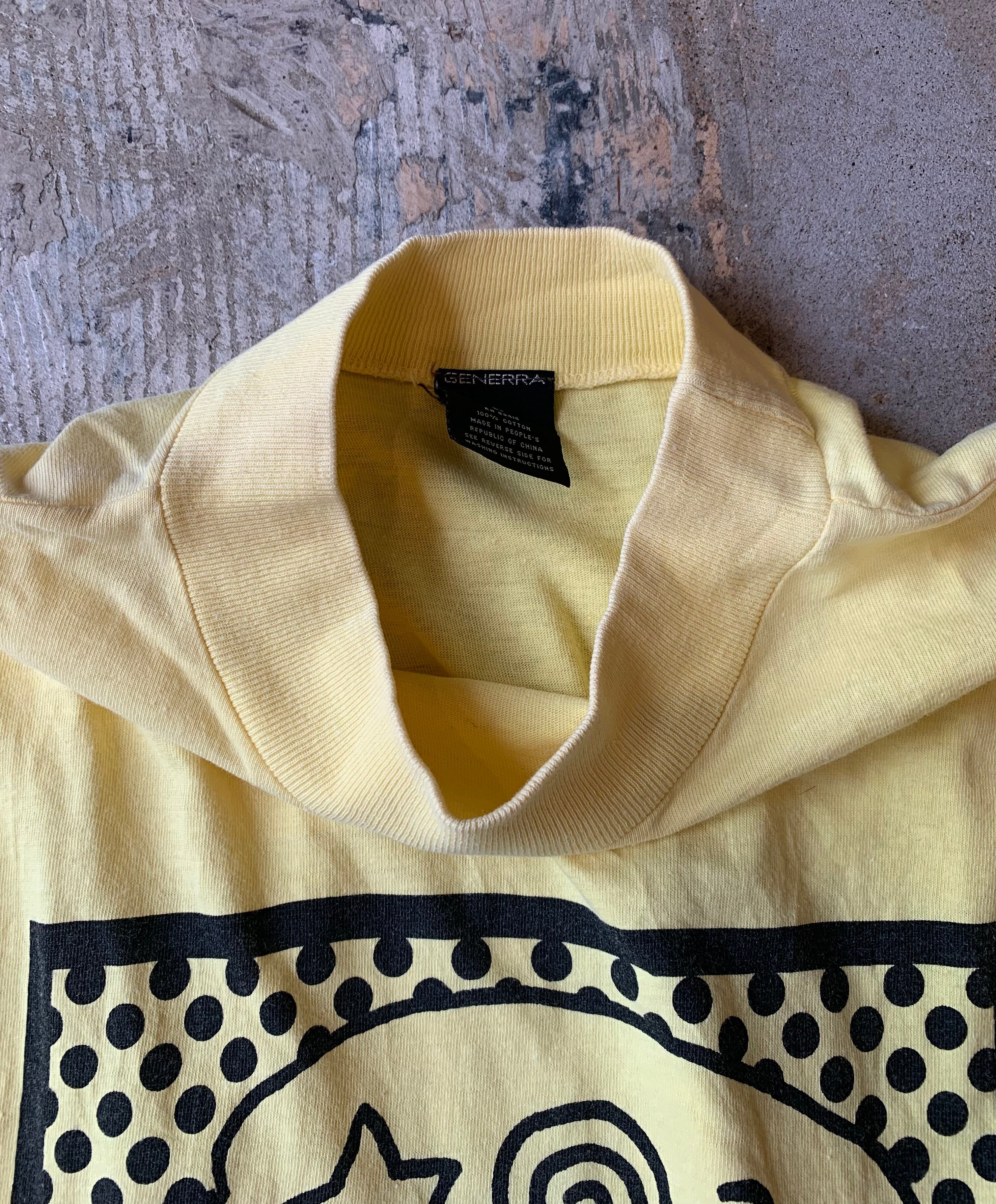 ハイネック気味なリブ高でイエローカラー、両面プリントがオールド感あります。