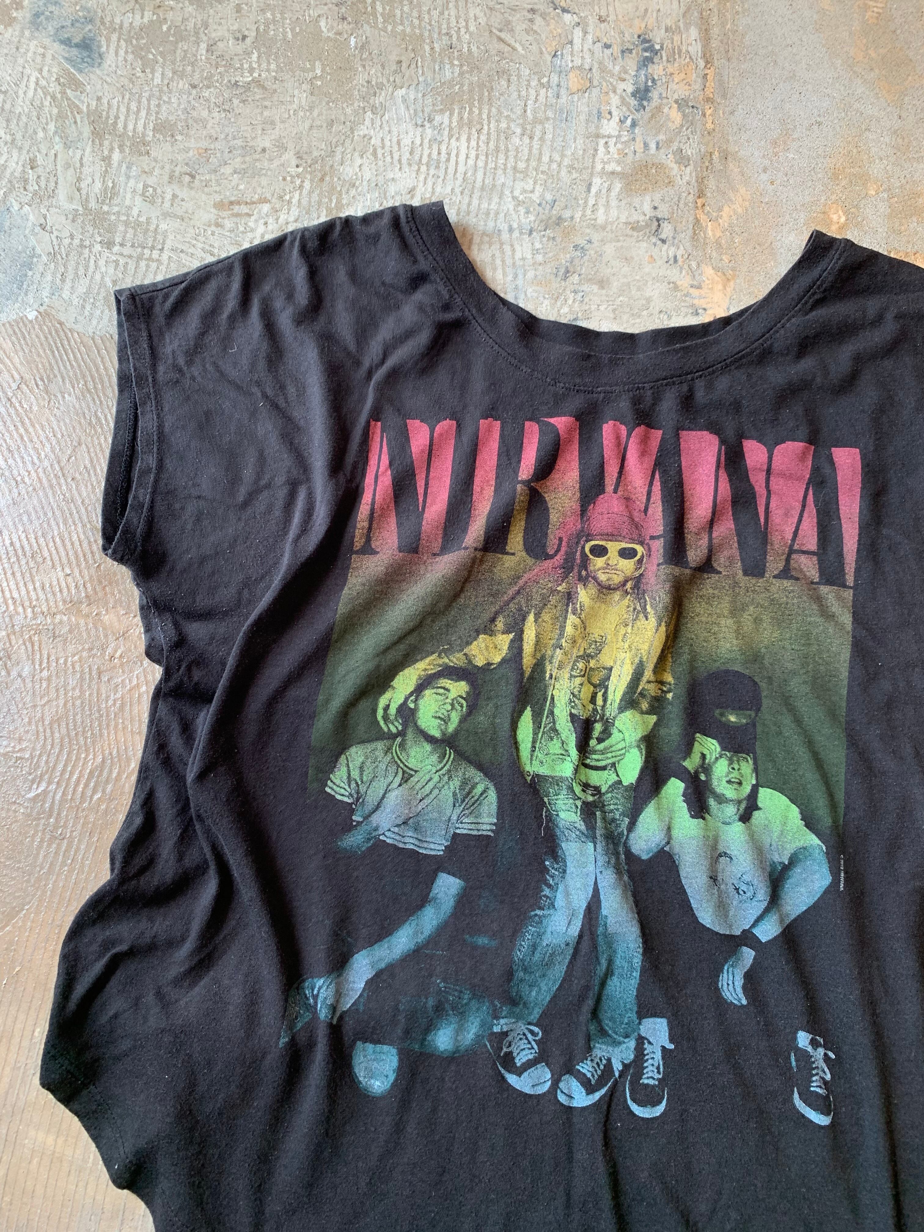 ニルバーナの2012年コピーライト入りのフォトプリント、ノースリーブTシャツ。