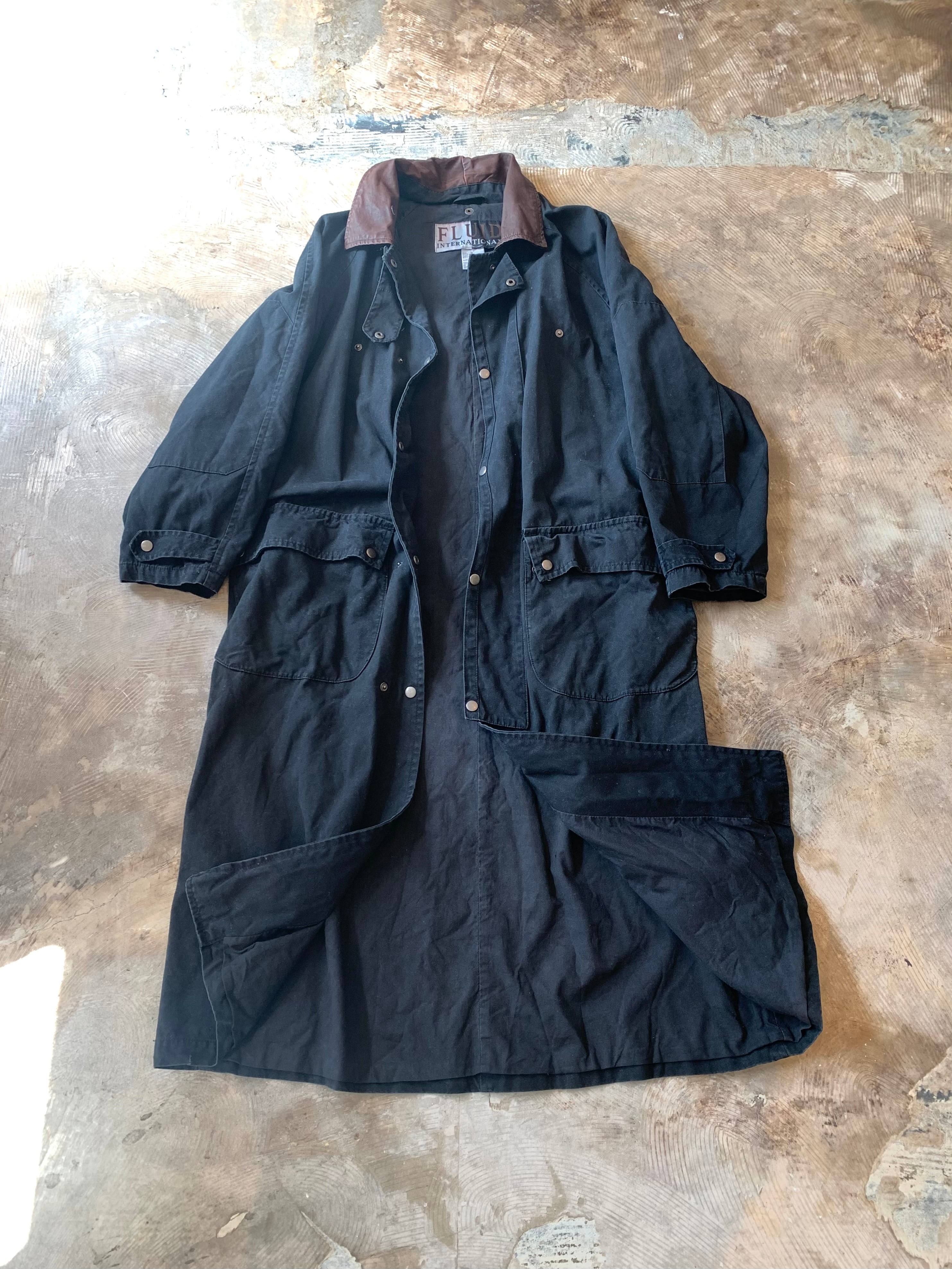 80年代頃のFLUID INTERNATIONAL製、ブラックコットンのダスターコート。