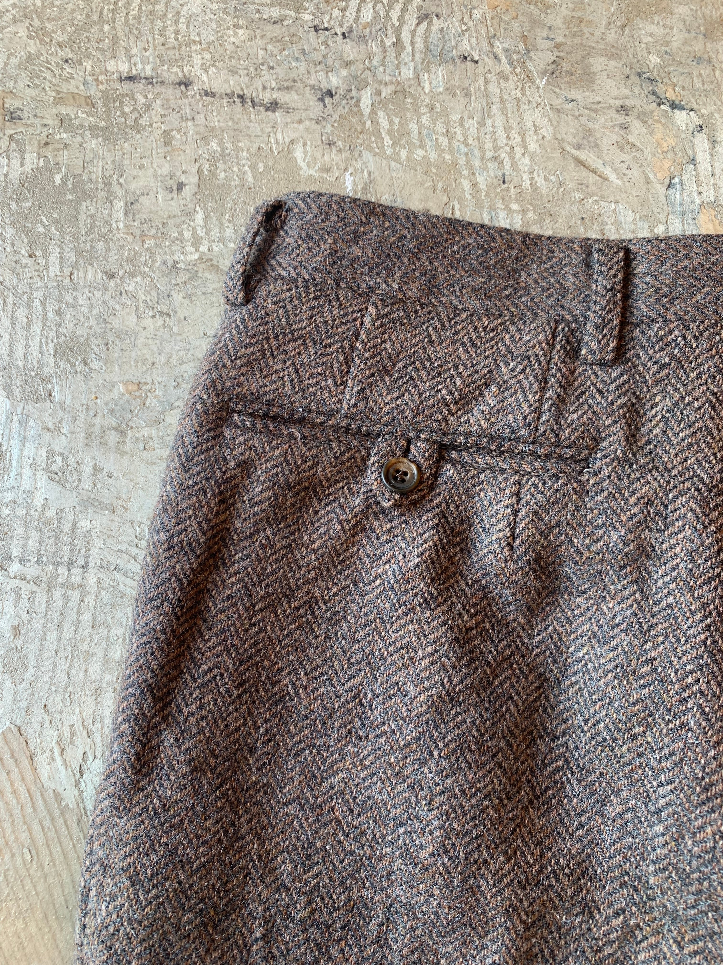 90~00年代頃のENGLAND製、NETHERFIELD SHETLANDのヘリンボーン柄のウールパンツ。