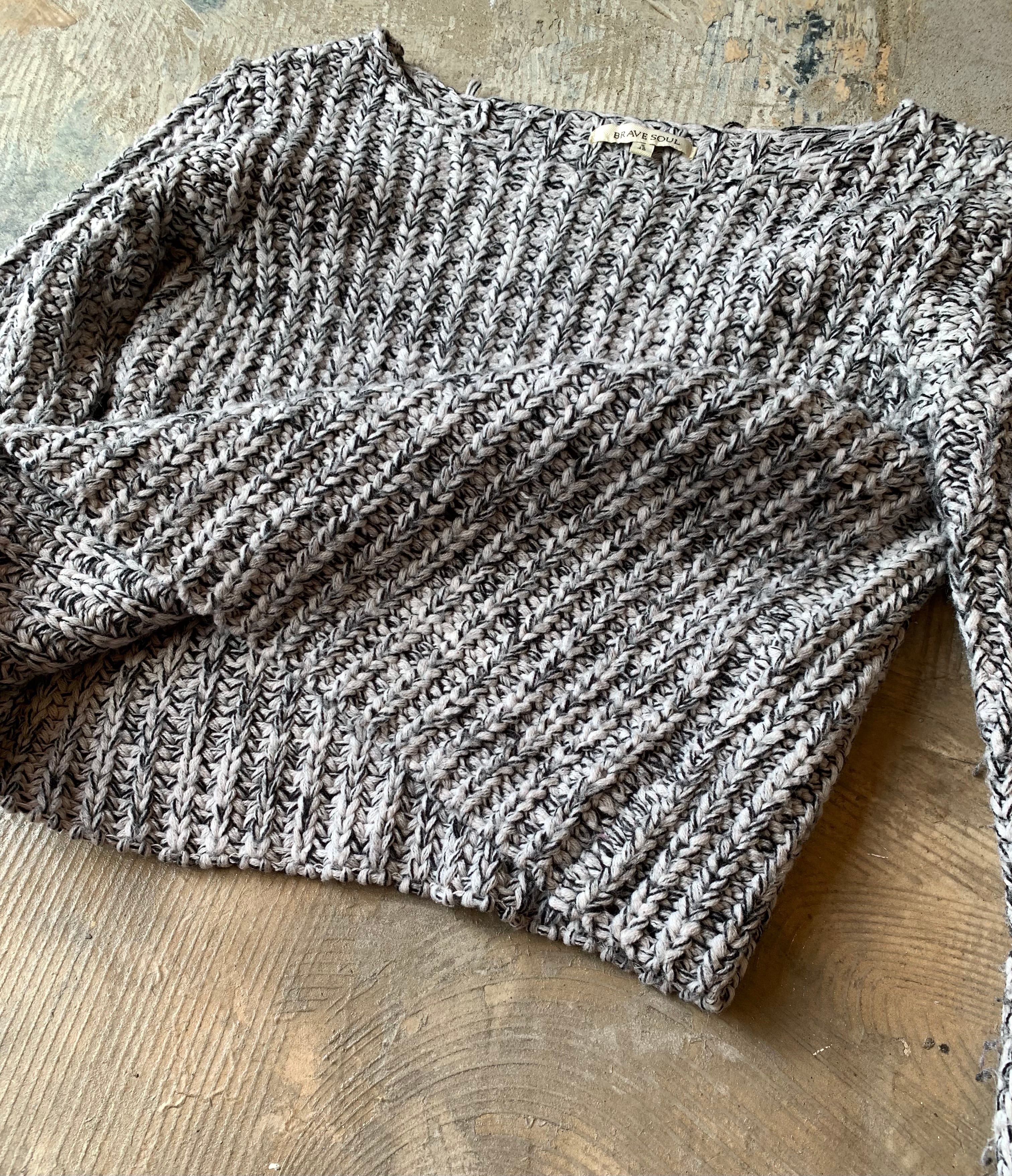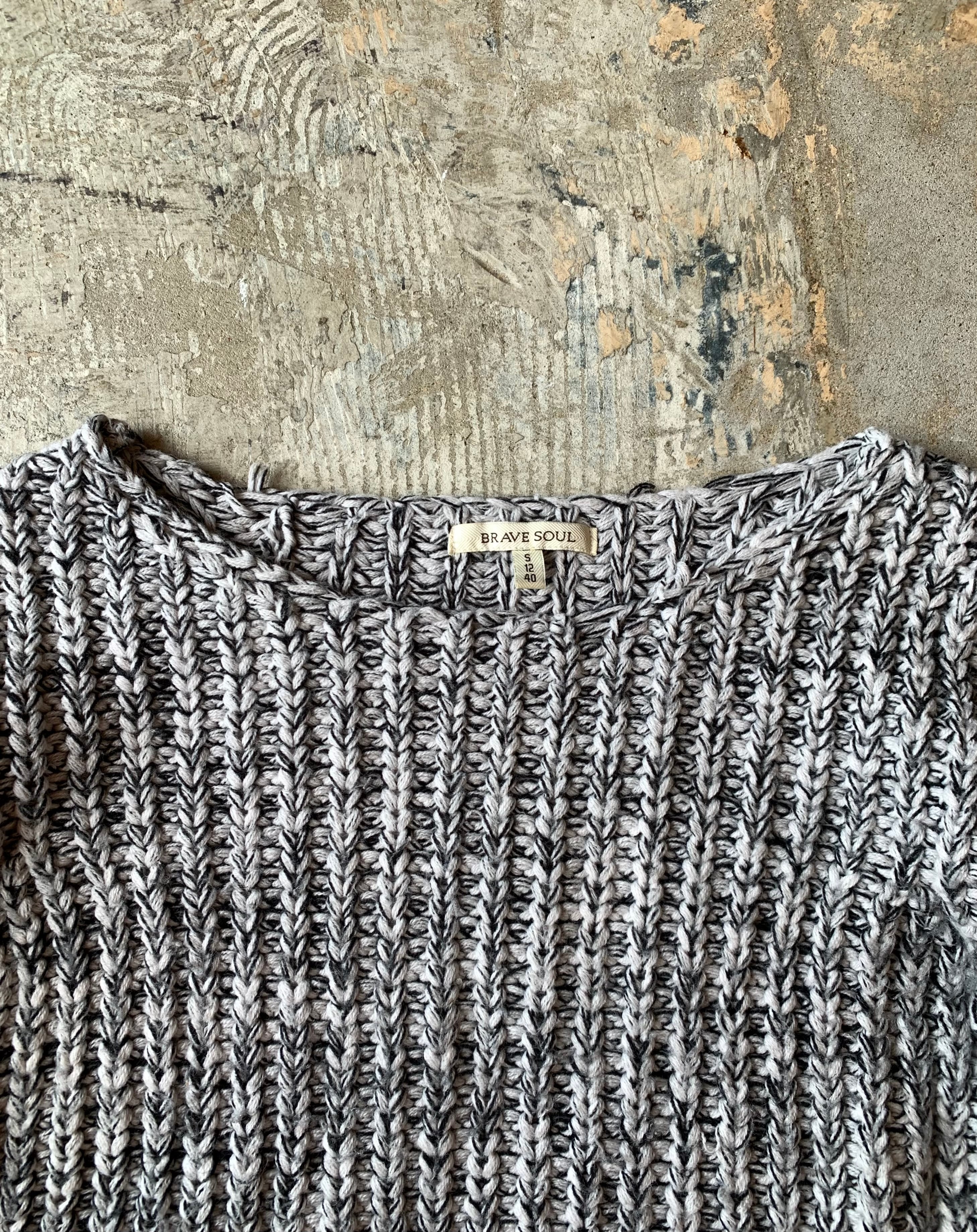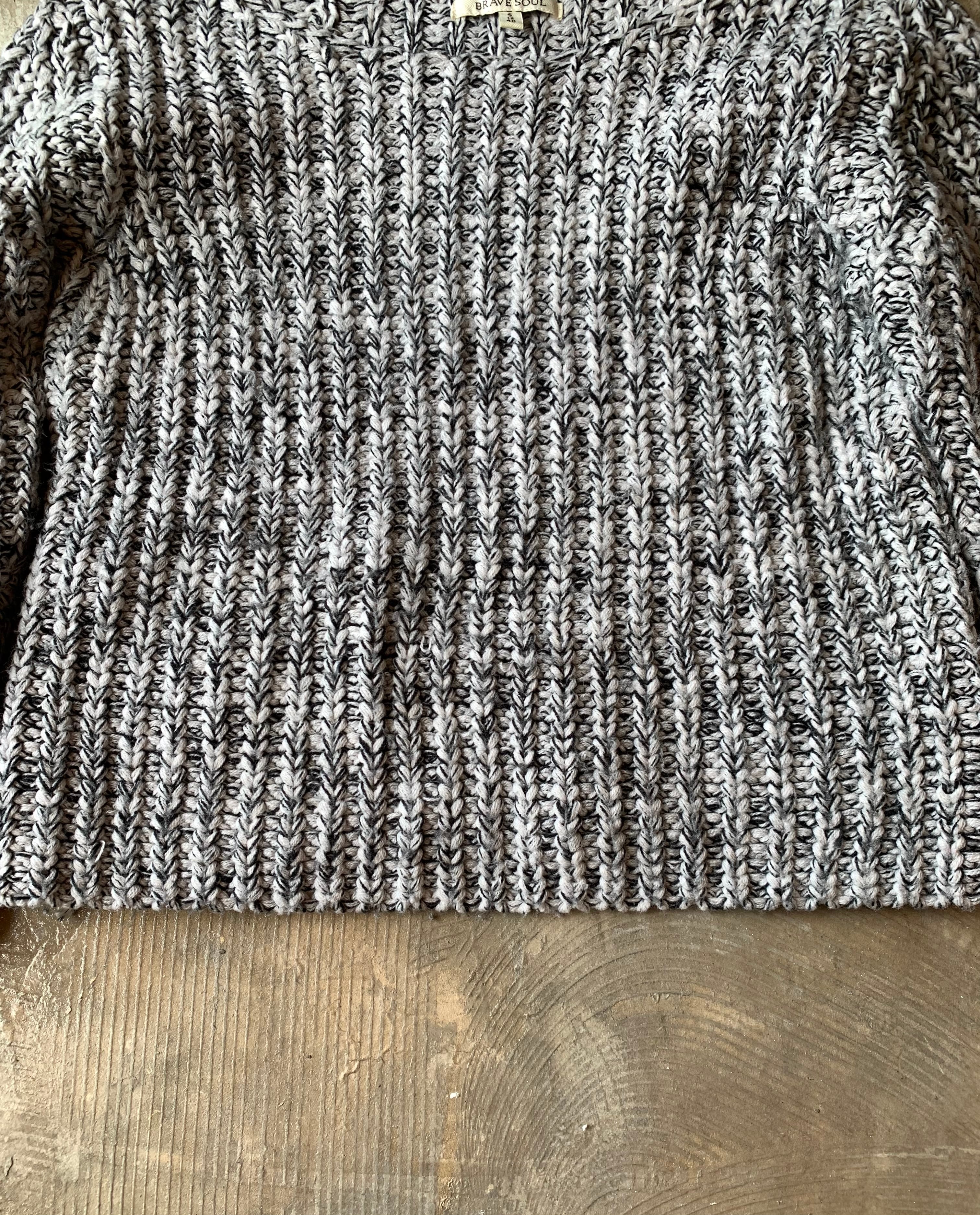 ホワイトXブラックの編みがオトナな女性の雰囲気。