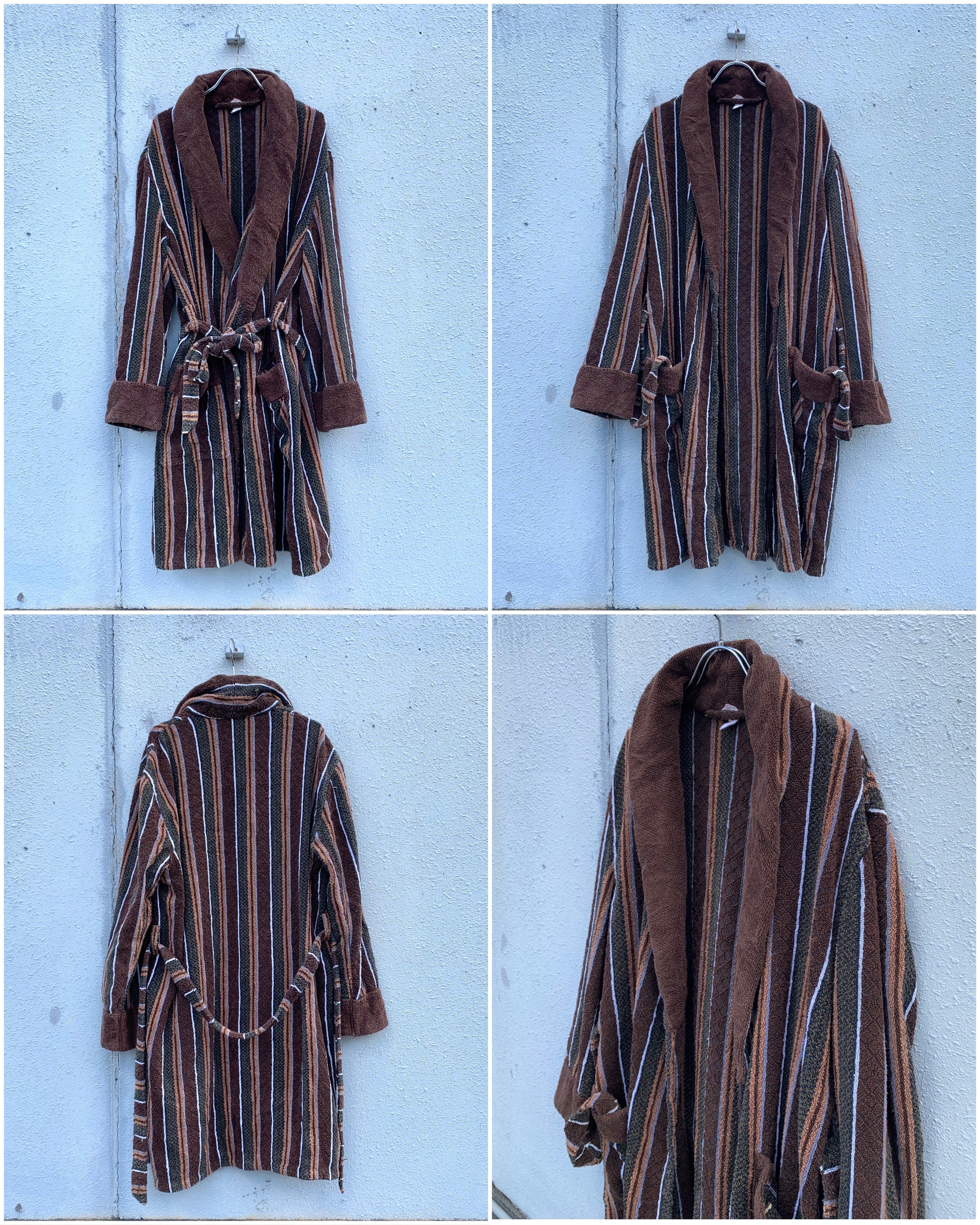 70年代頃のストライプ柄、パイル地のバスローブ、ナイトガウン。