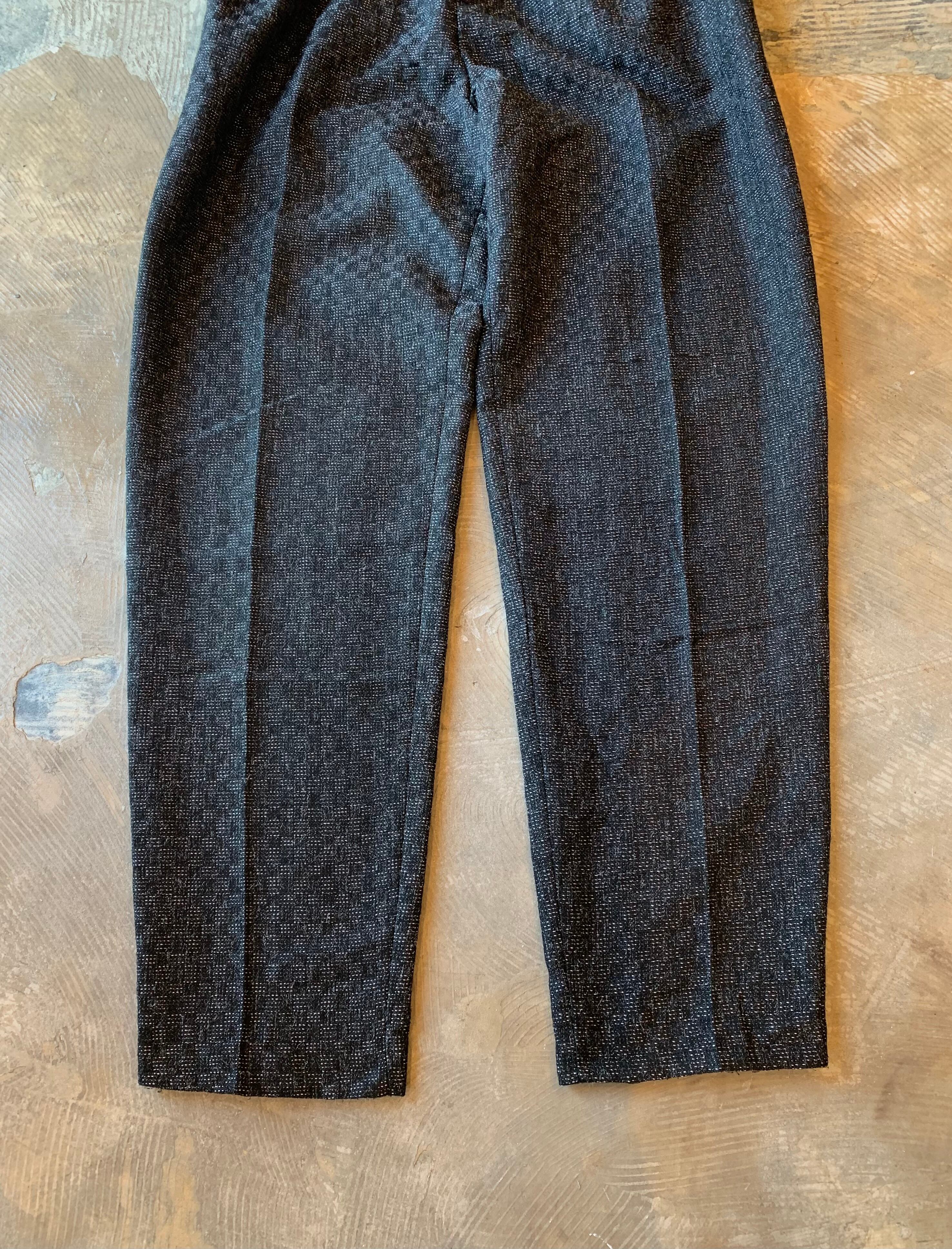 落ち着いたカラーリング、細かな柄入り、スリータック入り、テーパードが効いたシルエットでオトナな雰囲気です‼︎