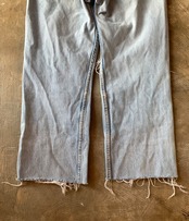 履き込まれたデニムのダメージや色落ちが素晴らしい1本。