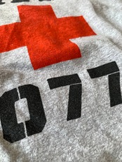 グレーの霜降りボディにブラックXレッドのプリントが滅茶苦茶クールです。