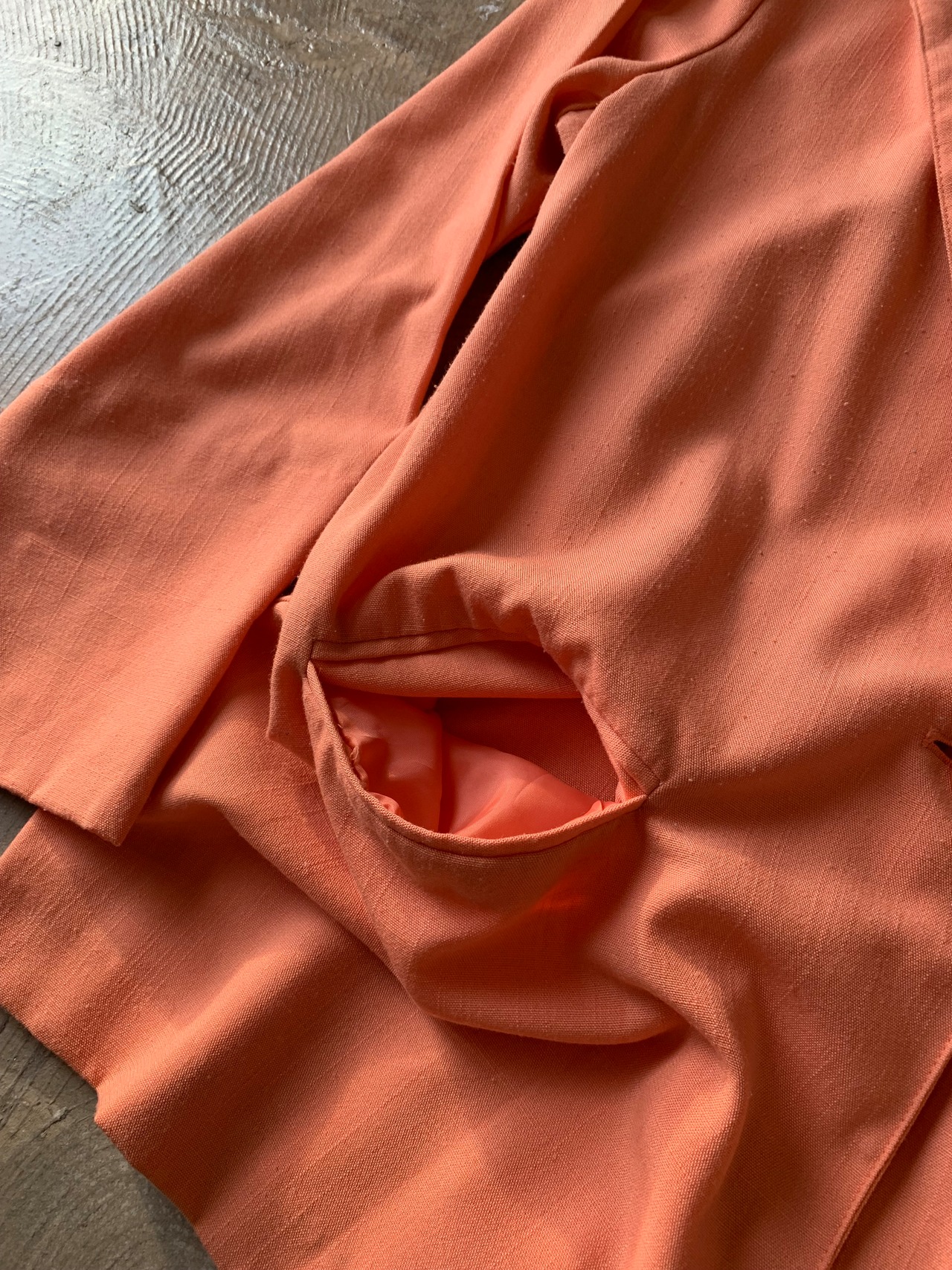 レーヨン混じりの特有のとろっとした生地感でサーモンピンク‼︎