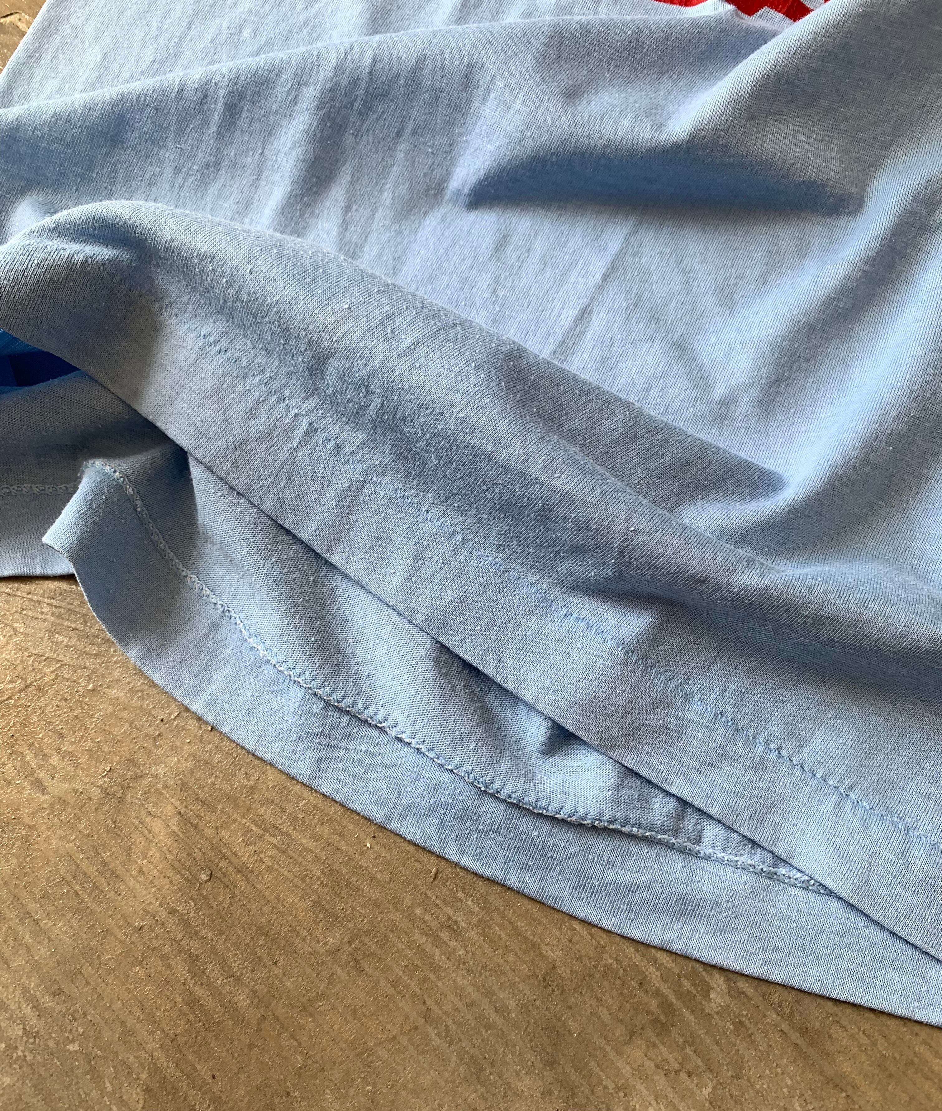 オールド感あるプリント、アメリカらしい何とも言えないサックスブルーのカラーリング。