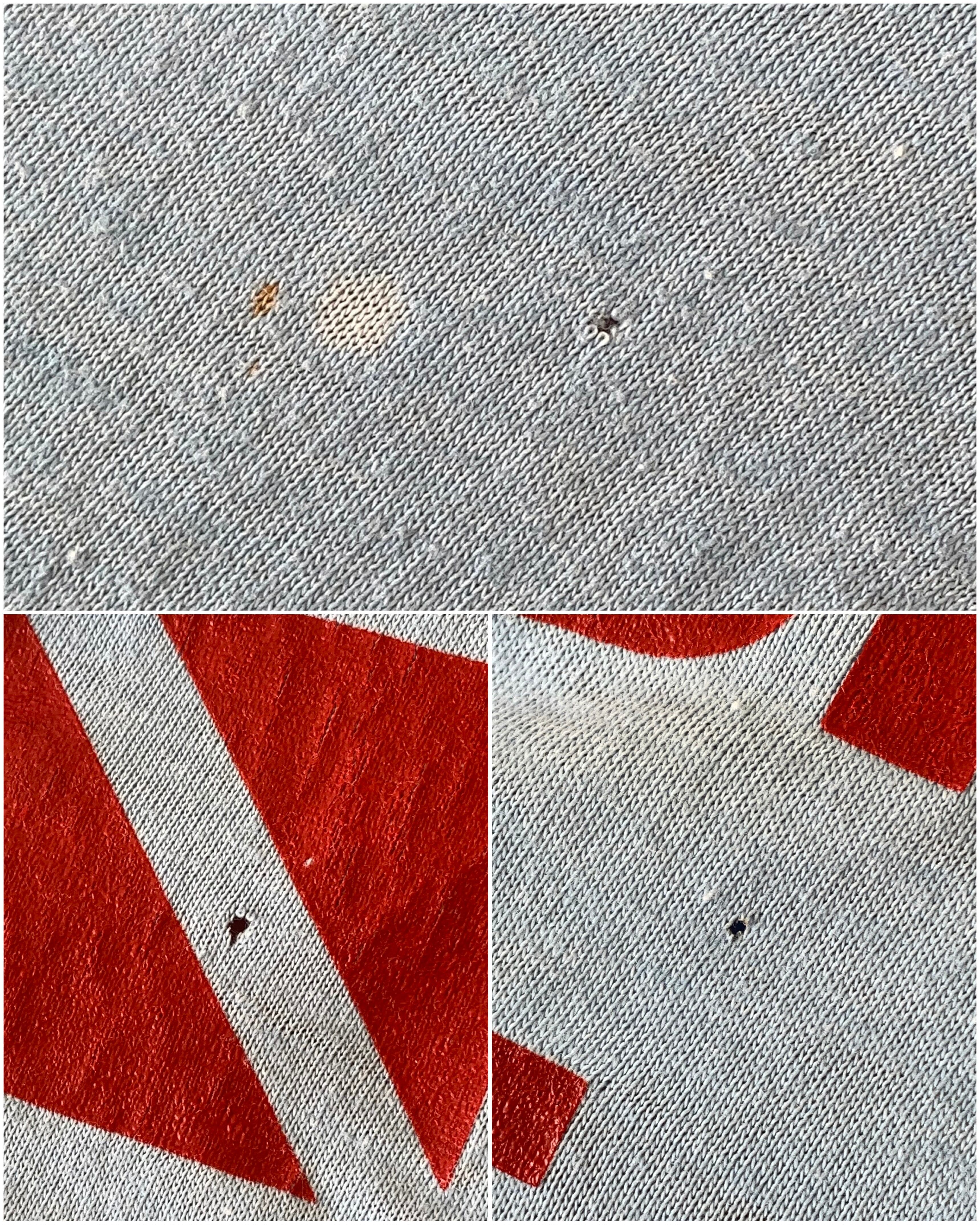 ボディも経年で薄くなっており霜降りみたいに生地がまばらになった箇所もあります。