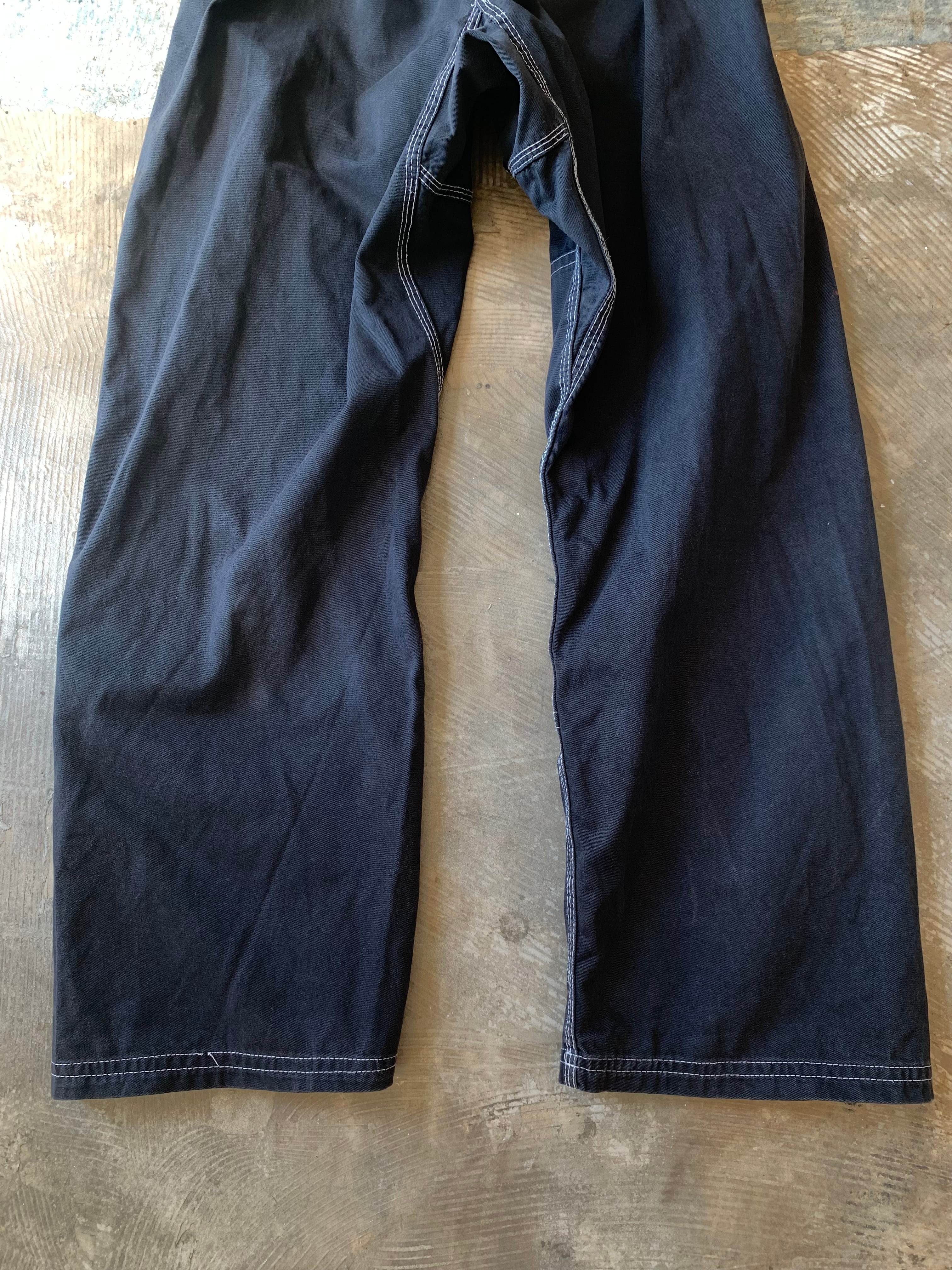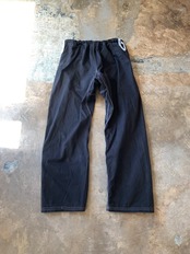 サイズ表記は読み取れませんが実寸サイズでウエスト約60~106cm(紐付きで適度に絞った最小サイズから適度に伸ばした最大サイズ)、レングス約70cm、股上約31cm、裾幅約23cm、サイド総丈約95cmです。